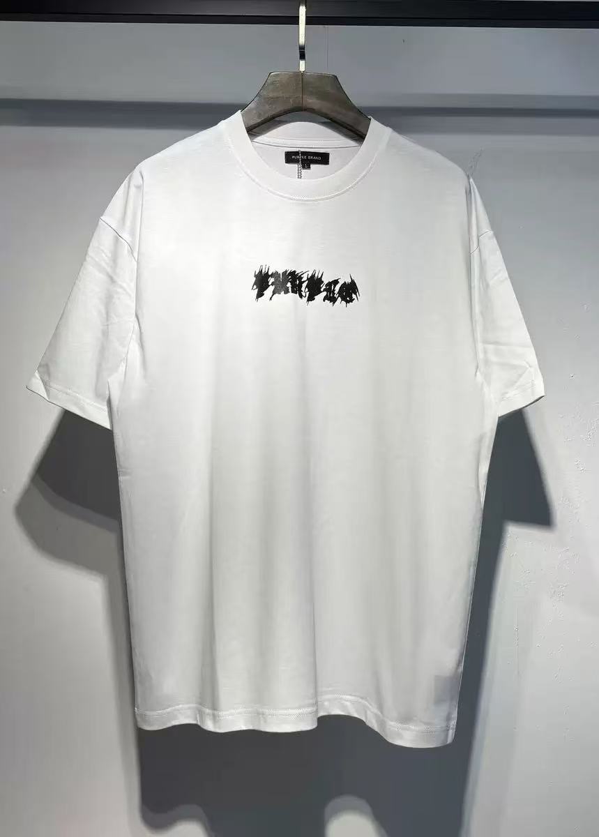 PURPLE BRAND Print pattern loose Round neck T-shirt White パープルブランド プリント パターン ゆったり クルーネック Tシャツ ホワイト