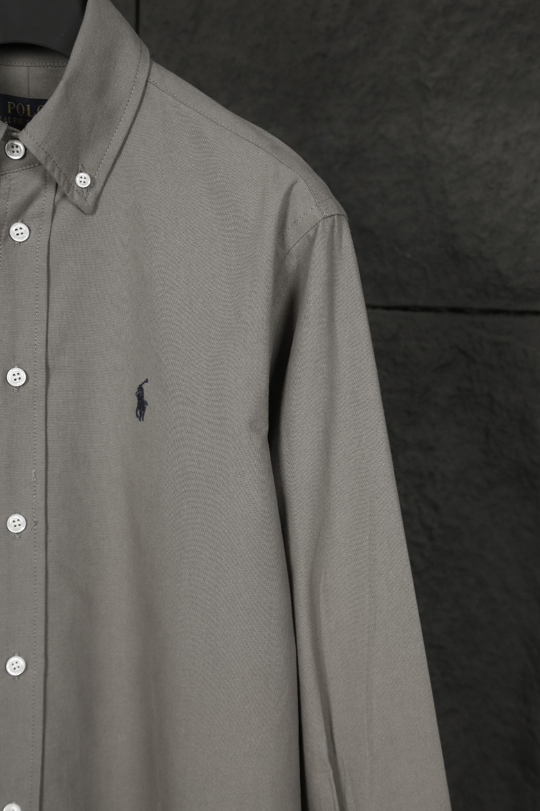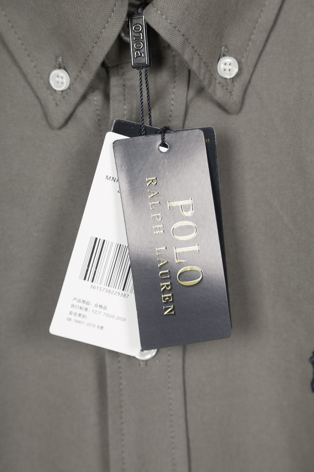 Ralph Lauren Embroidery Black LOGO Single-Breasted Long-sleeve Shirt Gray ラルフ ローレン 刺繍 ブラック LOGO シングルブレスト 長袖シャツ グレー
