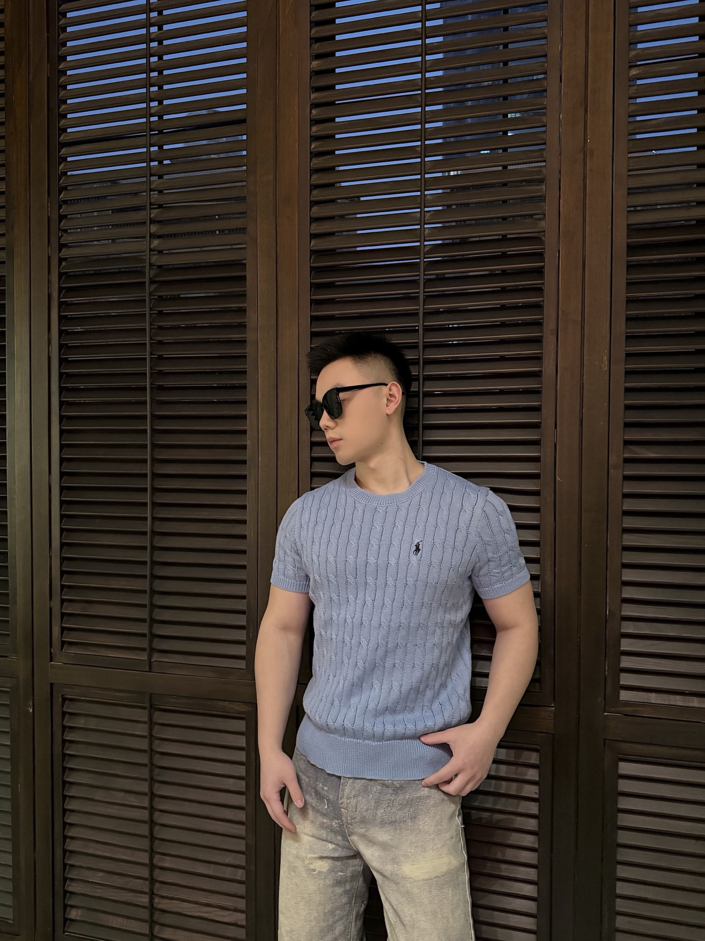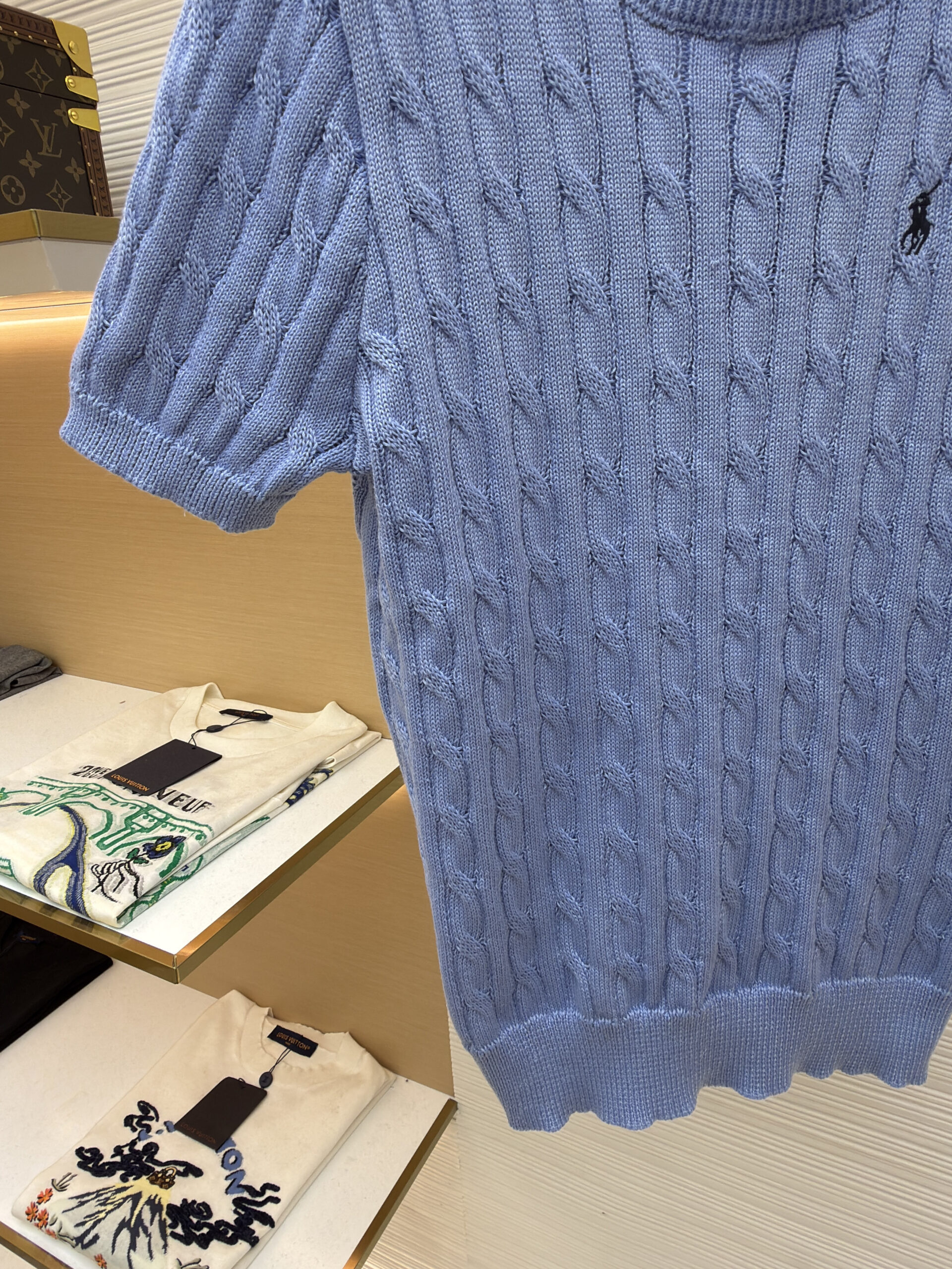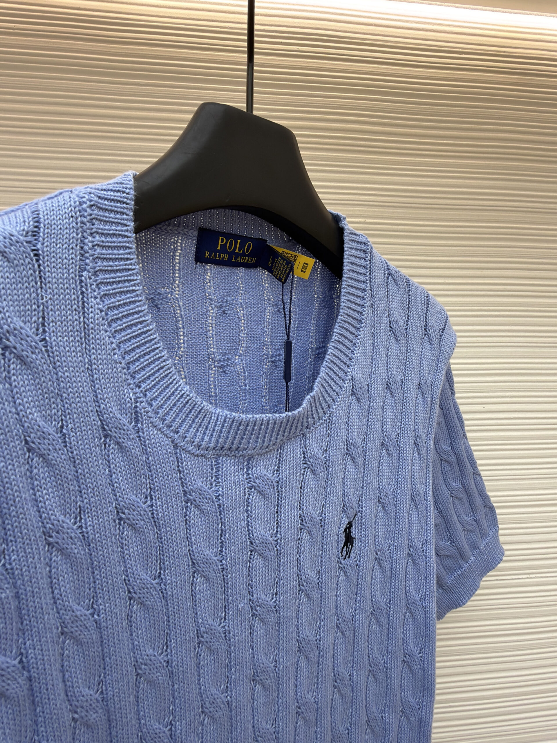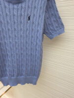 RALPH LAUREN Embroidery logo Round neck knit T-shirt Blue ラルフ ローレン 刺繍 logo クルーネック ニット Tシャツ ブルー