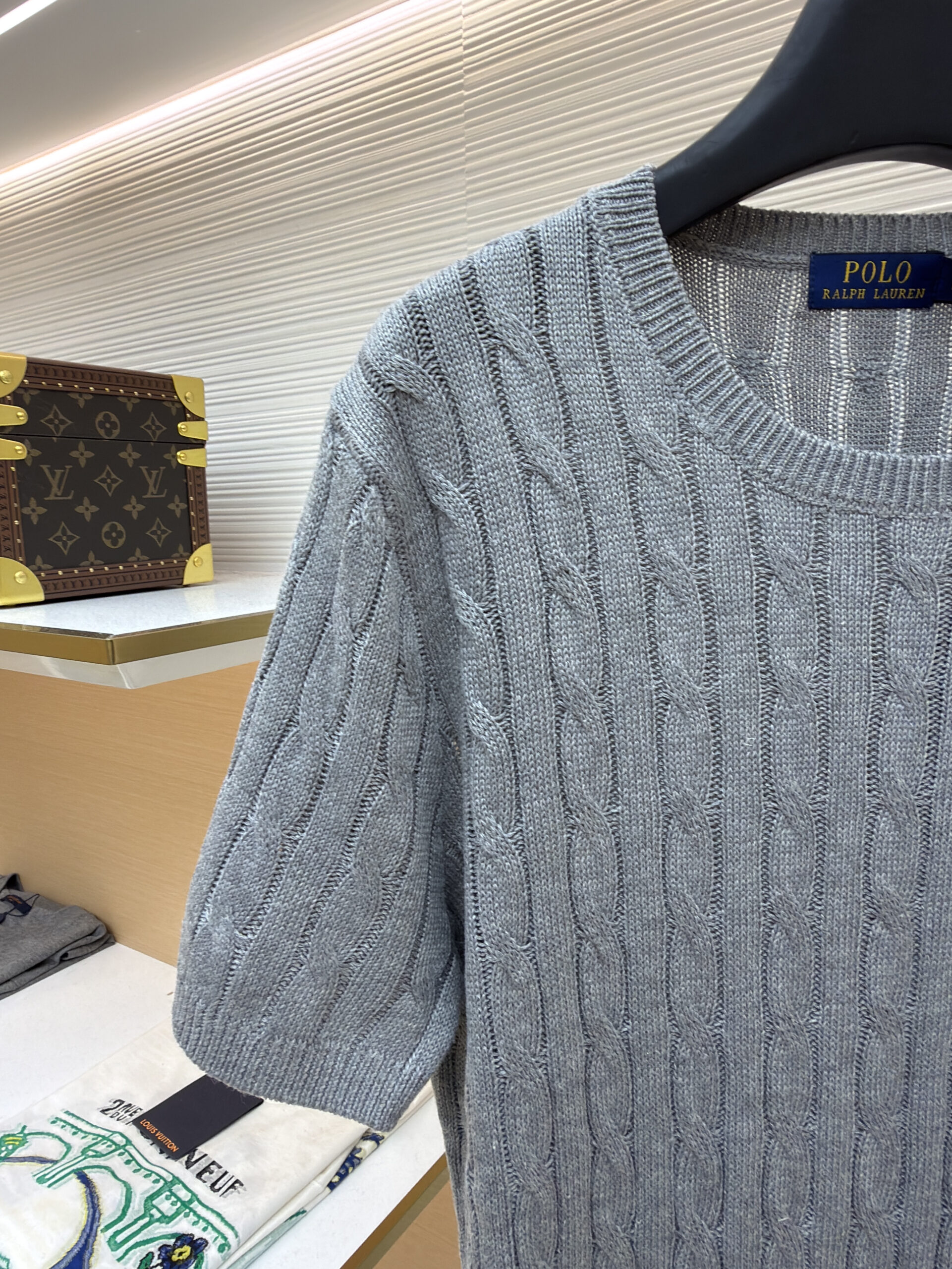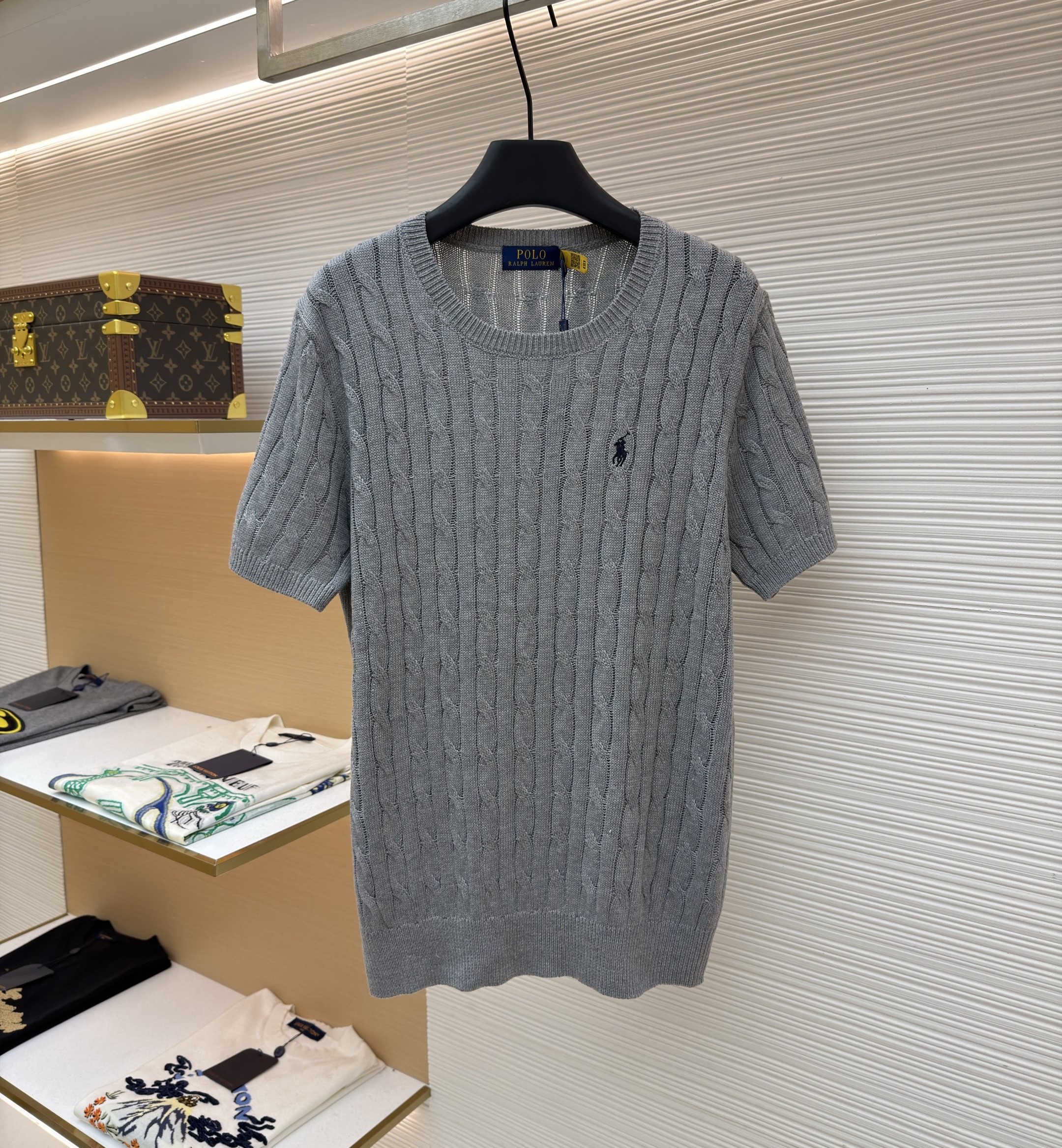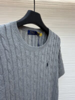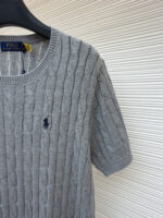 RALPH LAUREN Embroidery logo Round neck knit T-shirt Gray ラルフ ローレン 刺繍 logo クルーネック ニット Tシャツ グレー