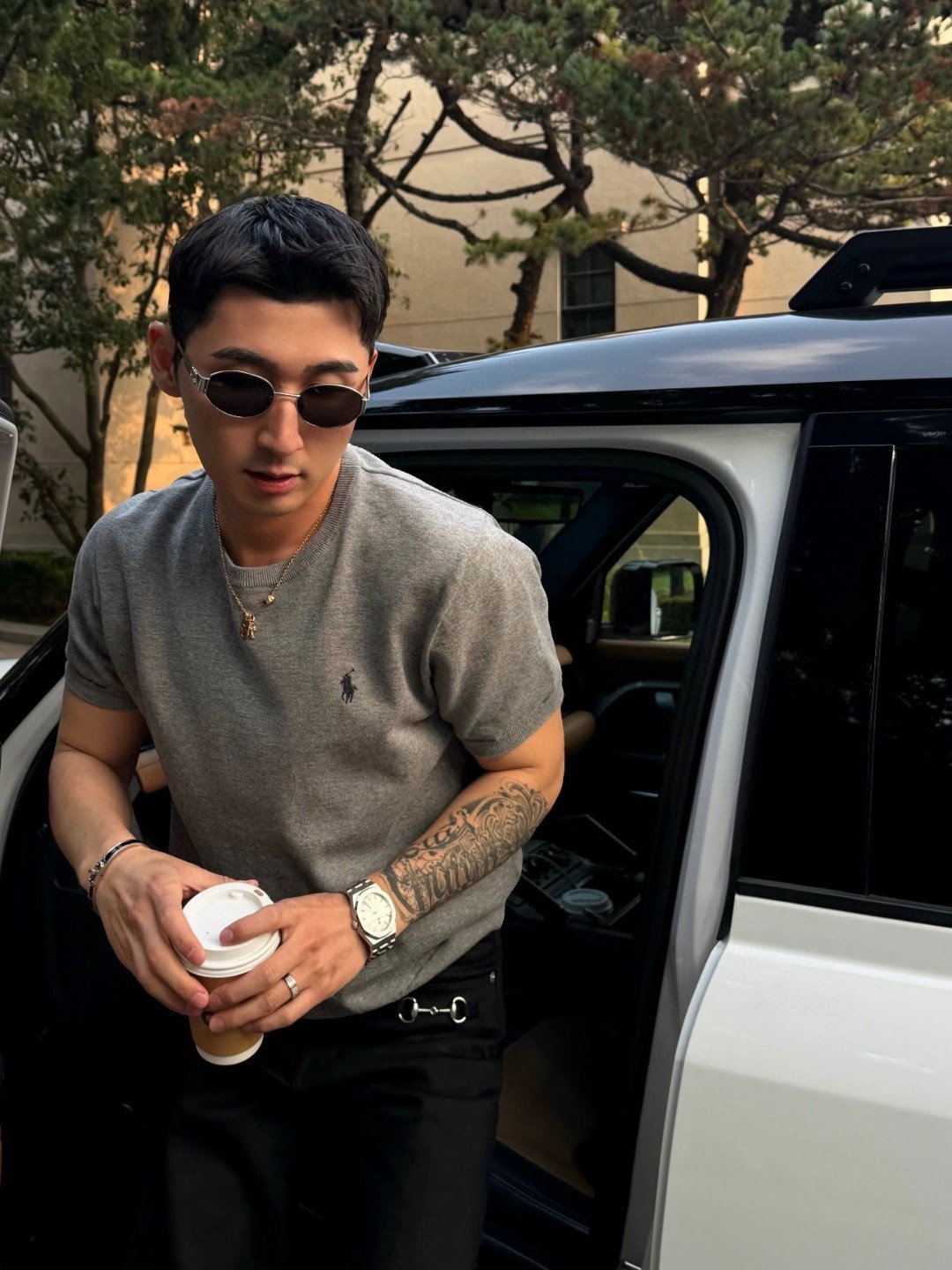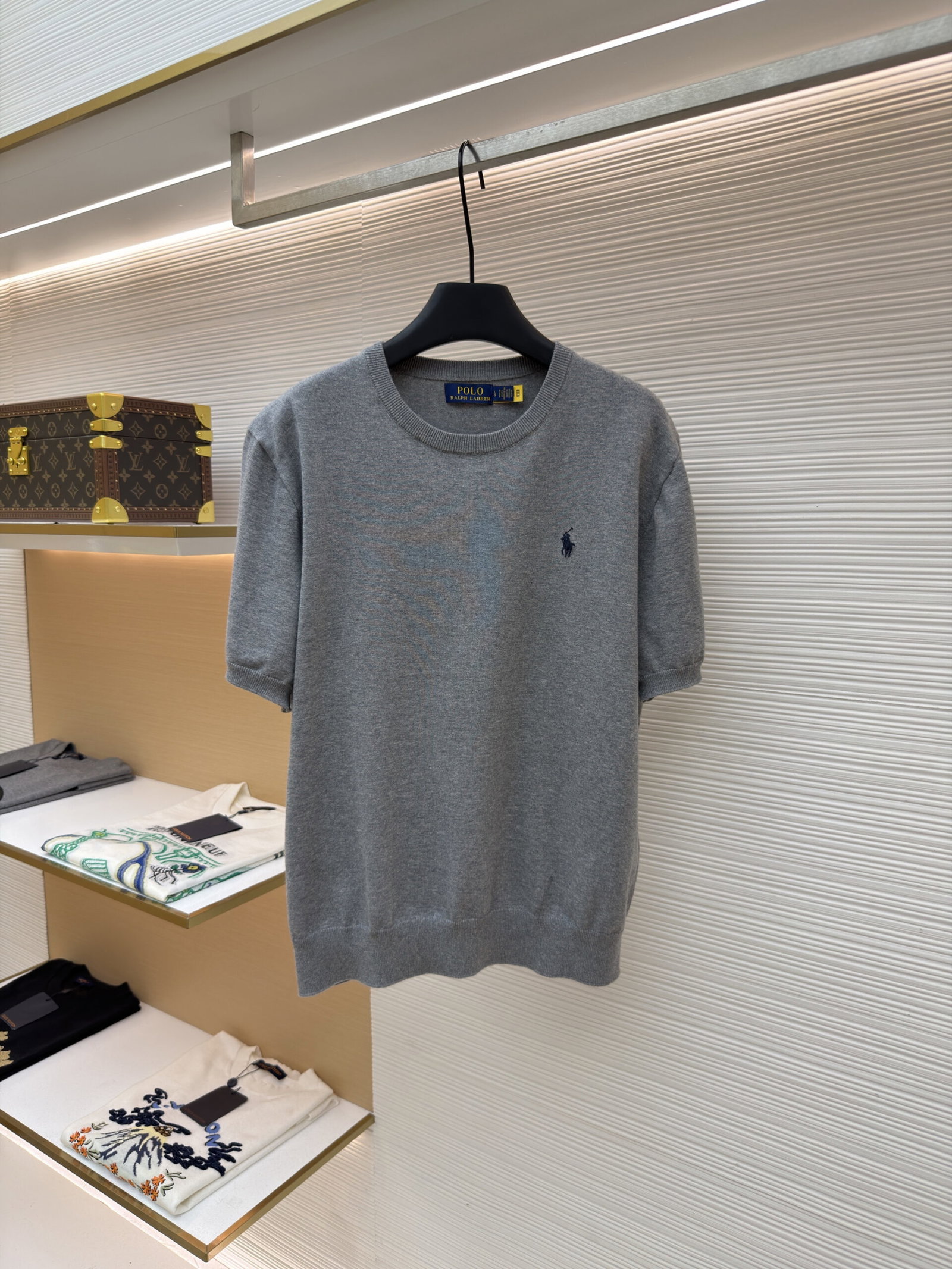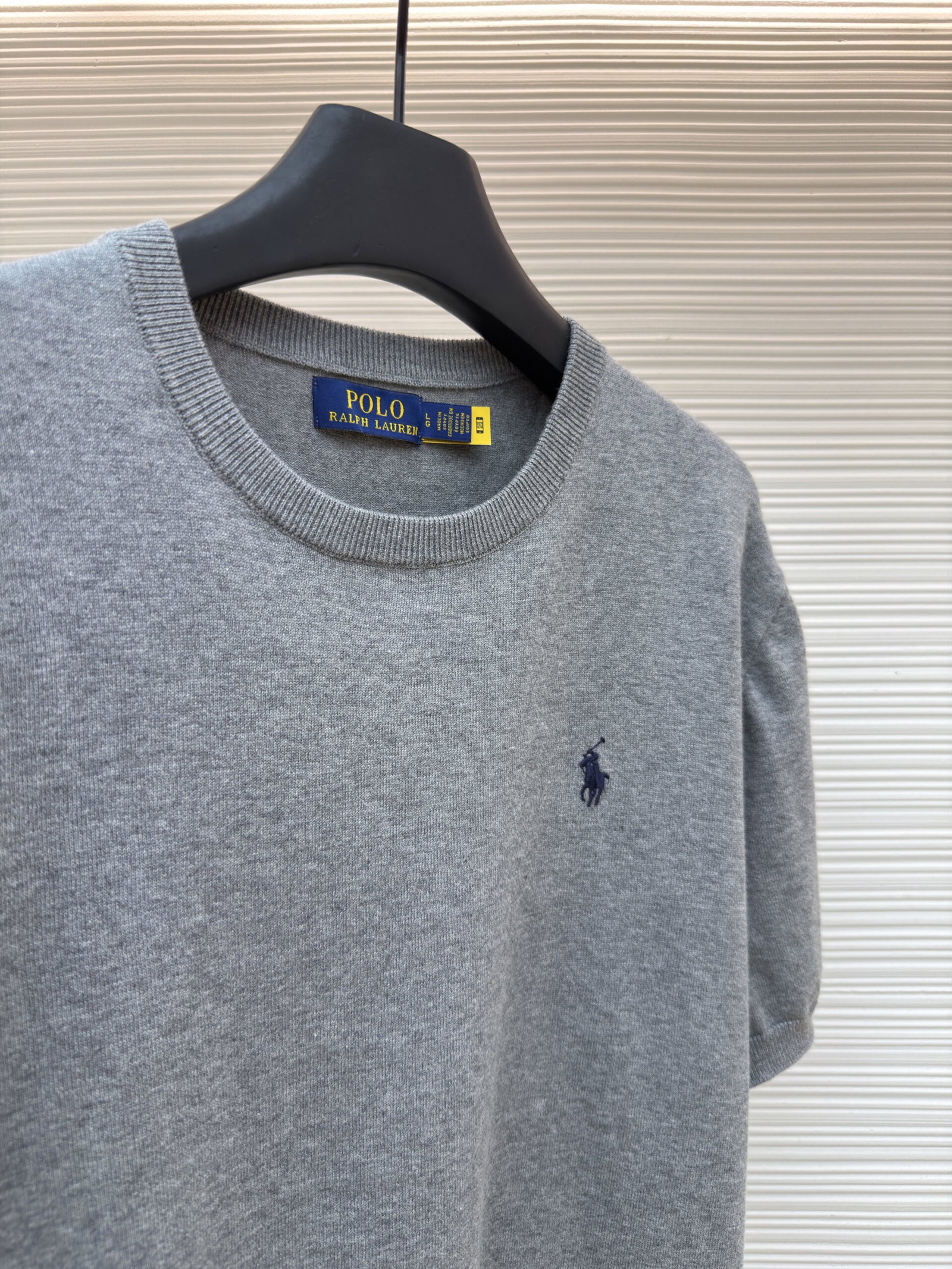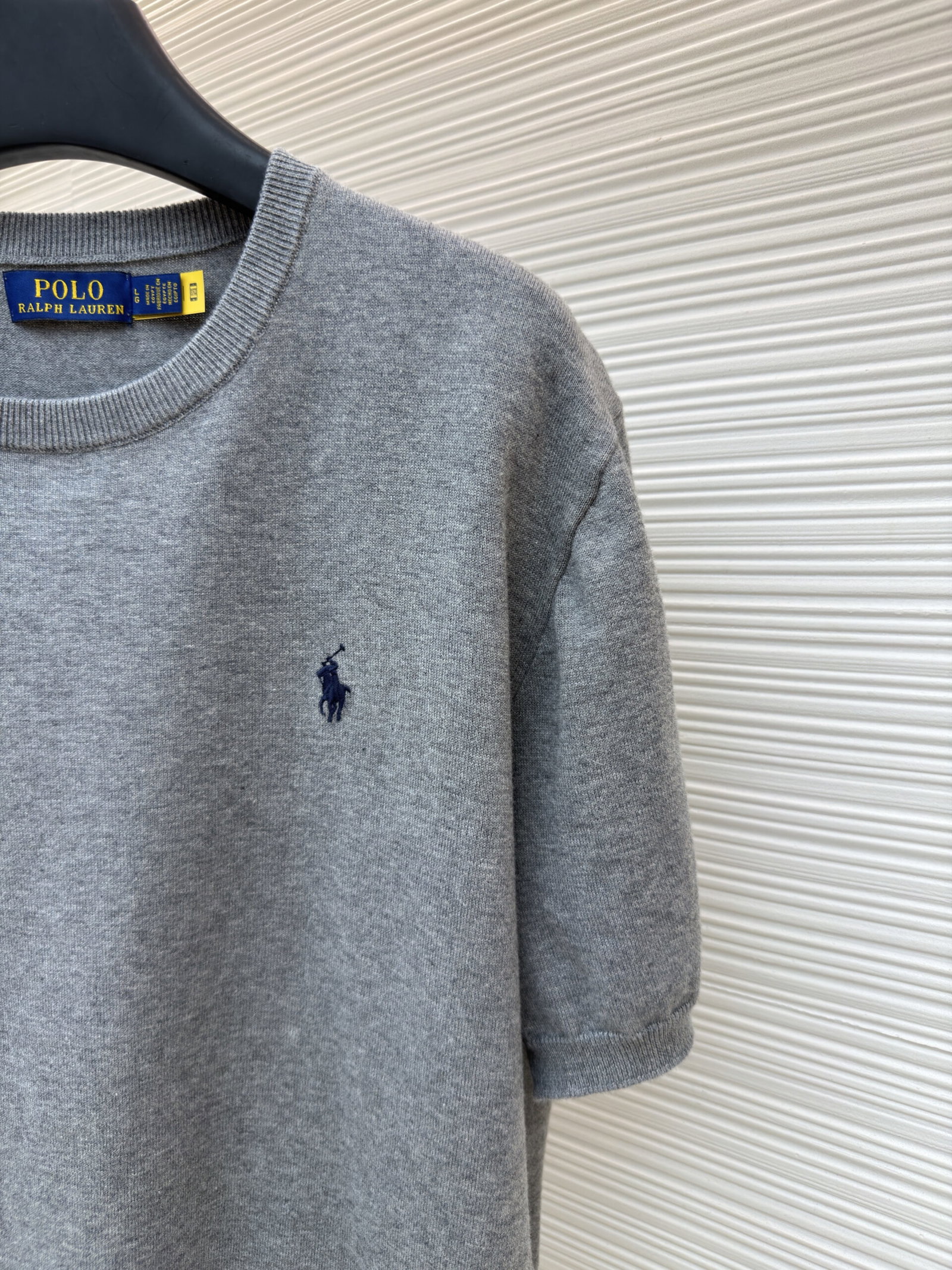 RALPH LAUREN Embroidery logo Round neck knit T-shirt Gray ラルフ ローレン 刺繍 logo クルーネック ニット Tシャツ グレー