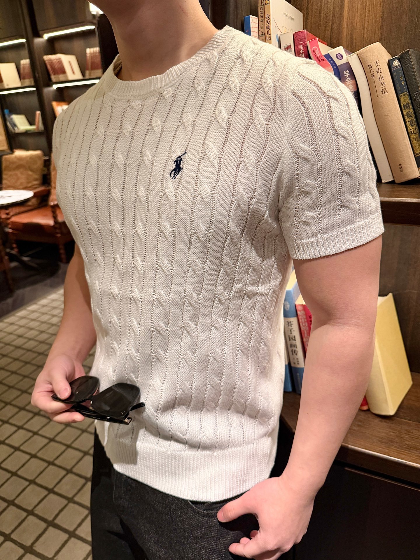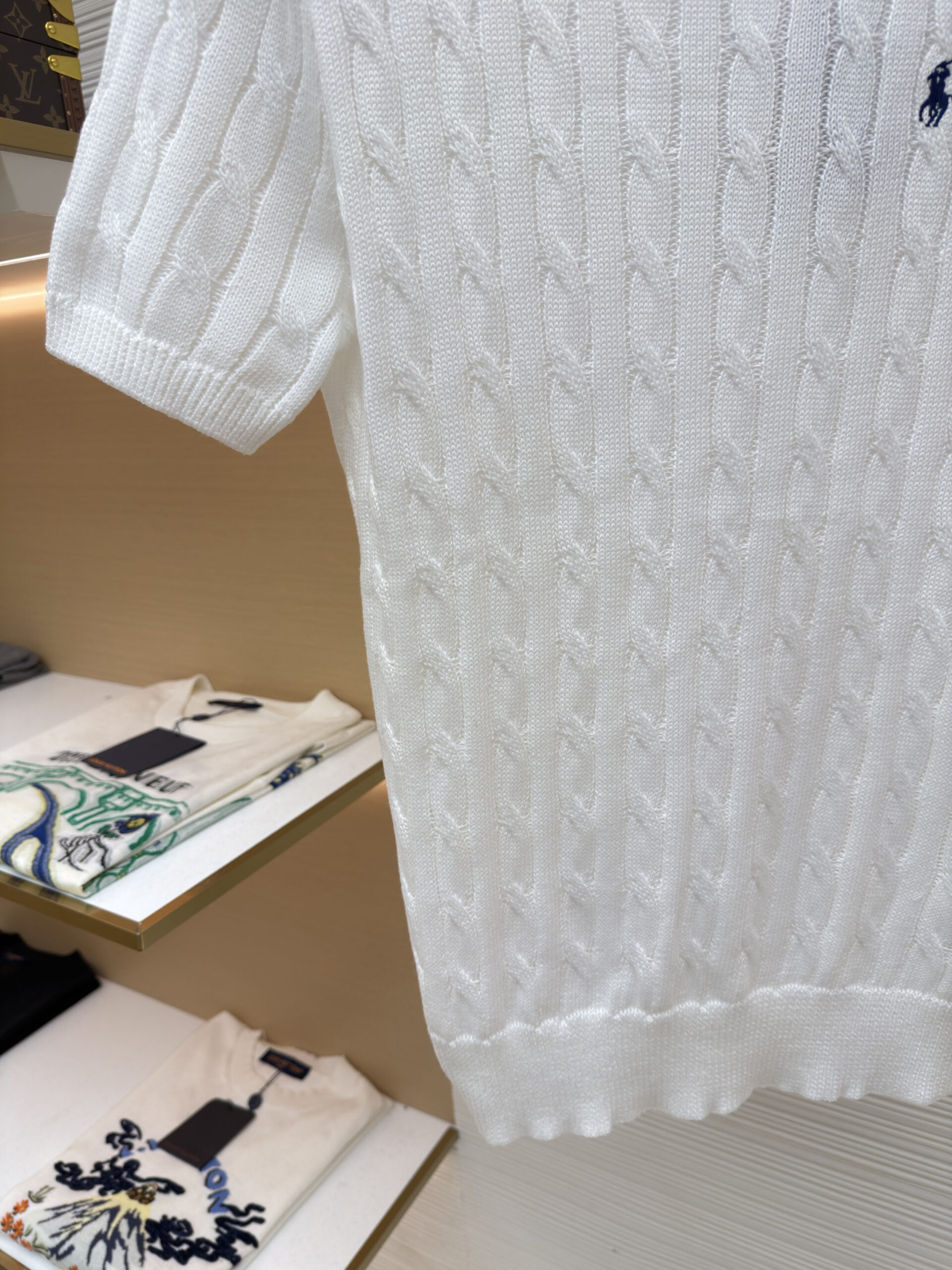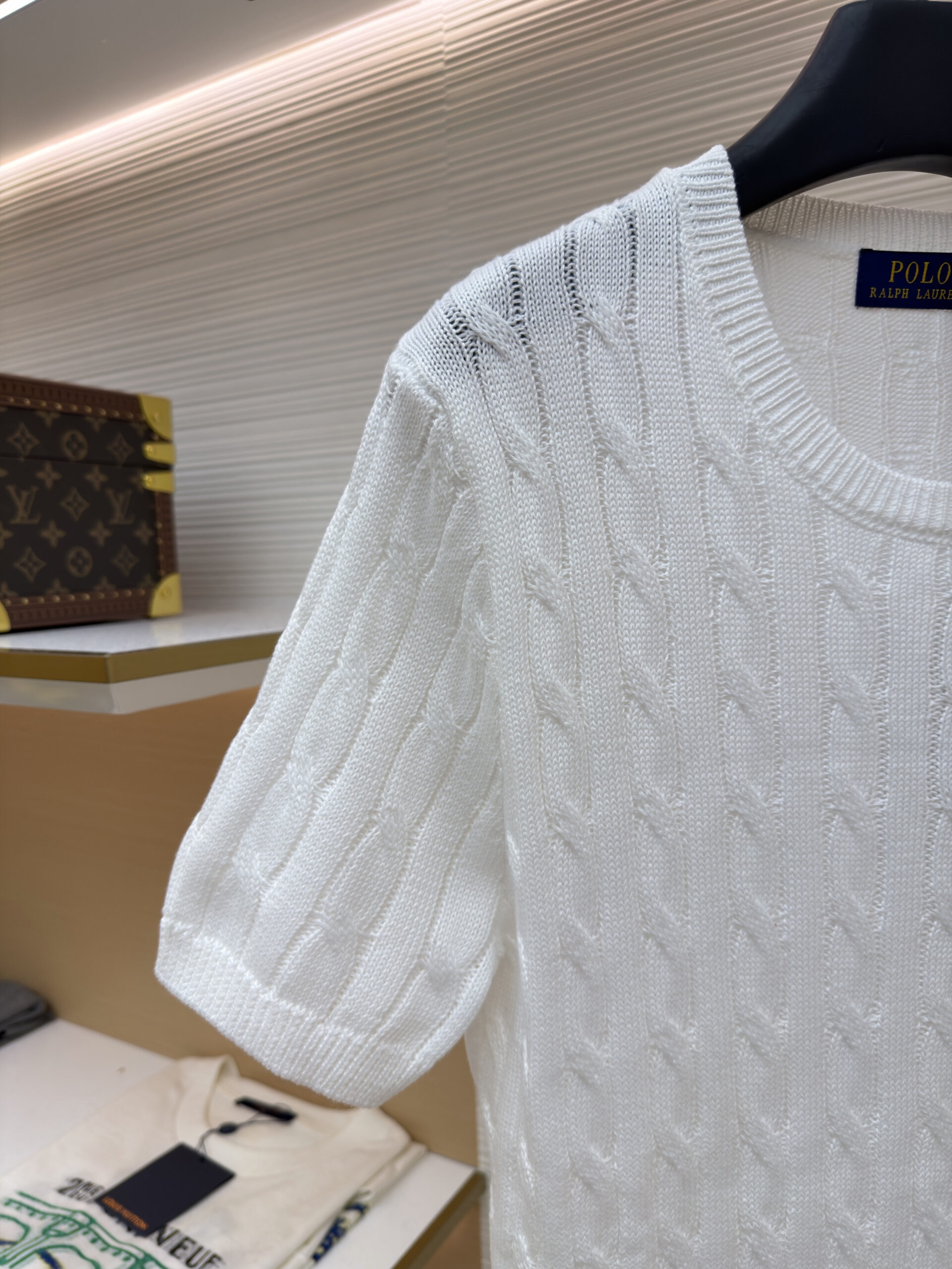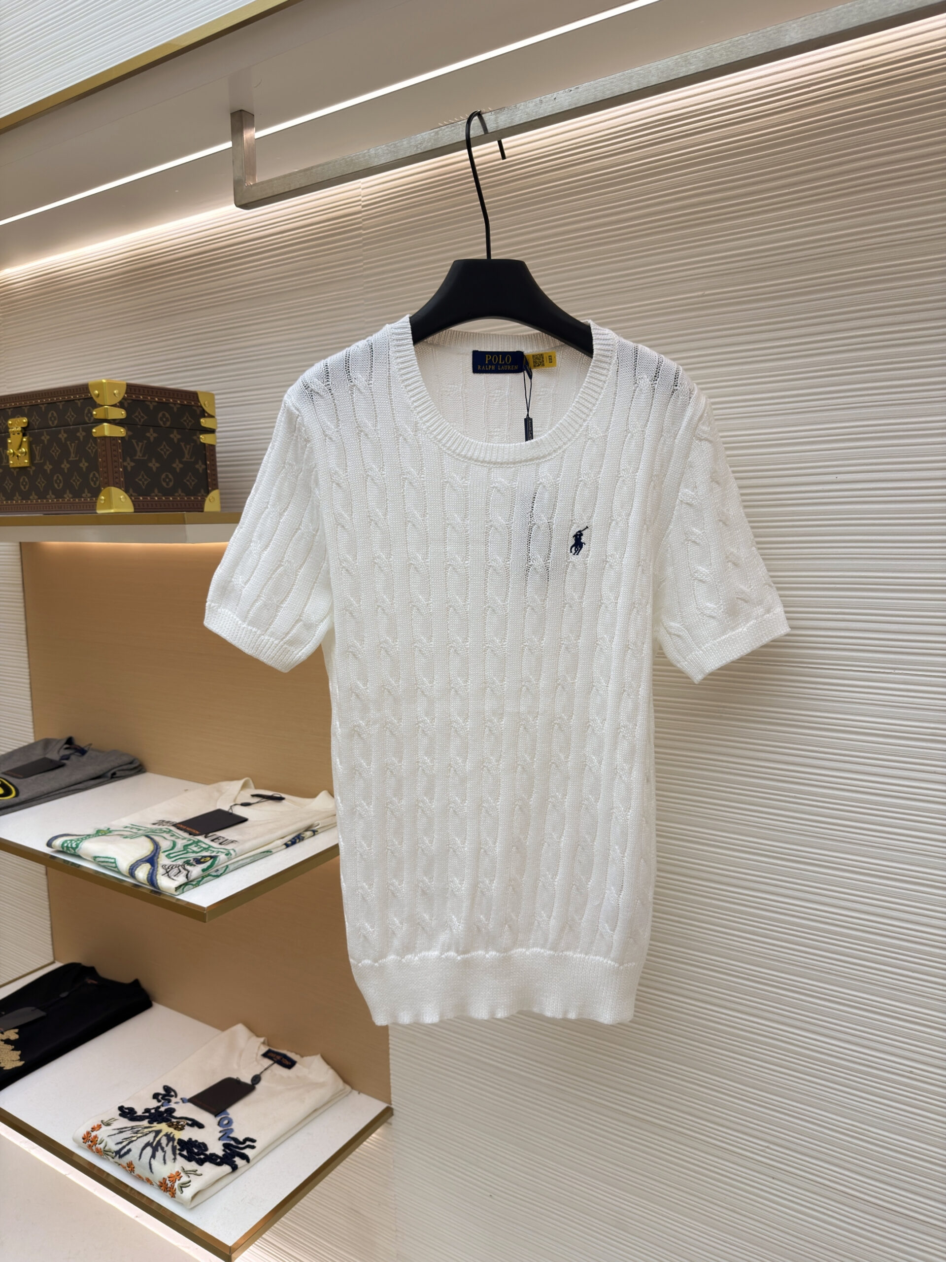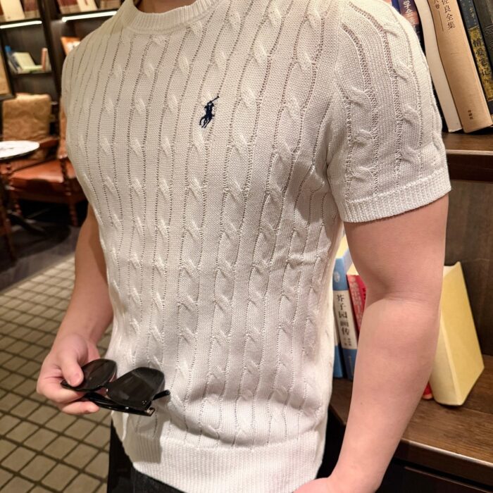 RALPH LAUREN Embroidery logo Round neck knit T-shirt White ラルフ ローレン 刺繍 logo クルーネック ニット Tシャツ ホワイト
