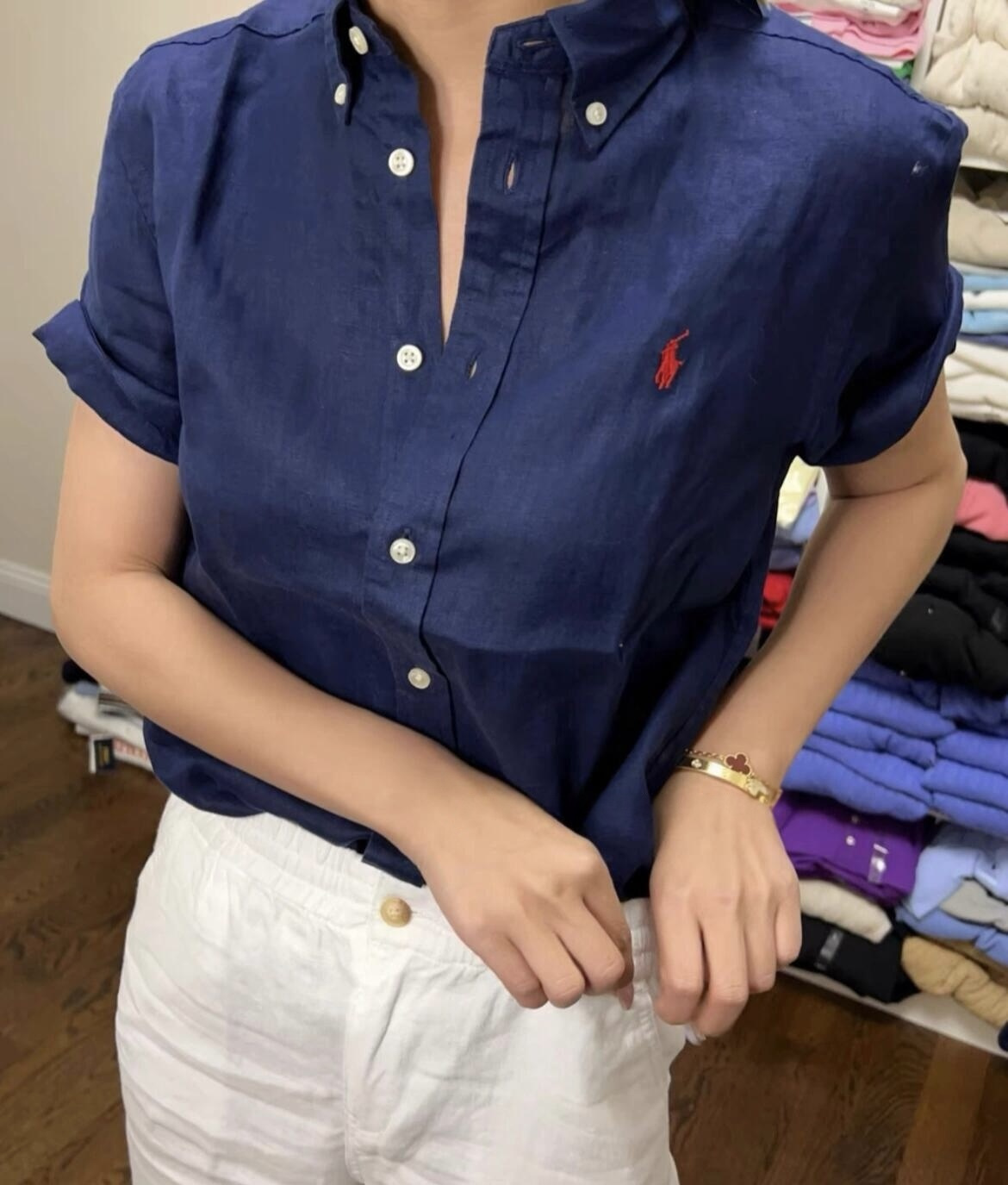 Ralph Lauren Embroidery LOGO short-sleeved shirt Navy ラルフ ローレン 刺繍 LOGO 半袖カジュアルシャツ ネイビー