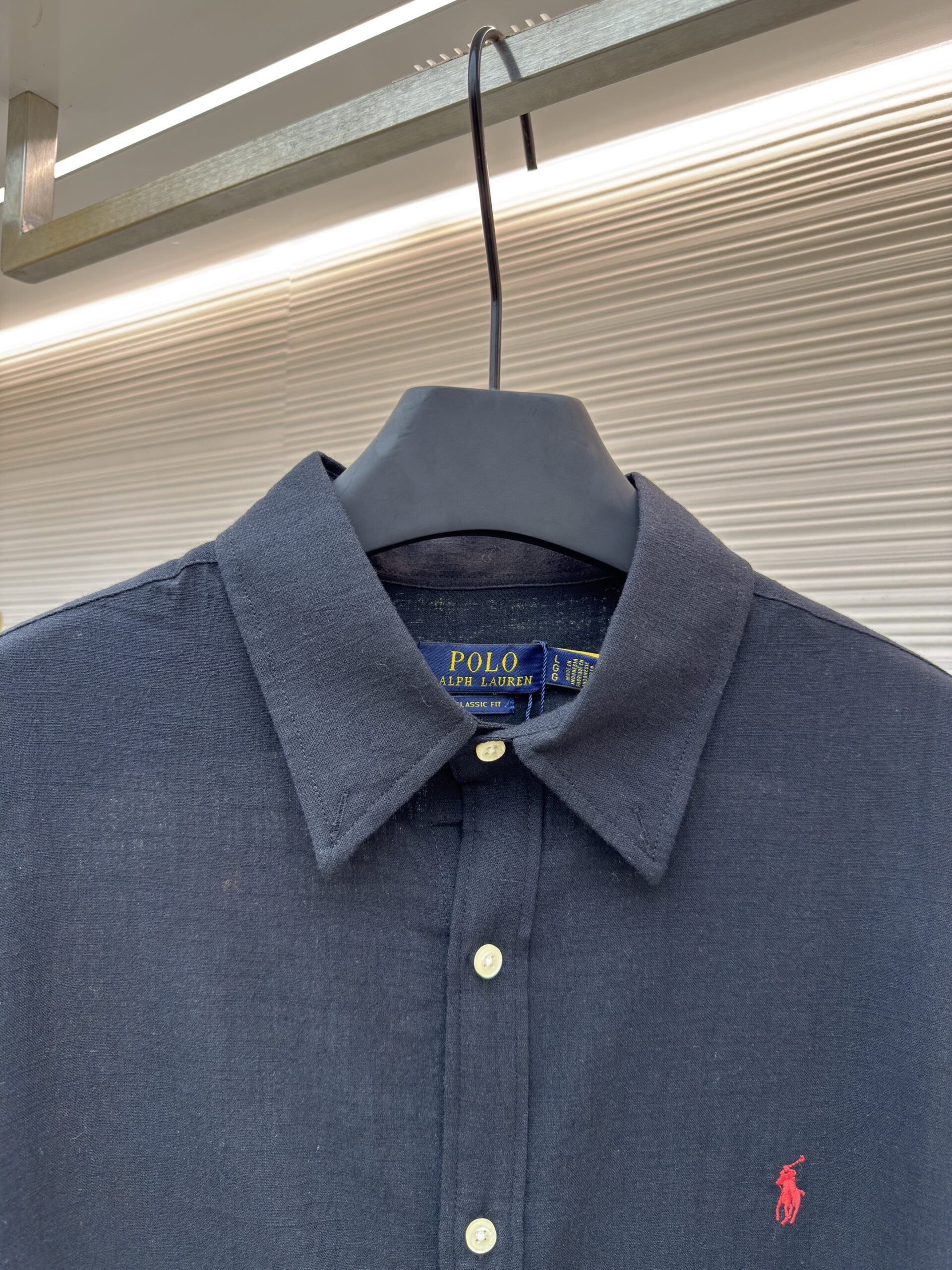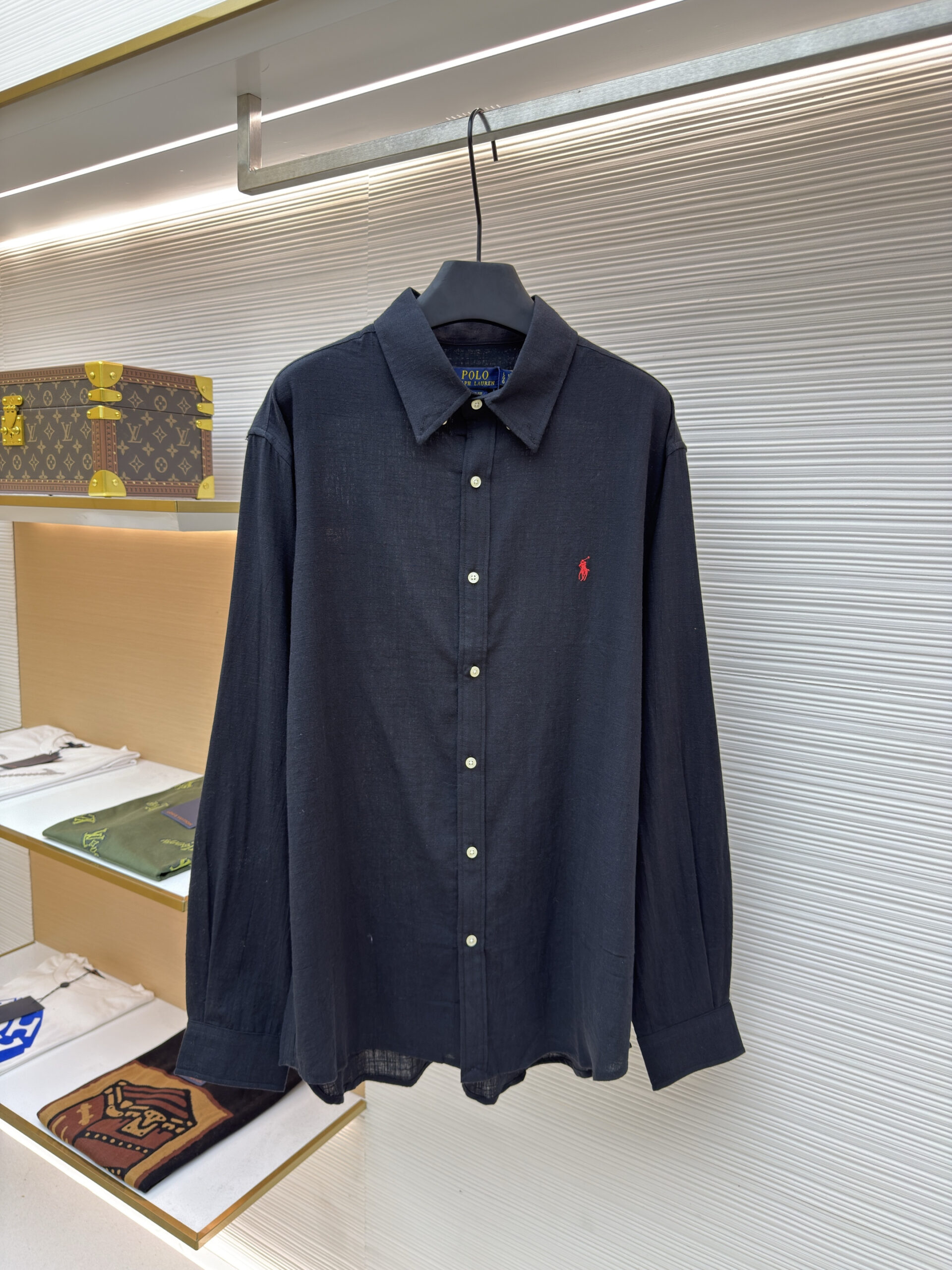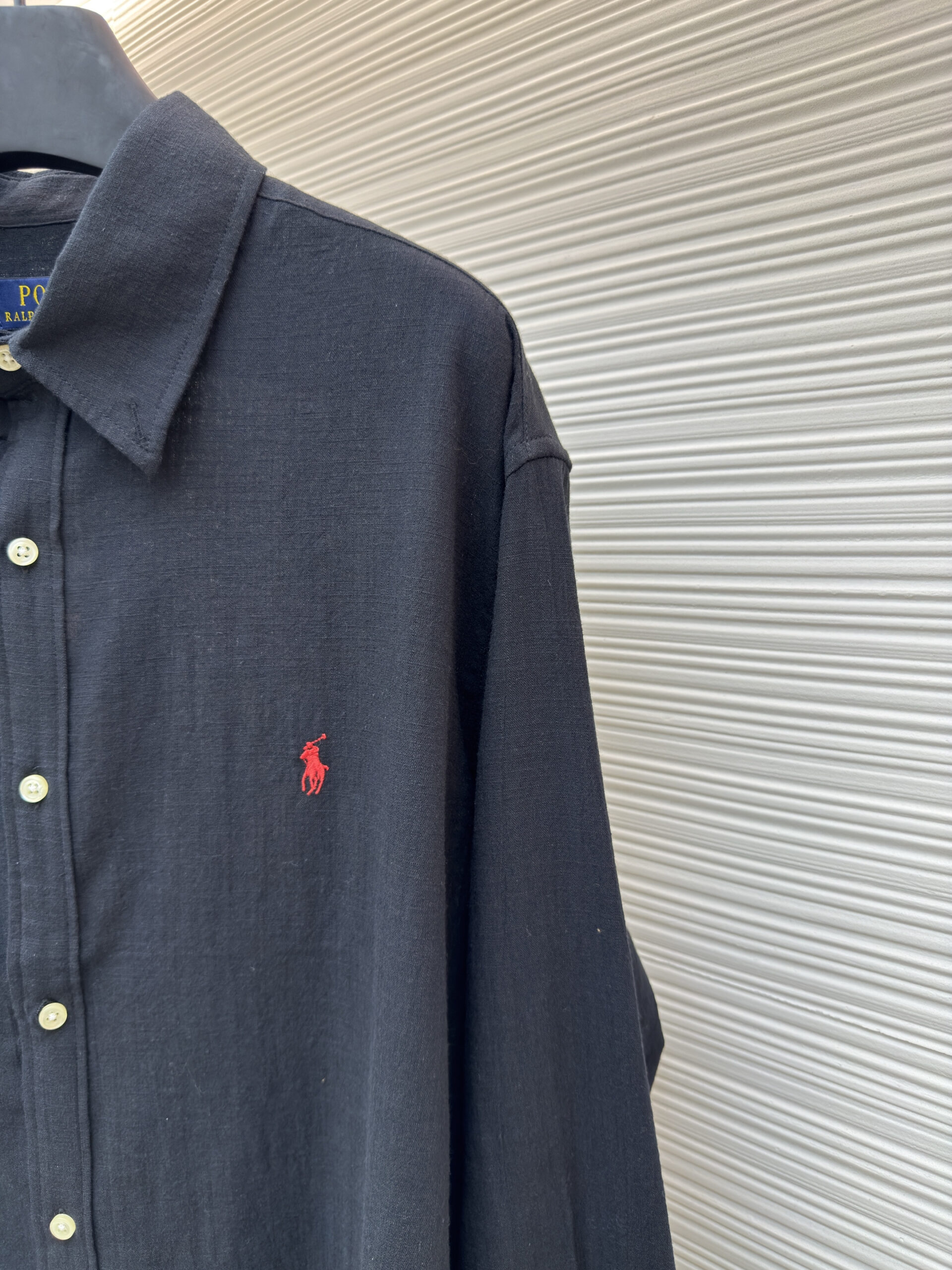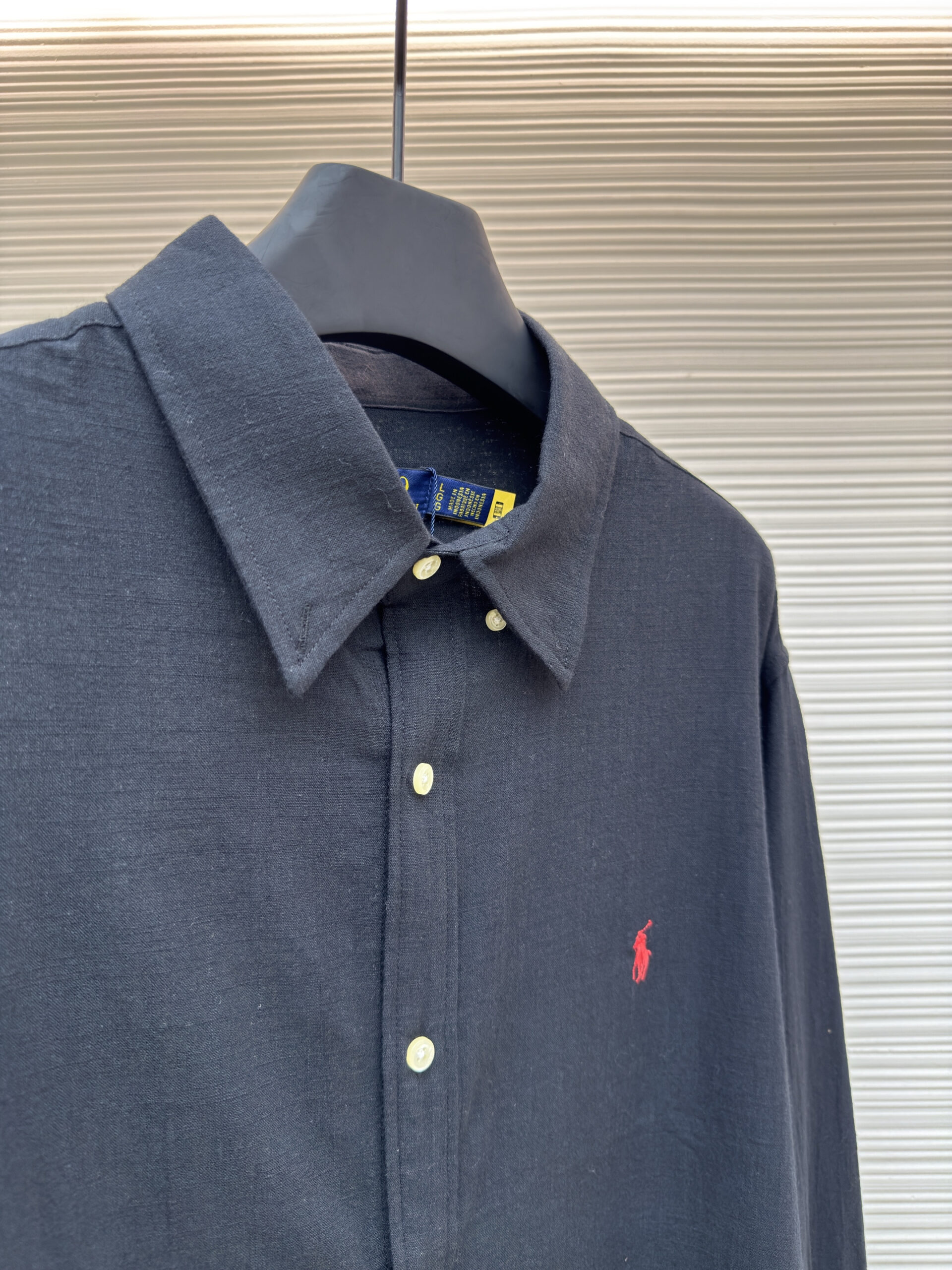 Ralph Lauren Embroidery Black LOGO Single-Breasted Long-sleeve Shirt ラルフ ローレン 刺繍 ブラック LOGO シングルブレスト 長袖シャツ