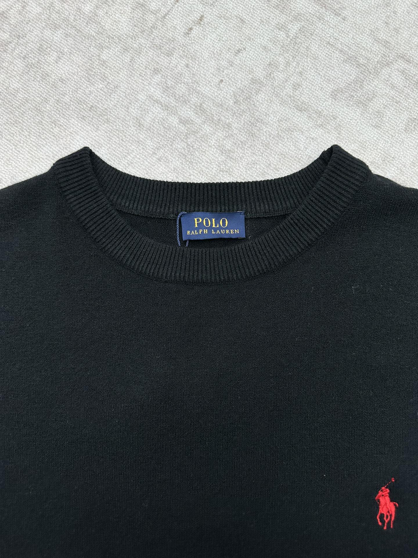 RALPH LAUREN LOGO Round neck knit Sweater Black ラルフ ローレン LOGO クルーネック ニットセーター ブラック