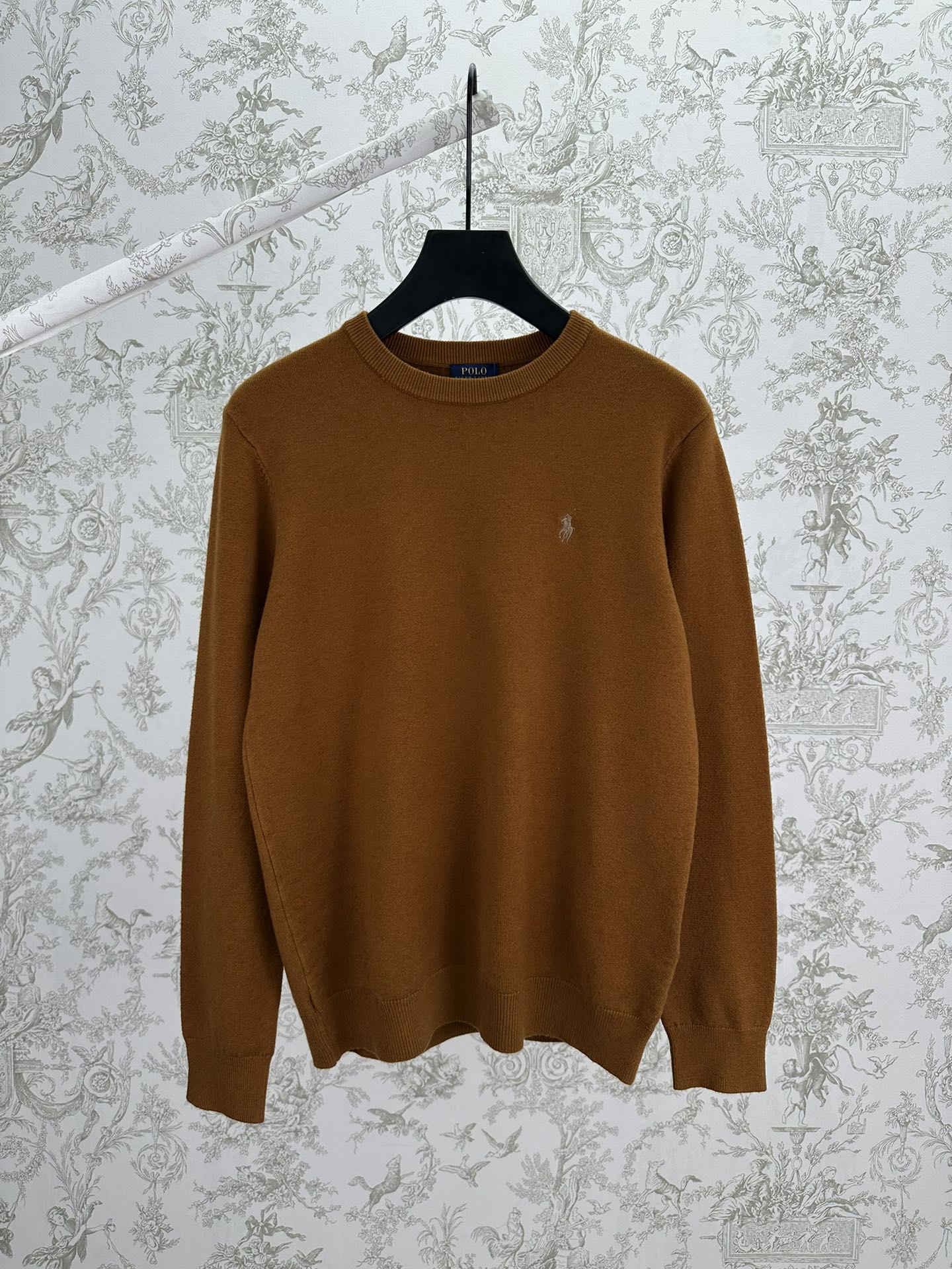RALPH LAUREN LOGO Round neck knit Sweater Brown ラルフ ローレン LOGO クルーネック ニットセーター ブラウン