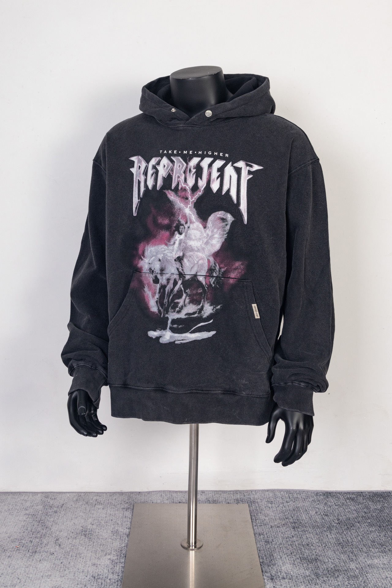 Represent Print pattern Hoodie Black プリント パターン パーカー ブラック