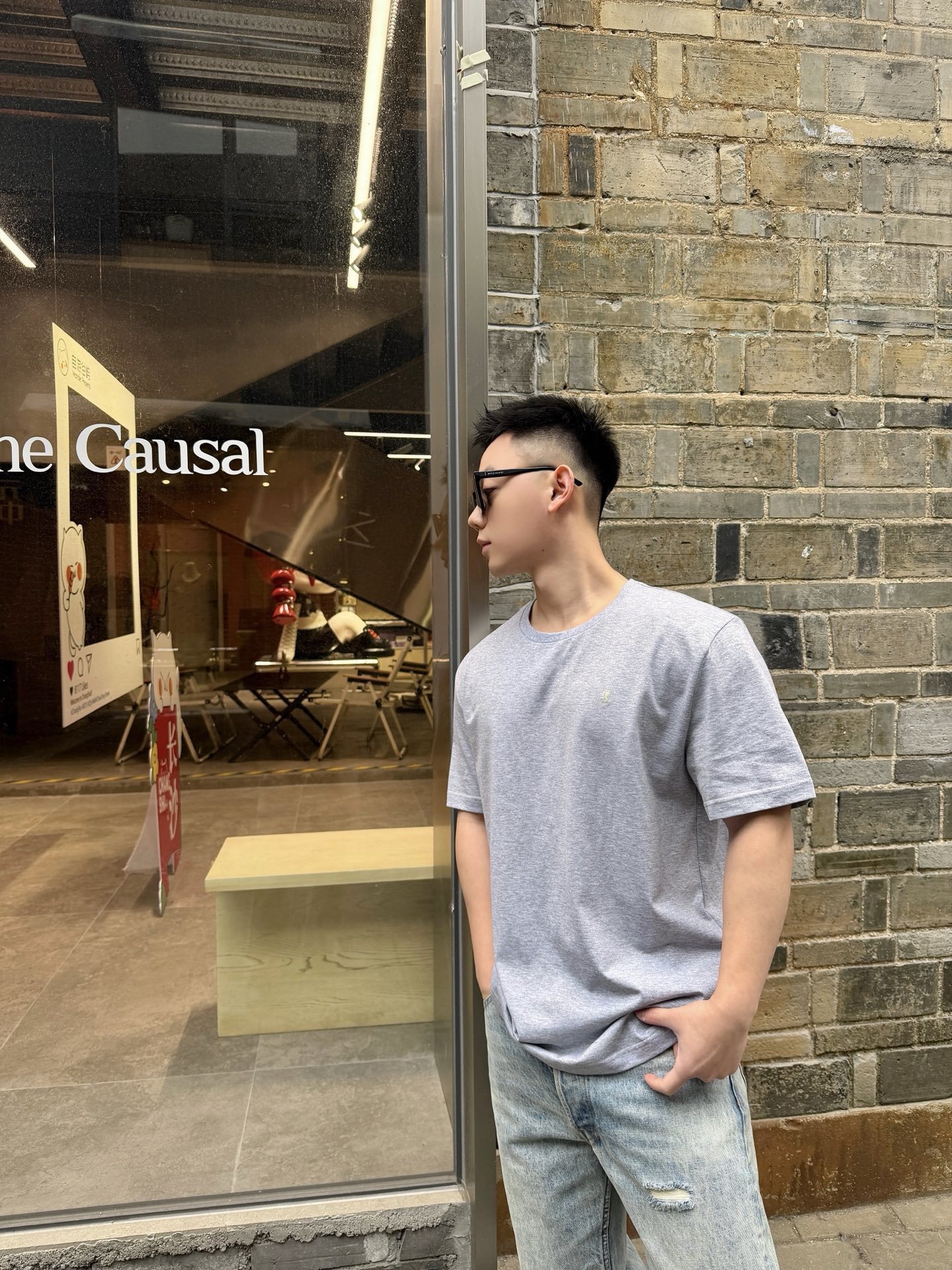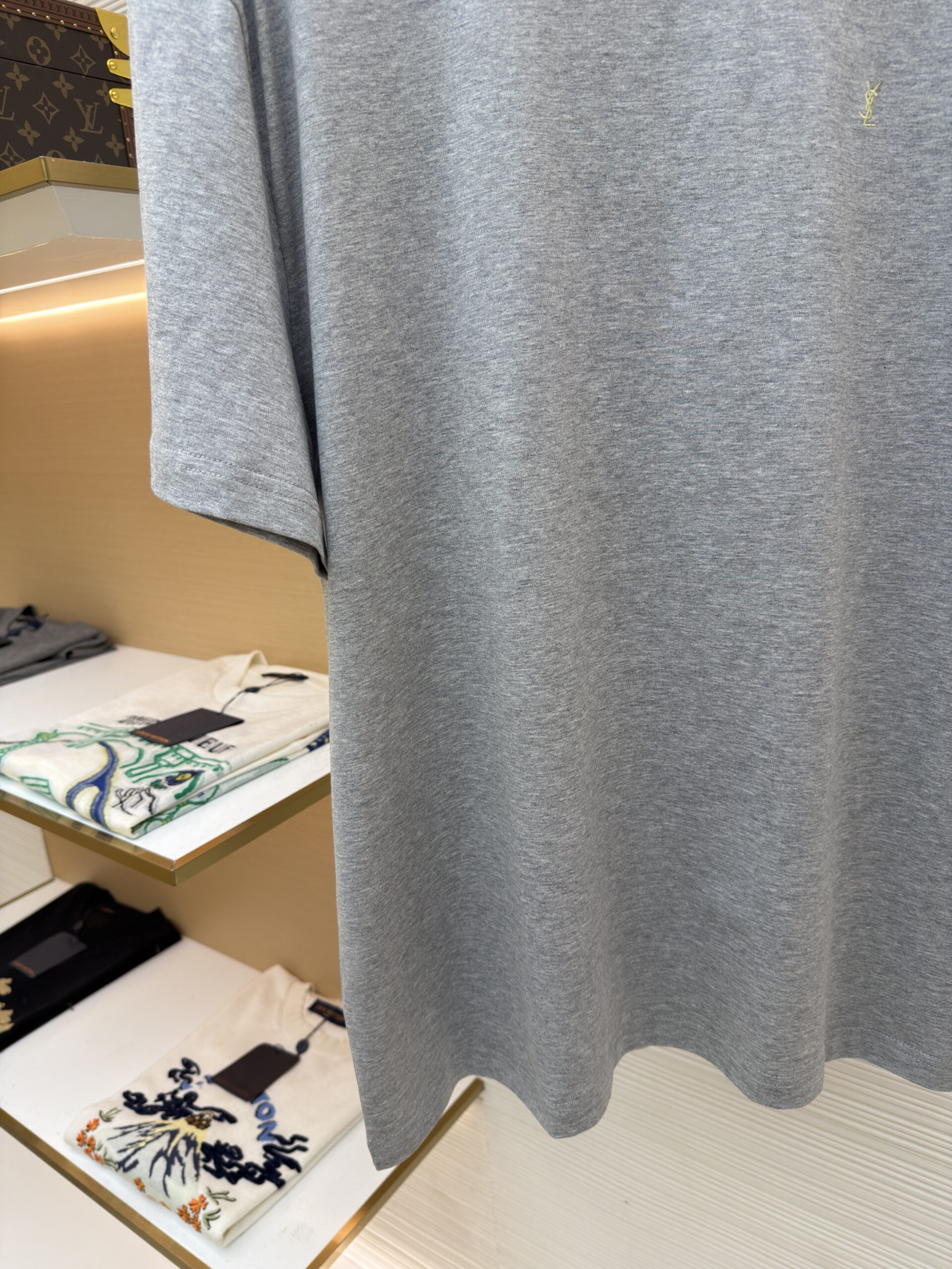 SAINT LAURENT Embroidery logo loose Round neck T-shirt Gray サンローラン 刺繍 logo ゆったり クルーネック Tシャツ グレー