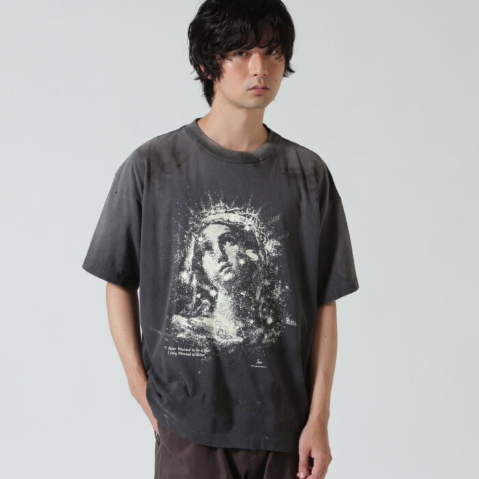 SAINT MXXXXXX Print pattern Round neck T-shirt Washed Black セント マイケル プリント パターン クルーネック Tシャツ ウォッシュドブラック
