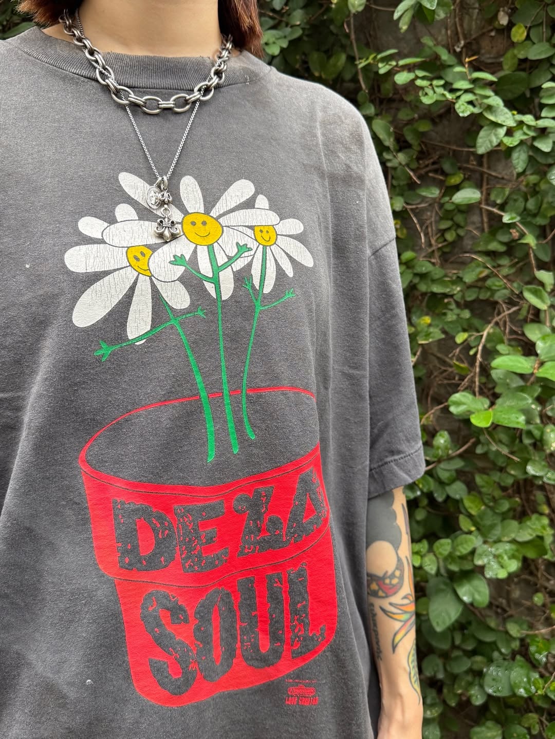 SAINT MXXXXXX x DE LA SOUL Print pattern Round neck T-shirt Washed Black セント マイケル x DE LA SOUL プリント パターン クルーネック Tシャツ ウォッシュドブラック
