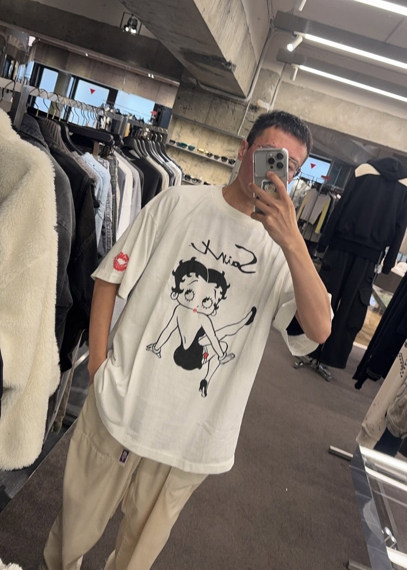 SAINT Mxxxxxx x BETTY Print pattern Round neck T-shirt White セント マイケル x BETTY プリント パターン クルーネック Tシャツ ホワイト