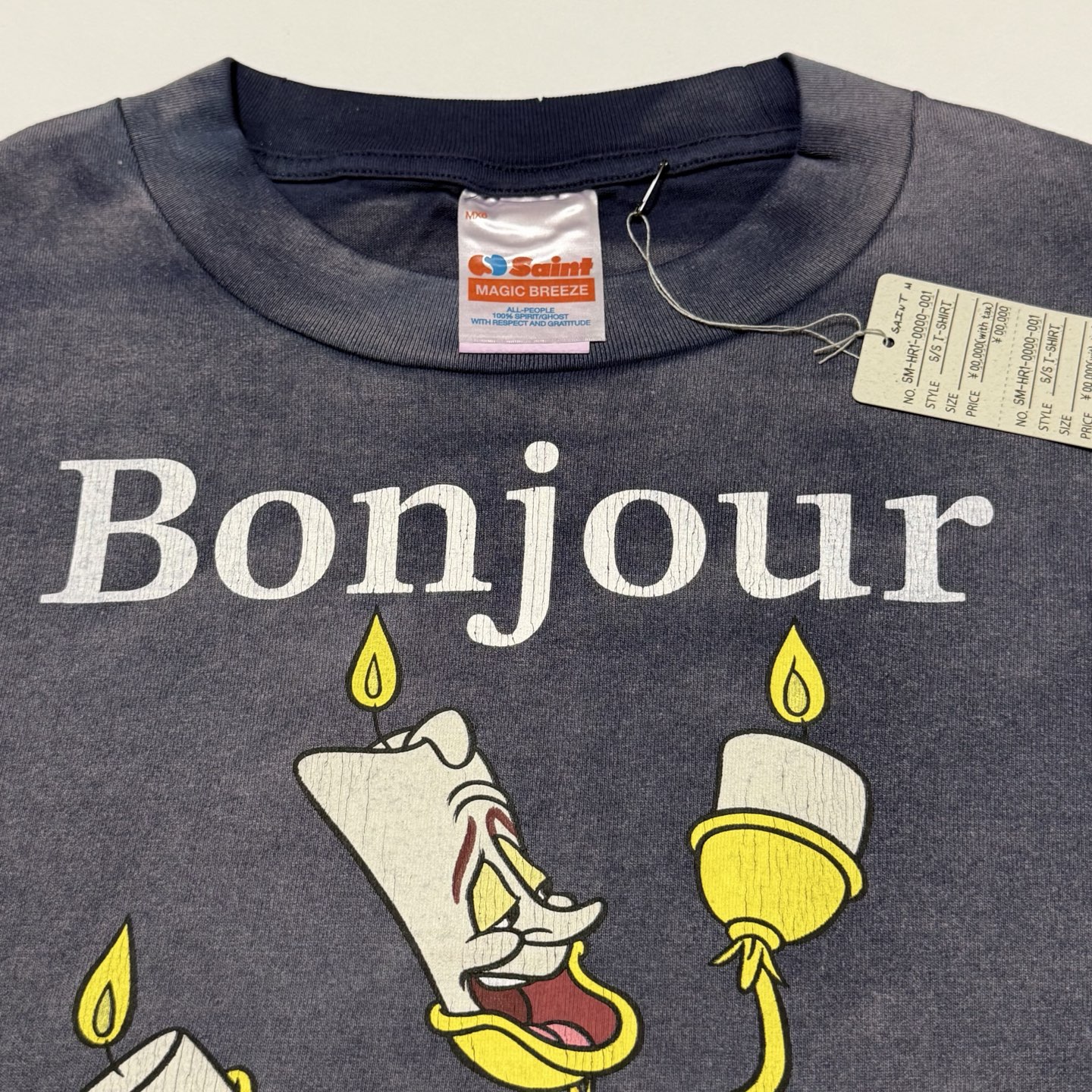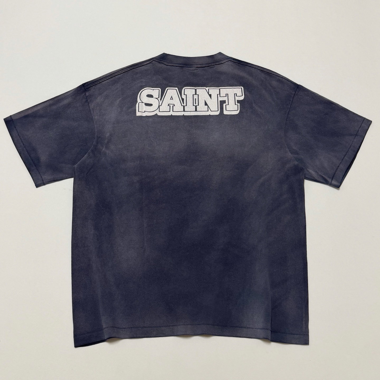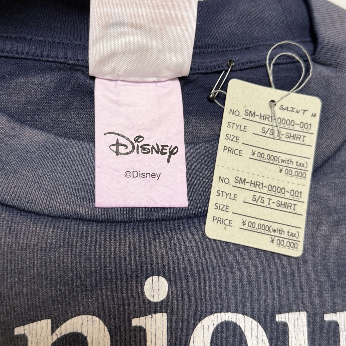 SAINT MXXXXXX x Disney Print Letter pattern Round neck T-shirt Washed Blue セント マイケル x Disney プリント モジ パターン クルーネック Tシャツ ウォッシュドブルー
