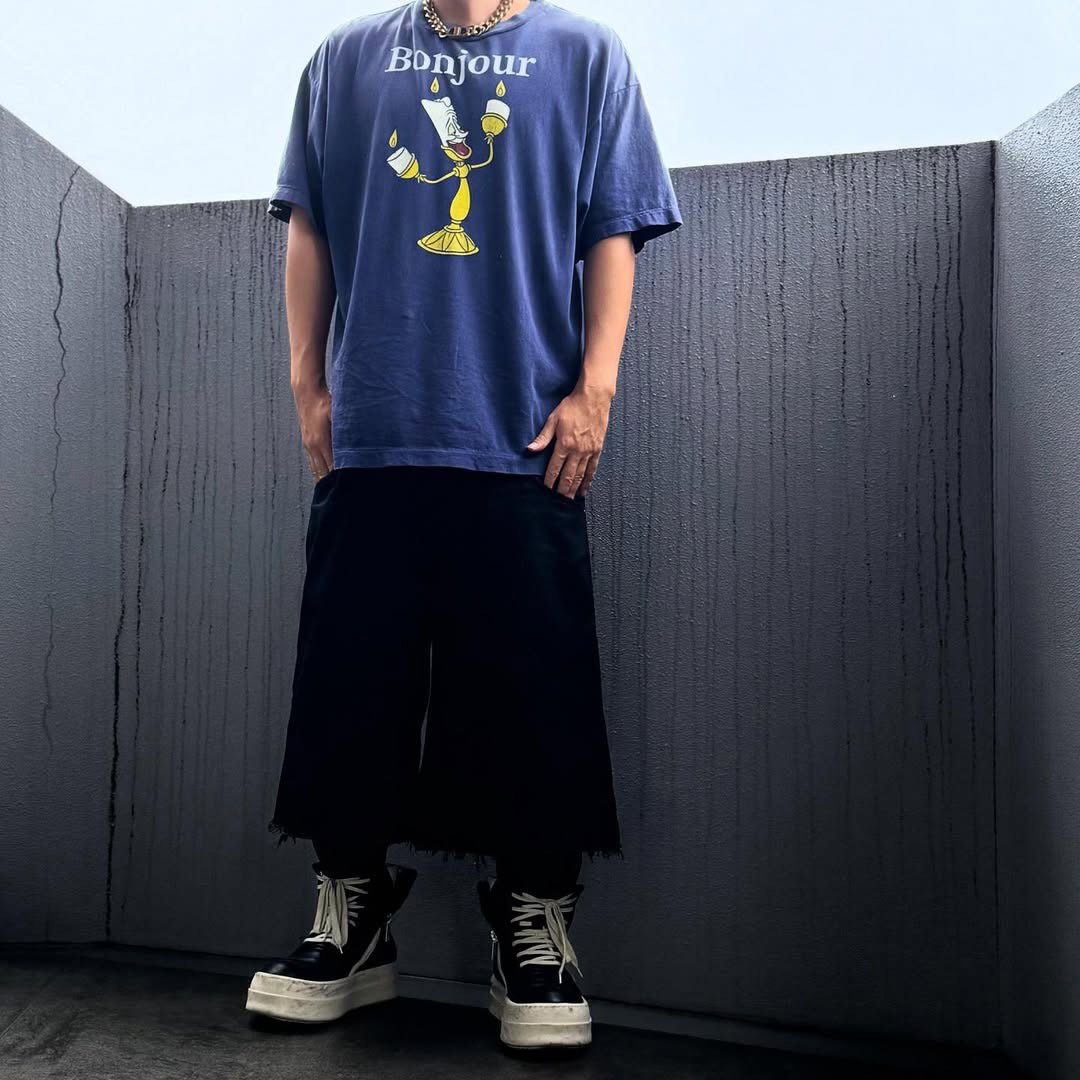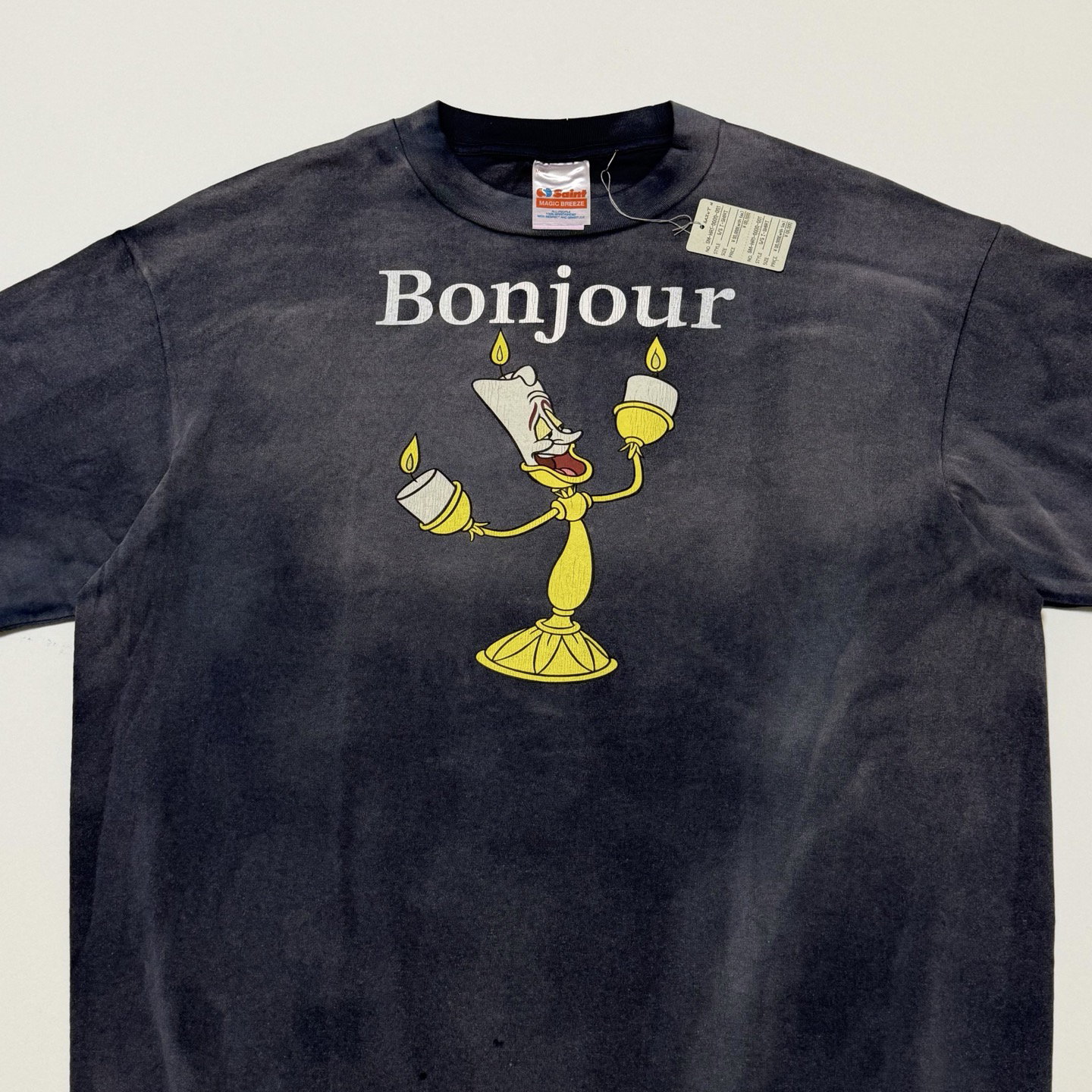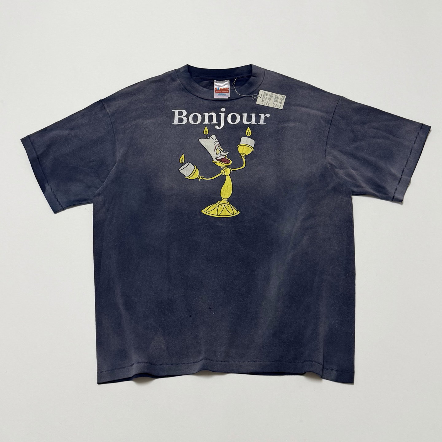 SAINT MXXXXXX x Disney Print Letter pattern Round neck T-shirt Washed Blue セント マイケル x Disney プリント モジ パターン クルーネック Tシャツ ウォッシュドブルー