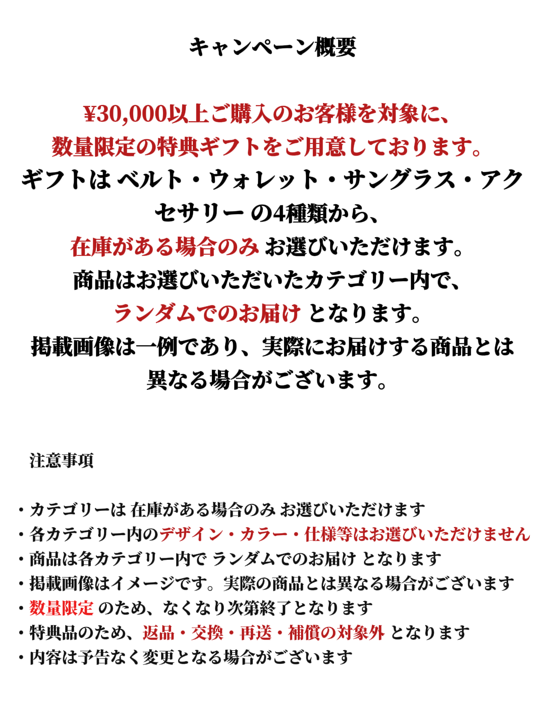 - 払い戻し: 払い戻しを選択いただいた場合、元の支払い方法でご注文金額(商品価格および送料を含む)を払い戻しいたします。