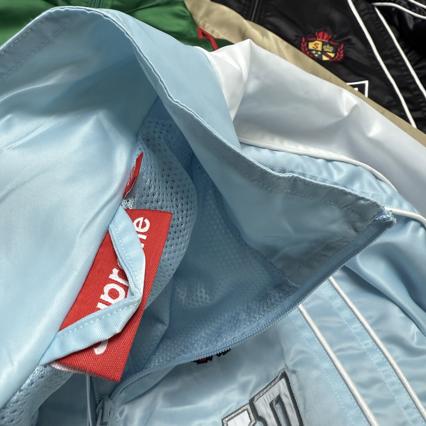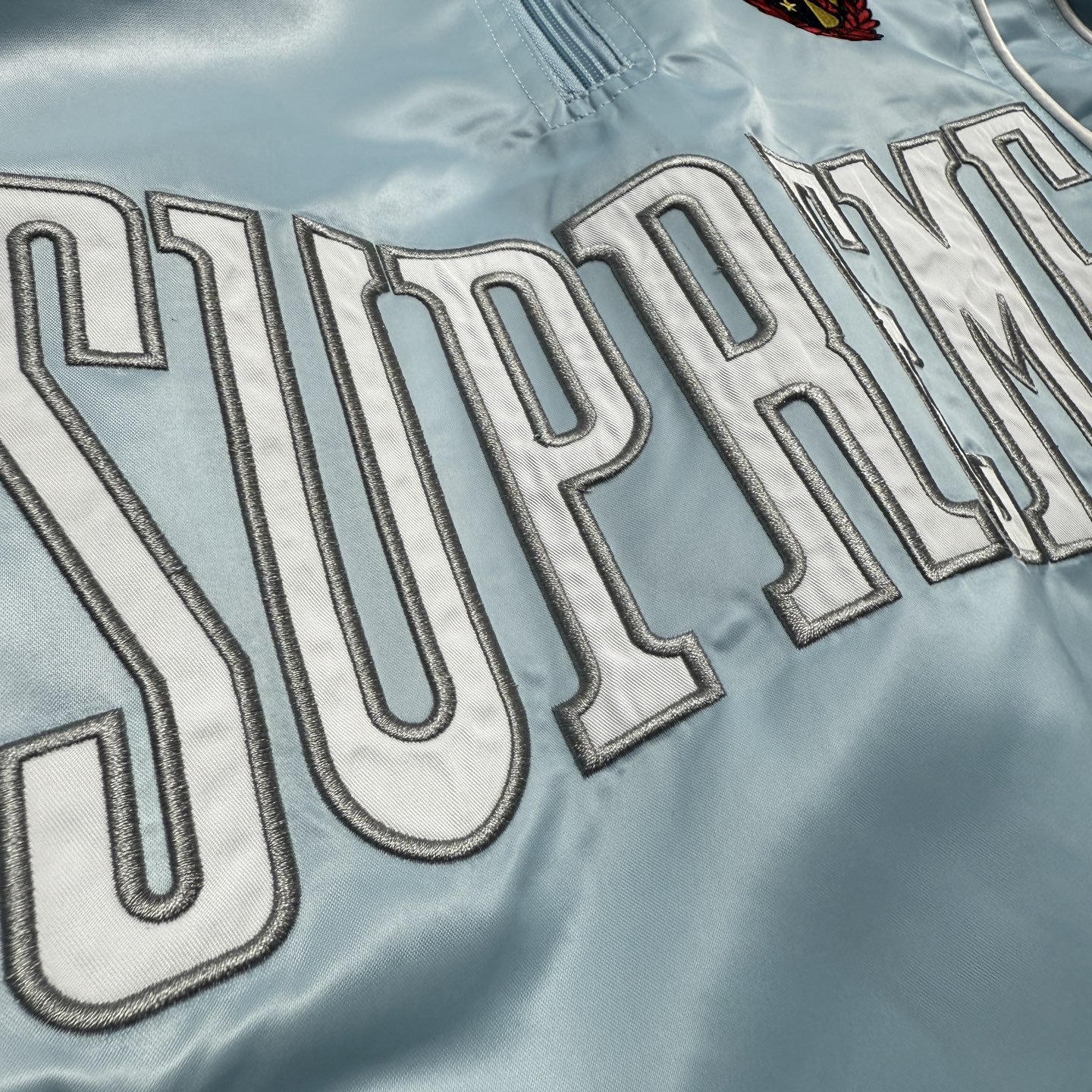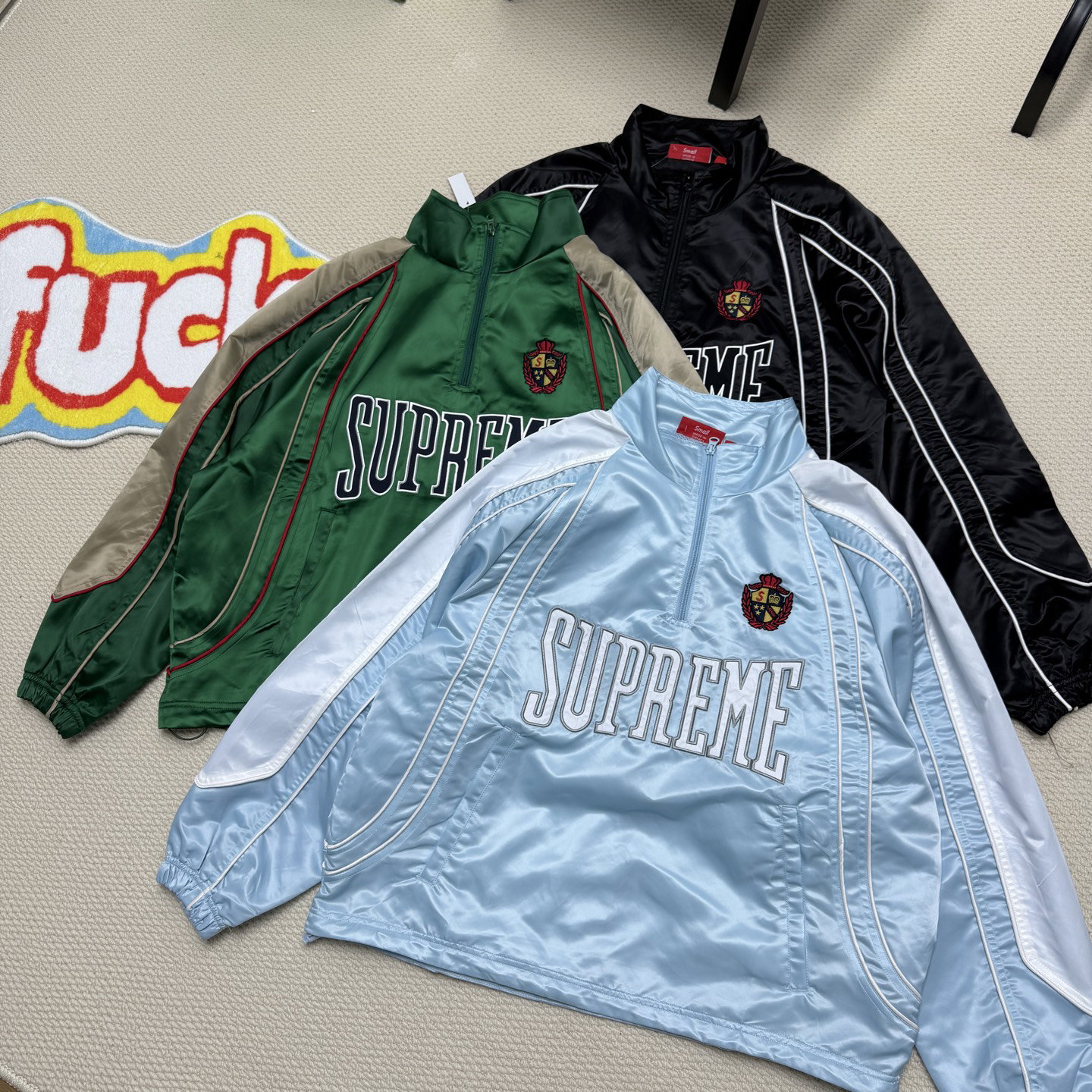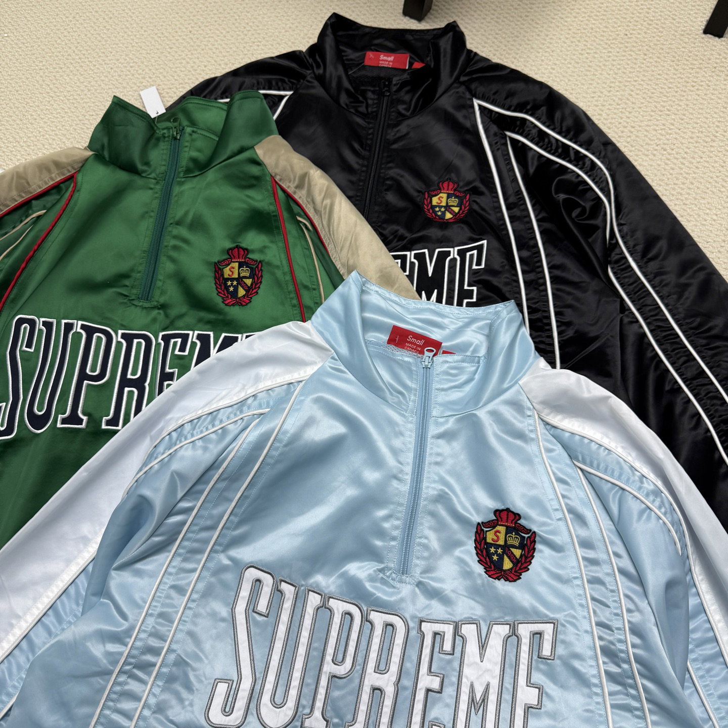 Supreme Embroidery Letter logo SS25 Satin Piping Pullover half-zip Sweatshirt Blue シュプリーム 刺繍 モジ logo SS25 サテンパイピング プルオーバー ハーフジップ スウェット ブルー