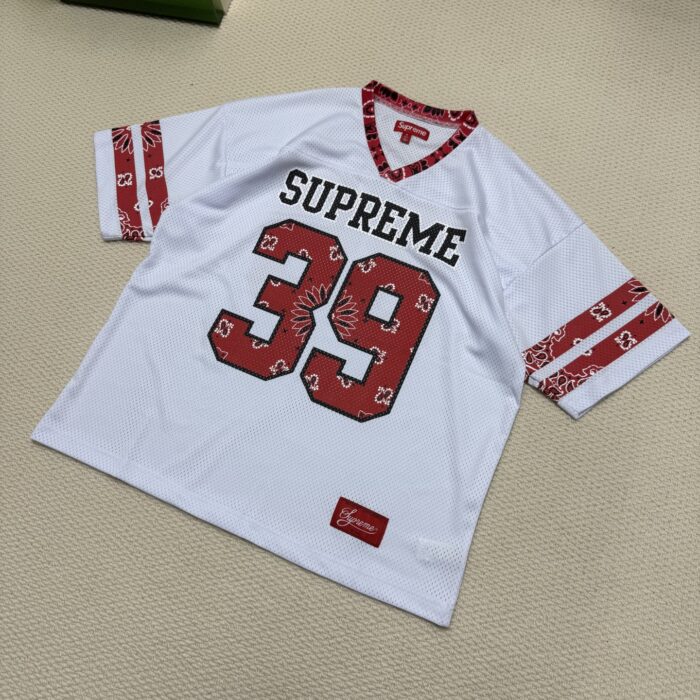 SUPREME Print Letter number Paisley logo mesh surface loose T-shirt White シュプリーム プリント モジ ナンバー ペイズリー logo メッシュ ゆったり Tシャツ ホワイト