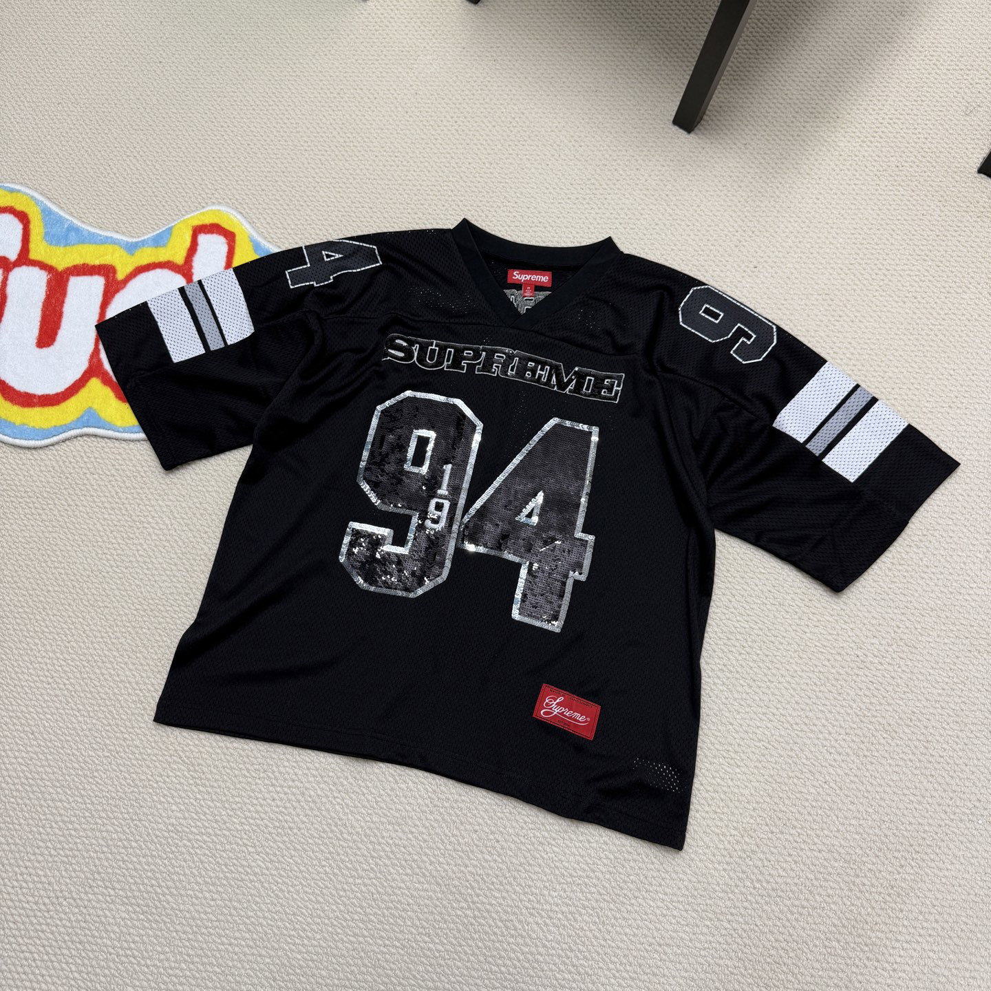 SUPREME number logo FW25 WEEK5 Sequin Football Jersey T-shirt Black シュプリーム ナンバー logo FW25 ウィーク 5 スパンコール フットボールジャージ Tシャツ ブラック