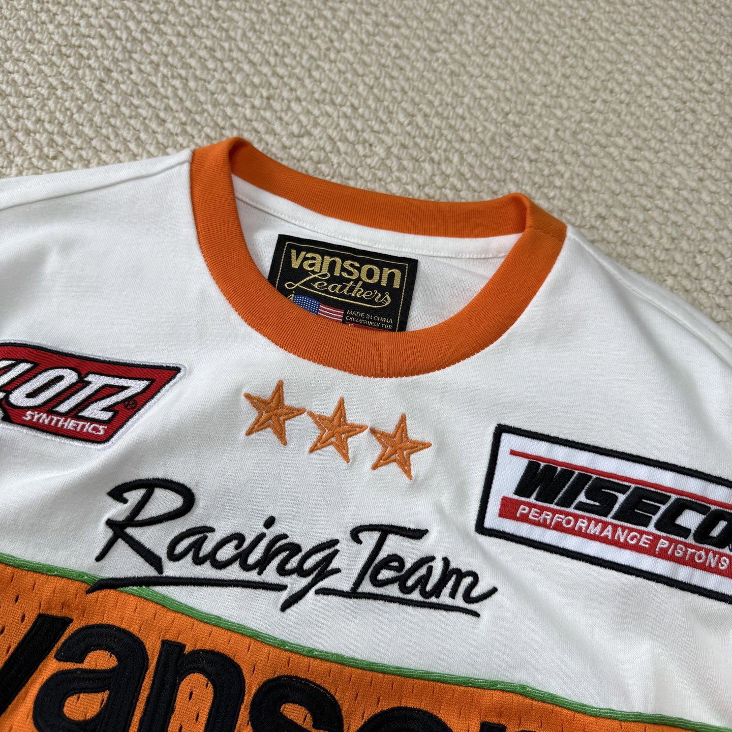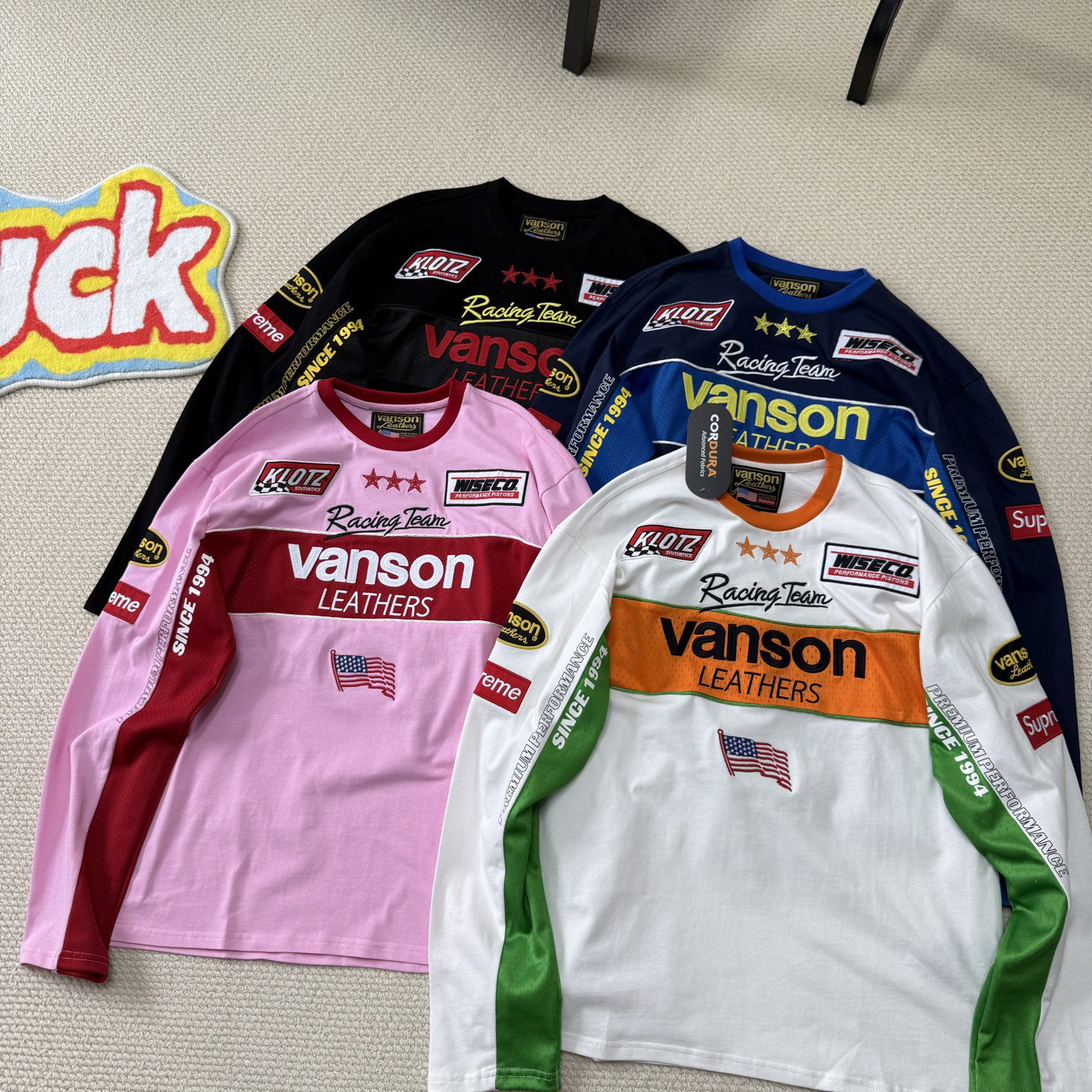 Supreme x Vanson Leathers Patchwork Embroidery Letter logo loose long sleeves T-shirt シュプリーム x ヴァンソン レザーズ パッチワーク 刺繍 モジ logo ゆったり 長袖 Tシャツ