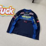 Supreme x Vanson Leathers Patchwork Embroidery Letter logo loose long sleeves T-shirt Navy シュプリーム x ヴァンソン レザーズ パッチワーク 刺繍 モジ logo ゆったり 長袖 Tシャツ ネイビー