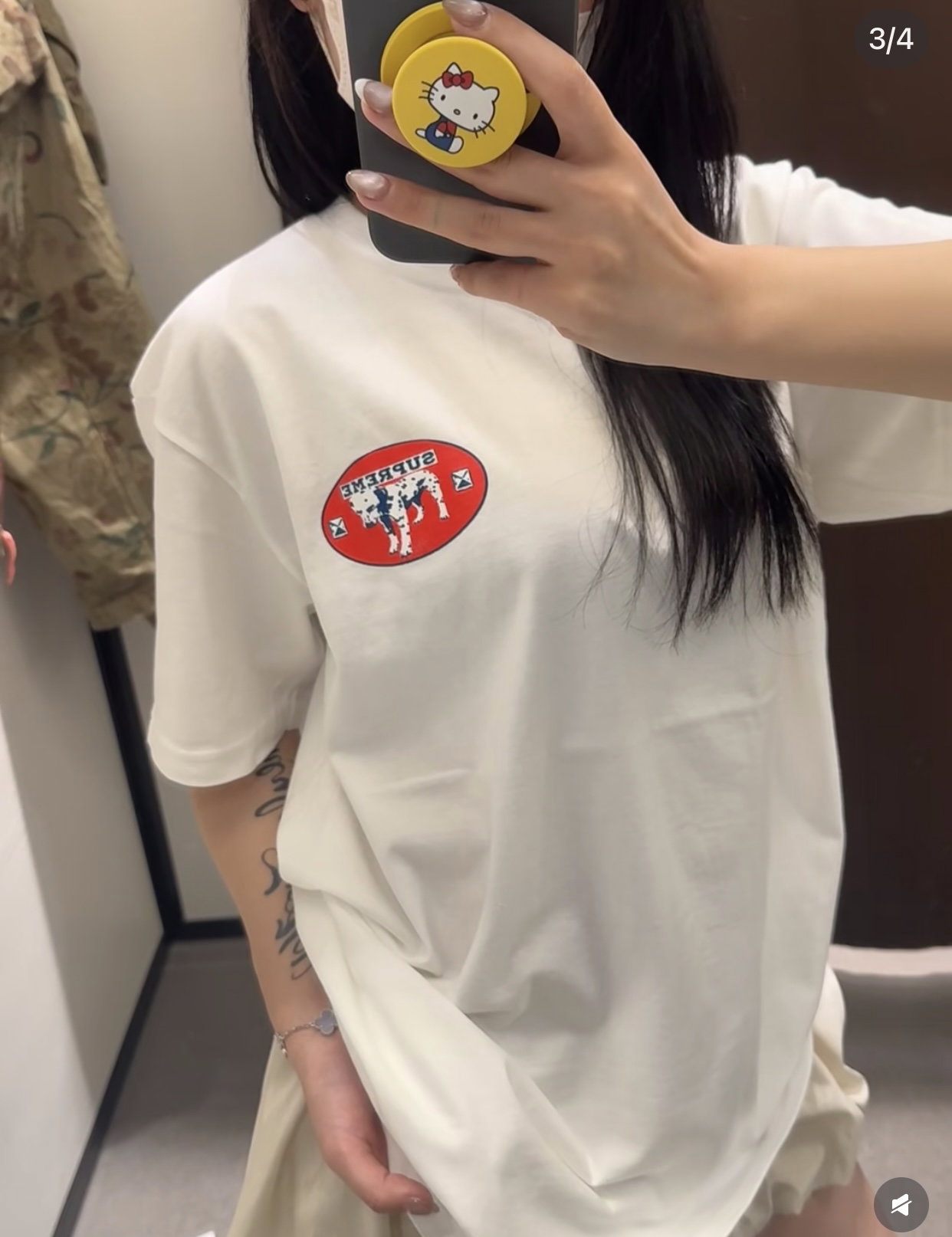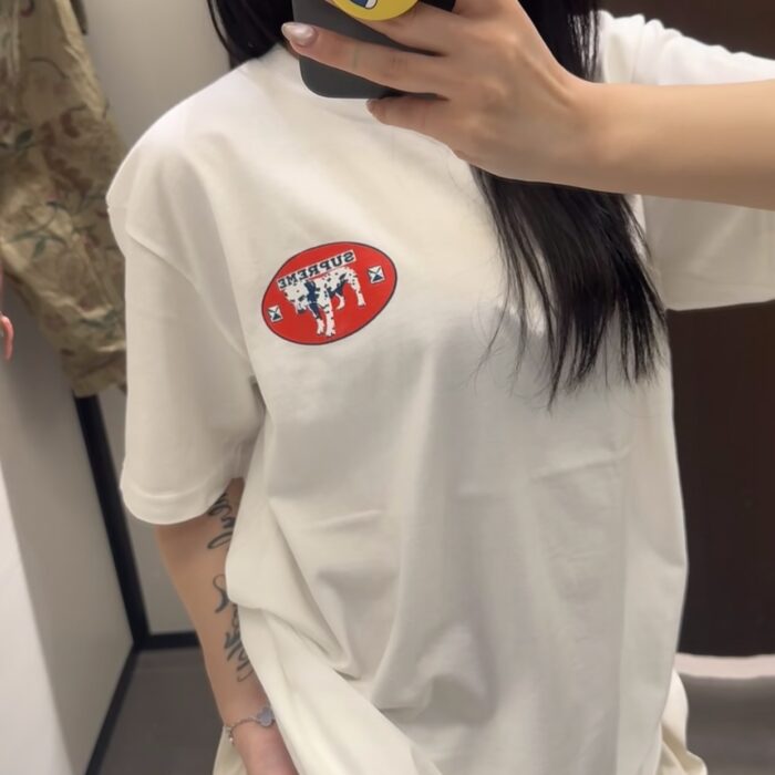 SUPREME Print Red pattern loose Round neck T-shirt White シュプリーム プリント レッド パターン クルーネック ゆったり Tシャツ ホワイト