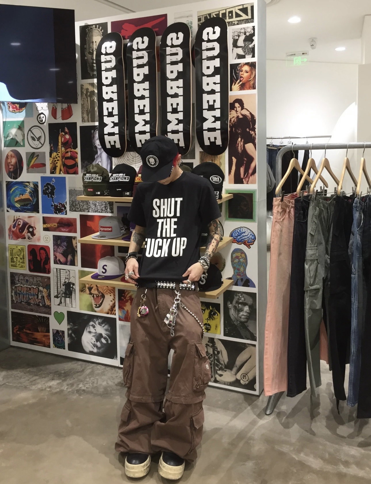 SUPREME Print pattern Round neck loose T-shirt Black シュプリーム プリント クルーネック ゆったり Tシャツ ブラック