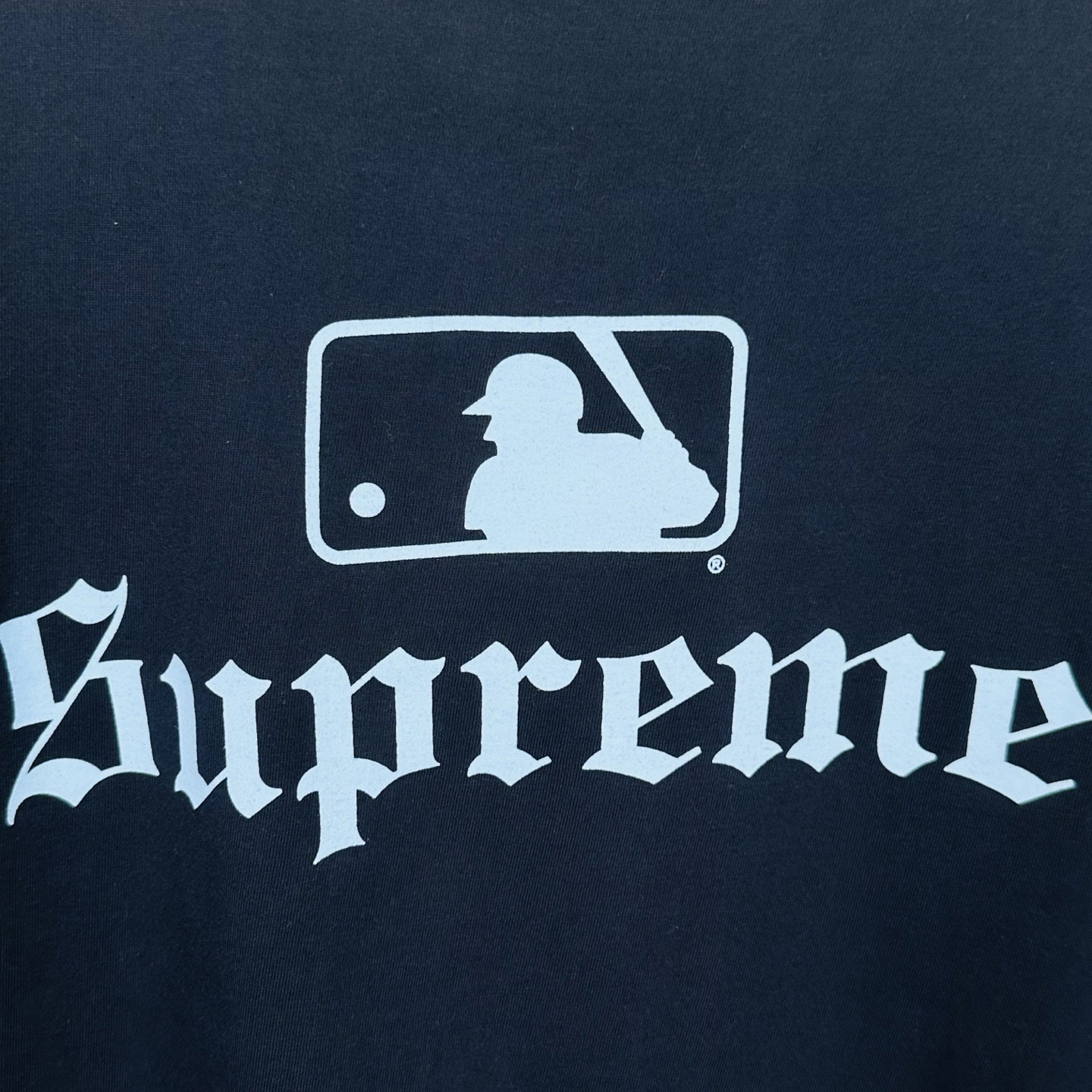 SUPREME x MLB Print Letter logo loose Round neck T-shirt Navy シュプリーム x エムエルビー プリント モジ logo ゆったり クルーネック Tシャツ ネイビー