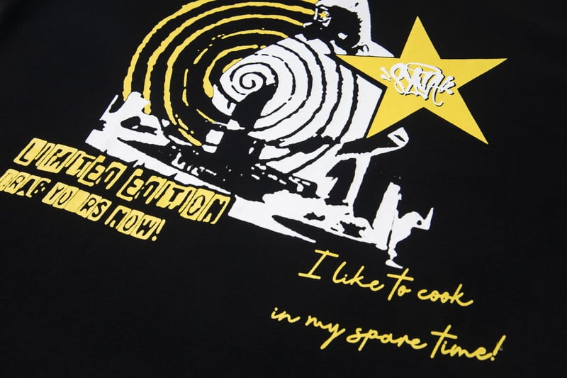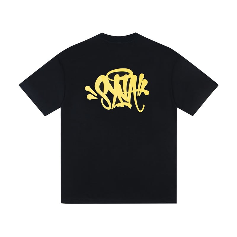Syna World Print Yellow pattern loose Round neck T-shirt Black セットアップ プリント イエロー パターン ゆったり クルーネック Tシャツ ブラック