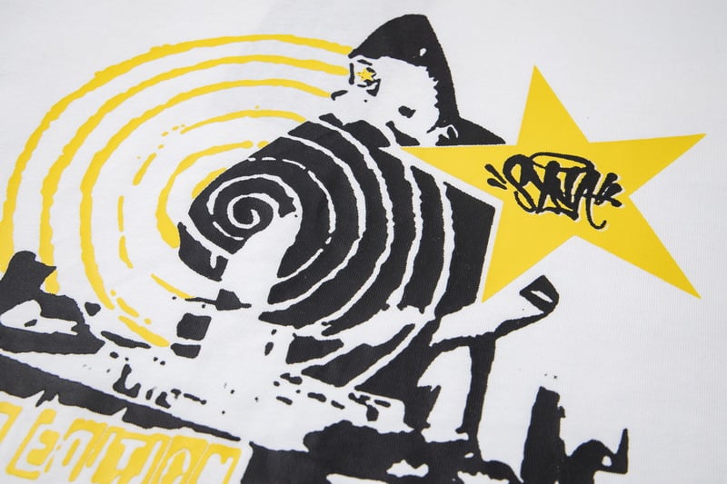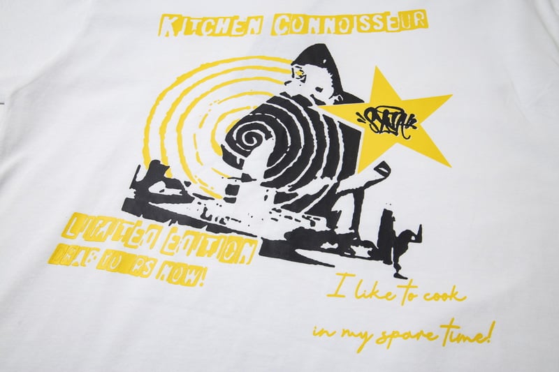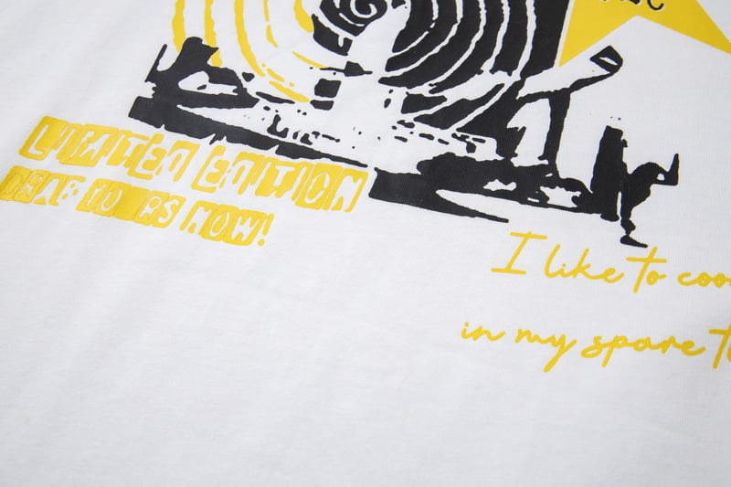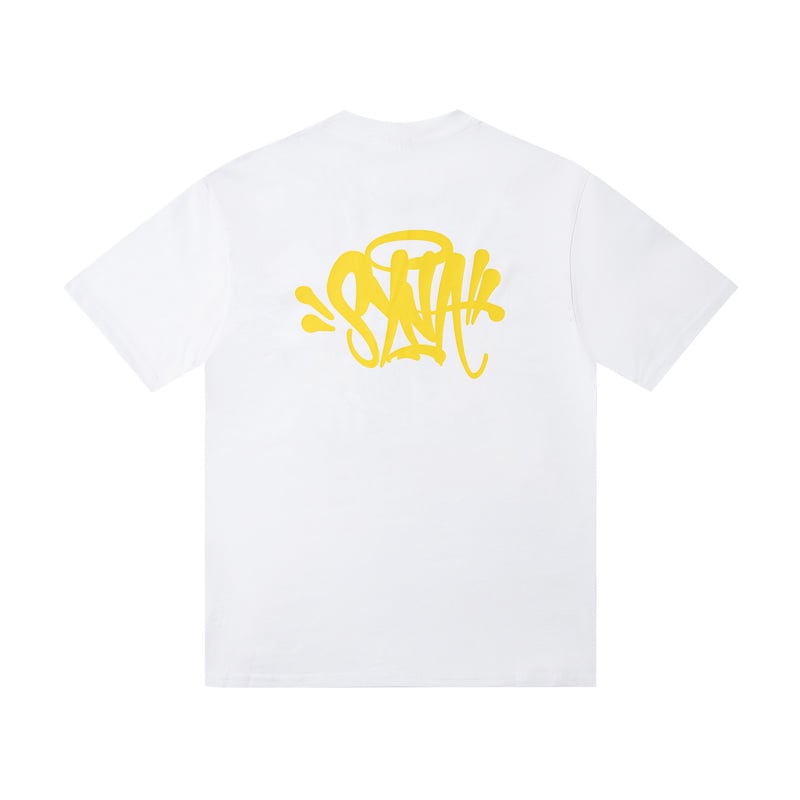 Syna World Print Yellow pattern loose Round neck T-shirt White セットアップ プリント イエロー パターン ゆったり クルーネック Tシャツ ホワイト
