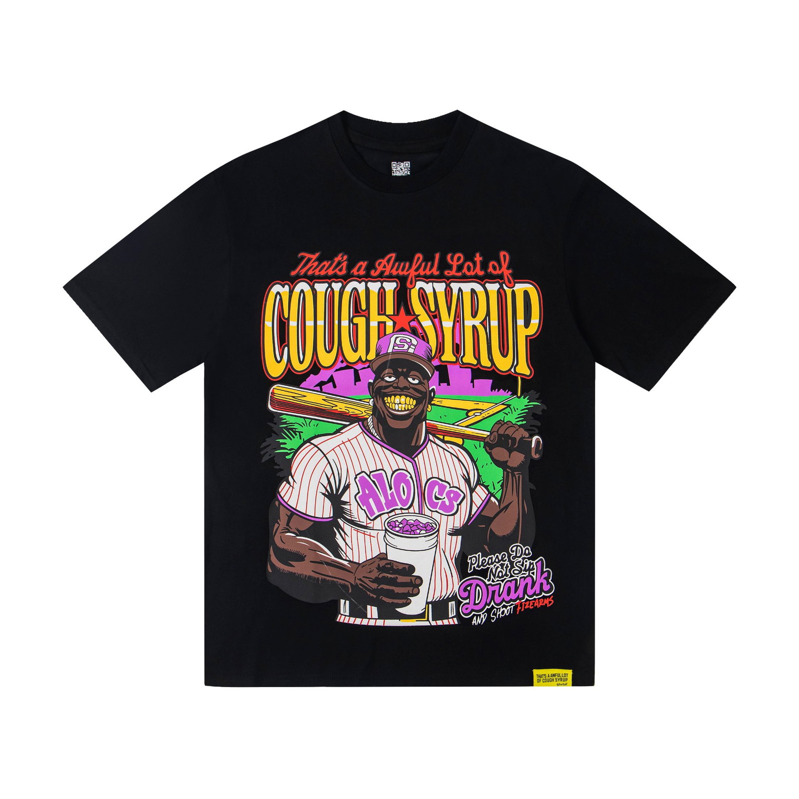 Thats A Awful Lot Of Cough Syrup Print Letter pattern loose Round neck T-shirt Black プリント モジ パターン ゆったり クルーネック Tシャツ ブラック