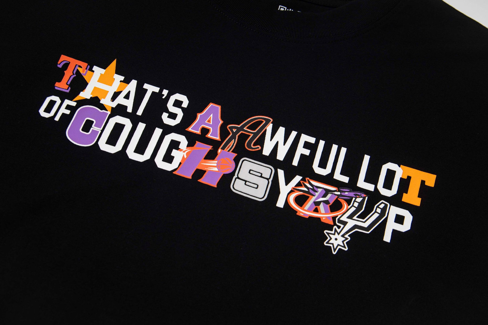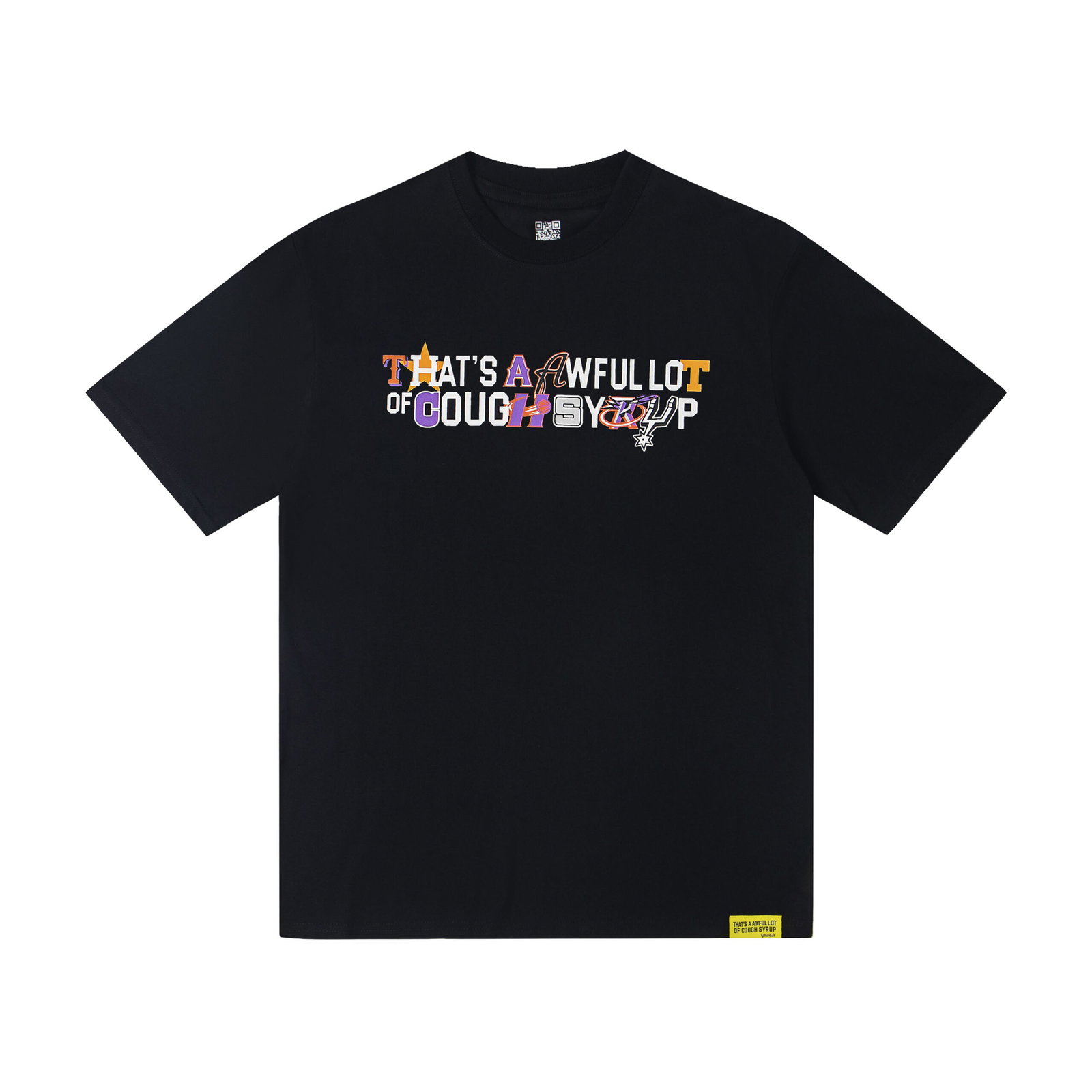 Thats A Awful Lot Of Cough Syrup Print Letter pattern logo loose Round neck T-shirt Black プリント モジ パターン logo ゆったり クルーネック Tシャツ ブラック
