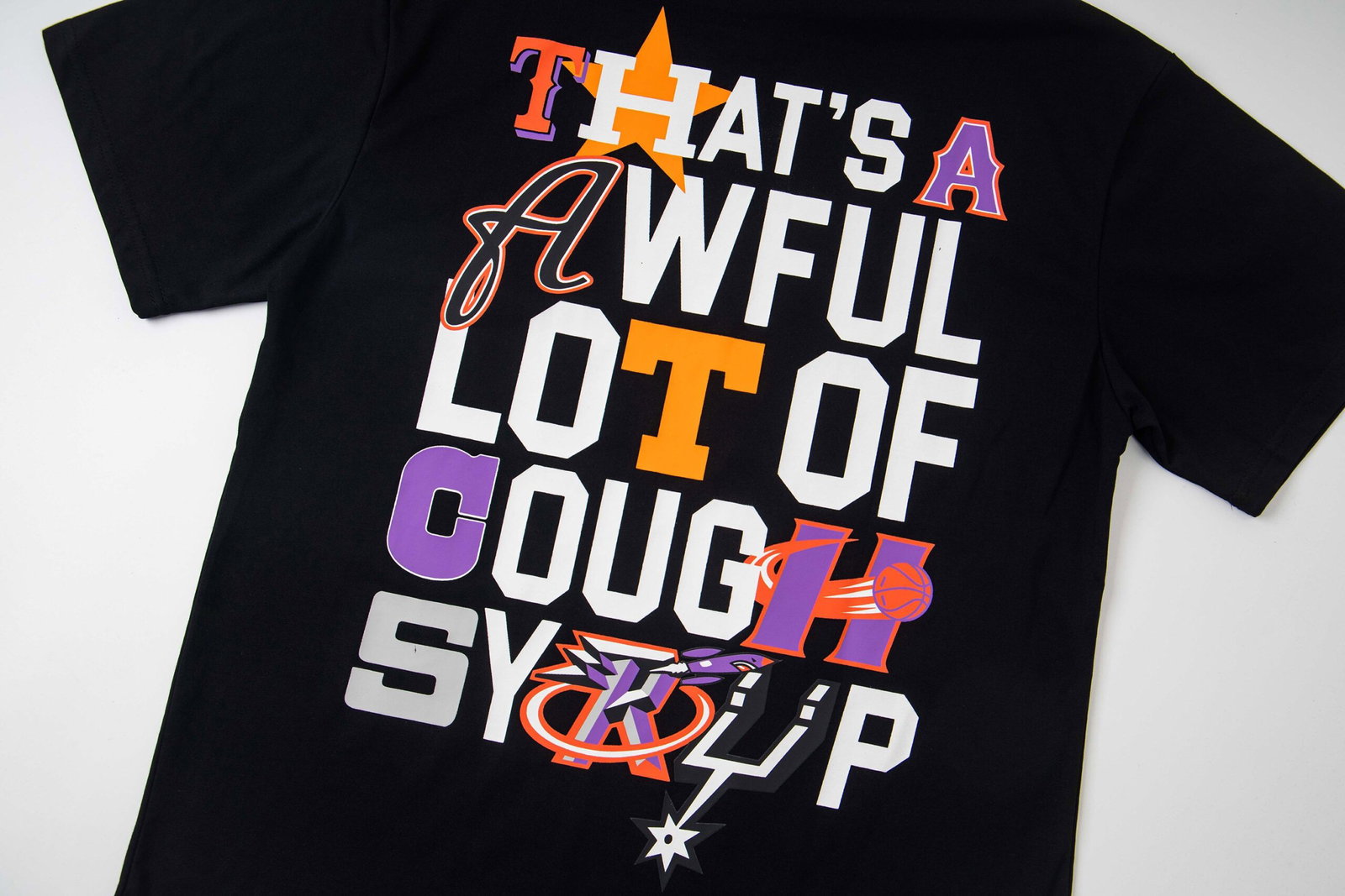 Thats A Awful Lot Of Cough Syrup Print Letter pattern loose Round neck T-shirt Black プリント モジ パターン ゆったり クルーネック Tシャツ ブラック