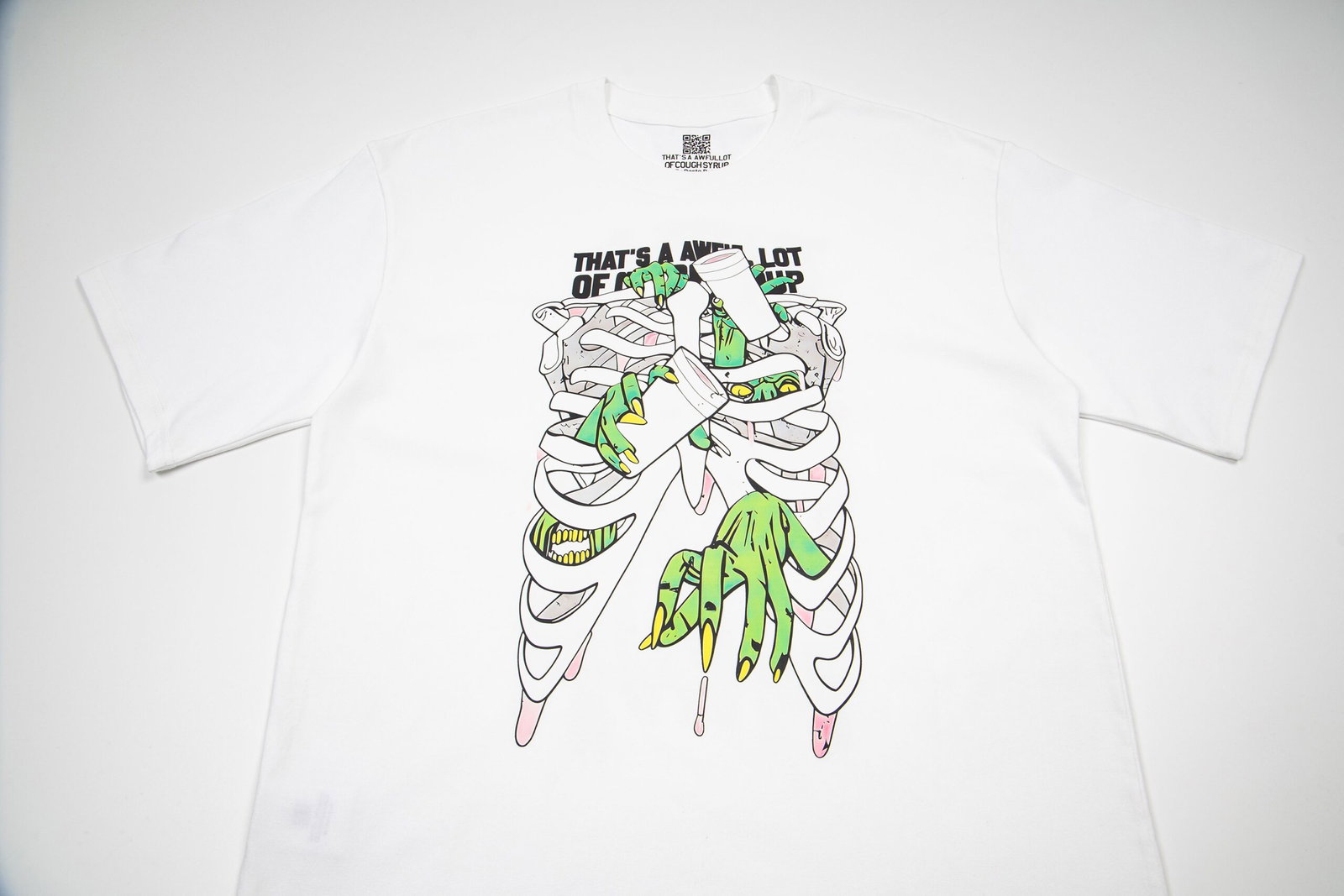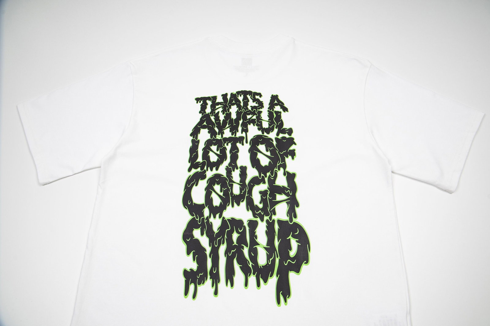 Thats A Awful Lot Of Cough Syrup Print pattern loose Round neck T-shirt White プリント パターン ゆったり クルーネック Tシャツ ホワイト