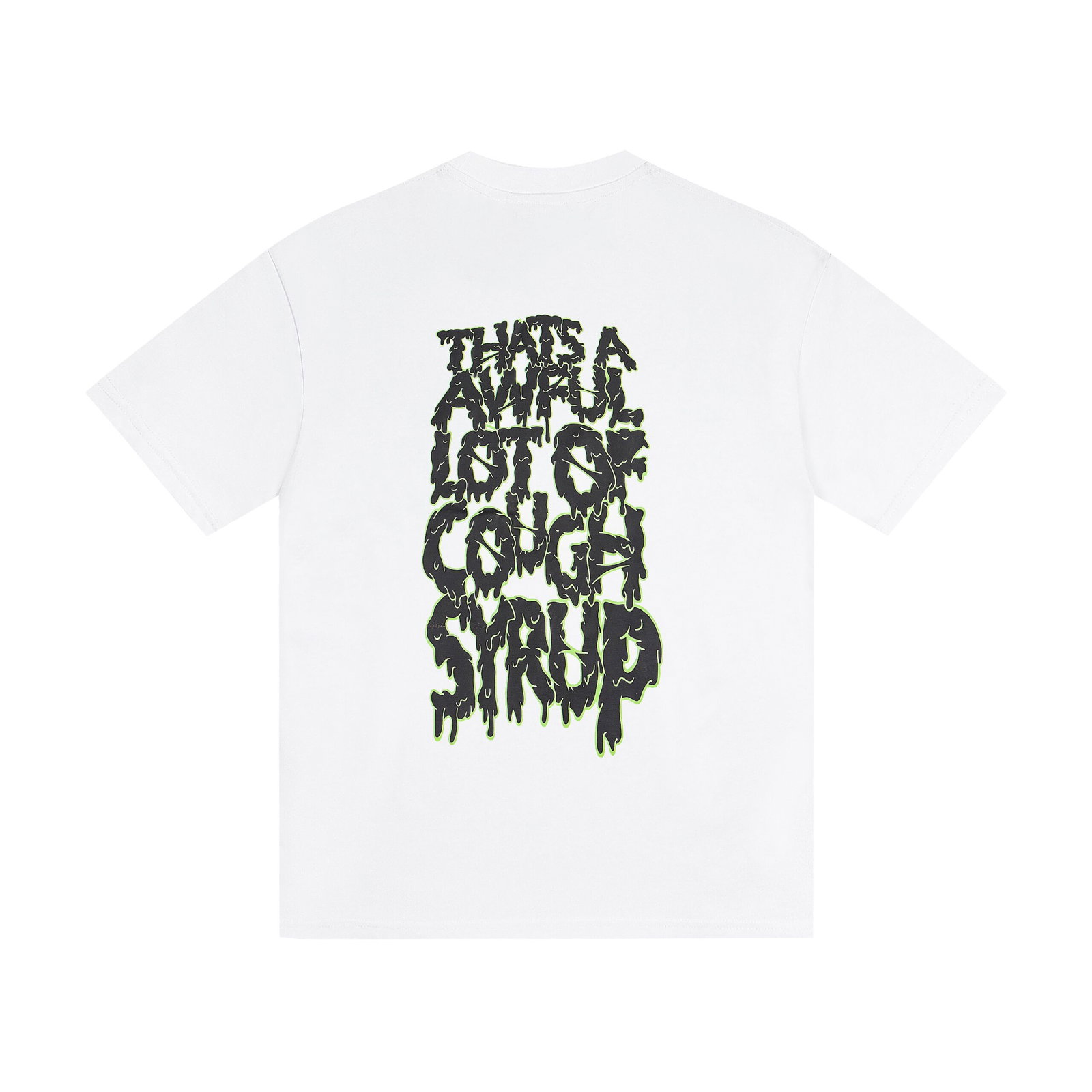 Thats A Awful Lot Of Cough Syrup Print Letter pattern loose Round neck T-shirt White プリント モジ パターン ゆったり クルーネック Tシャツ ホワイト