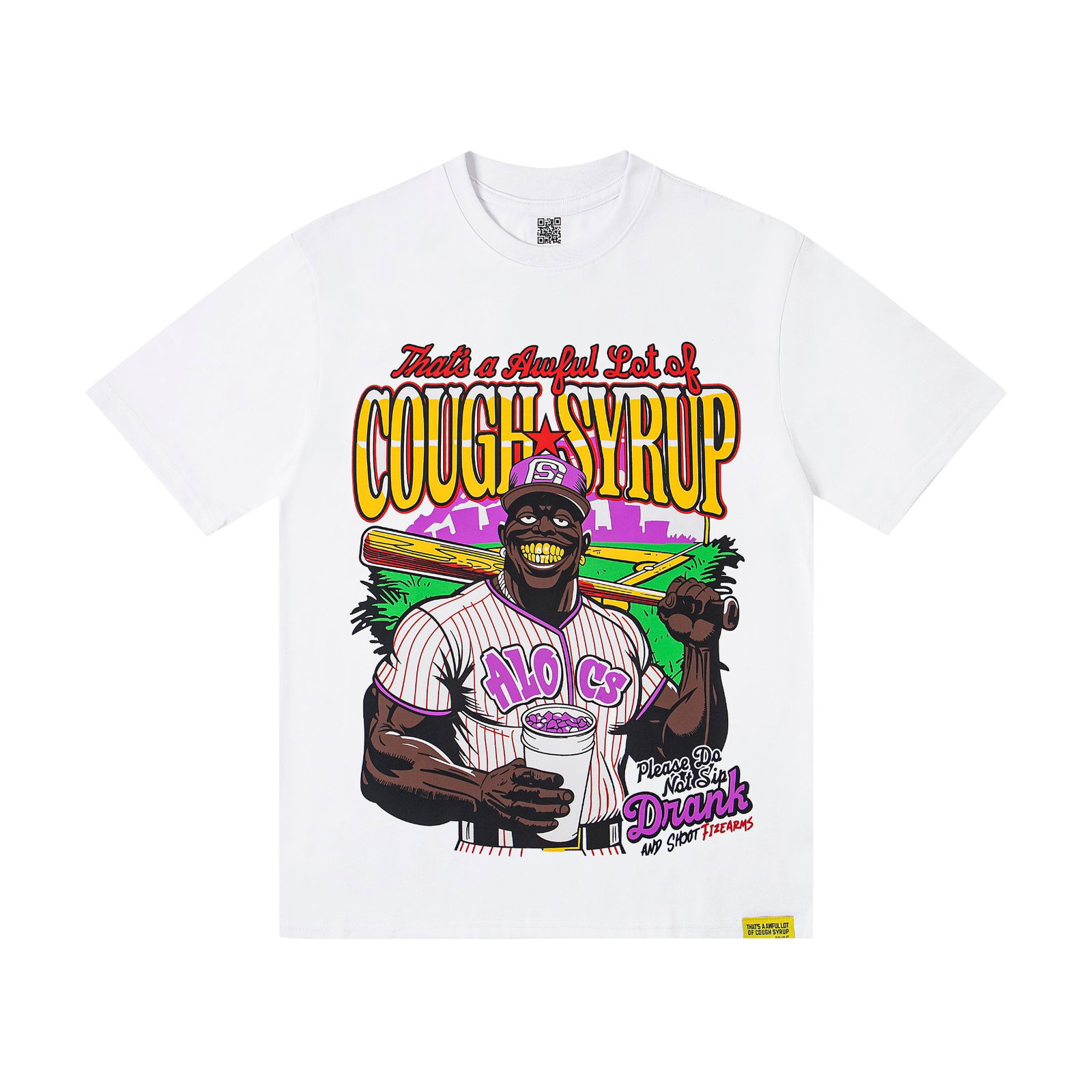 Thats A Awful Lot Of Cough Syrup Print Letter pattern loose Round neck T-shirt White プリント モジ パターン ゆったり クルーネック Tシャツ ホワイト
