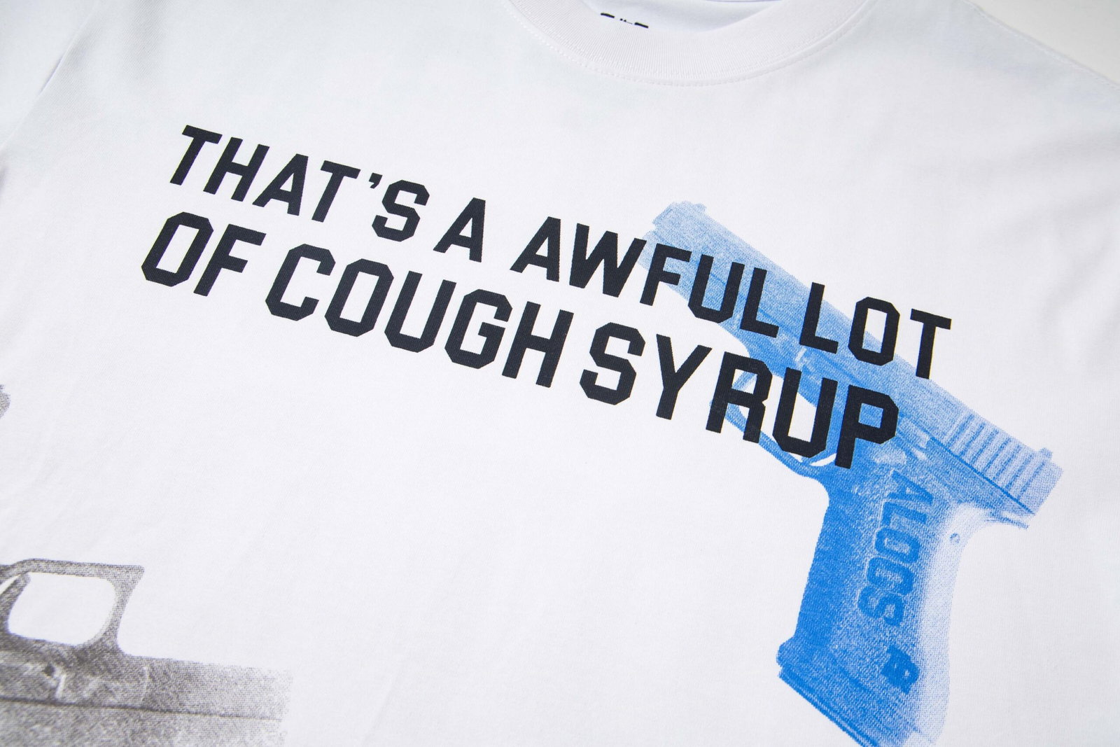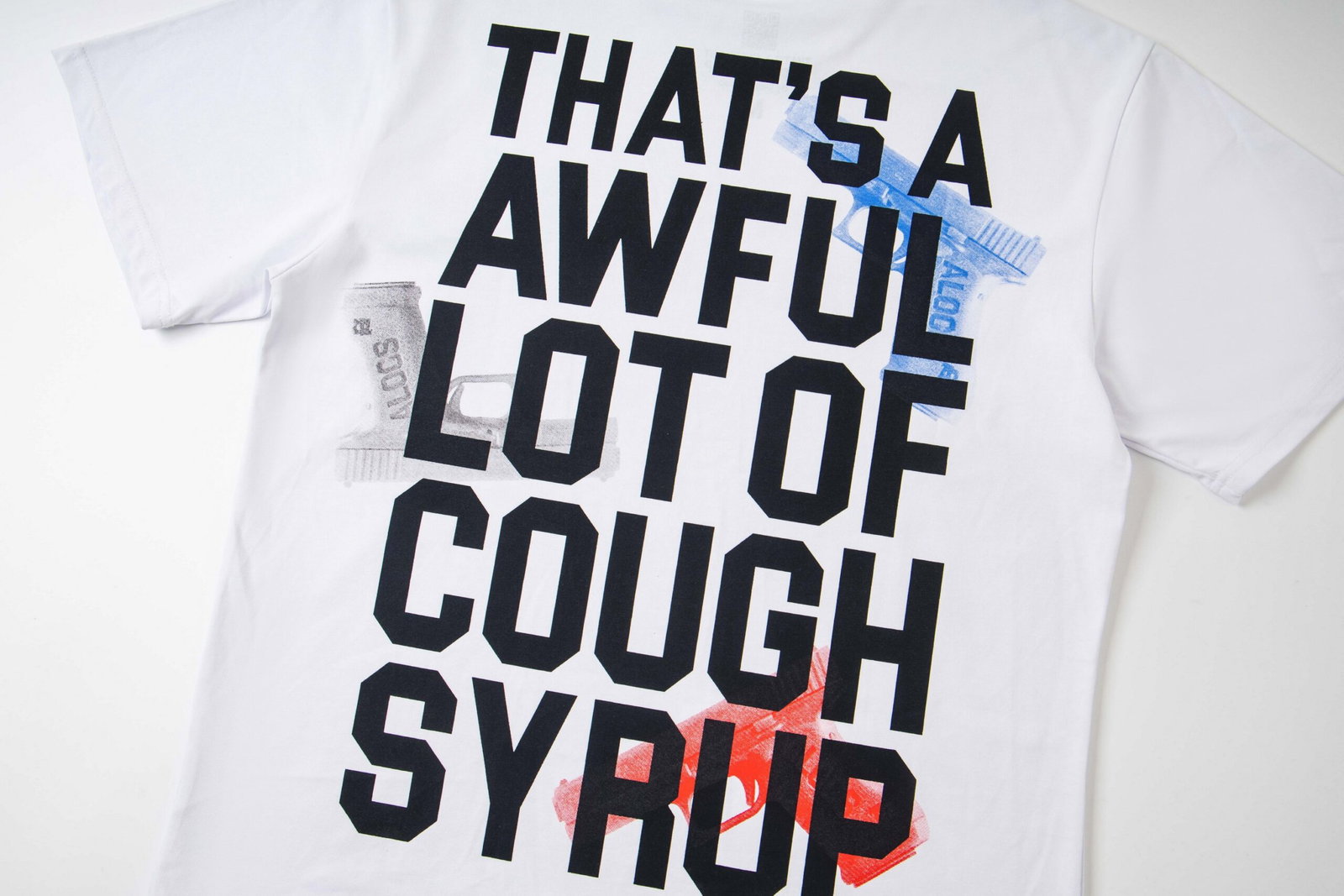 Thats A Awful Lot Of Cough Syrup Print Letter pattern loose Round neck T-shirt White プリント モジ パターン ゆったり クルーネック Tシャツ ホワイト