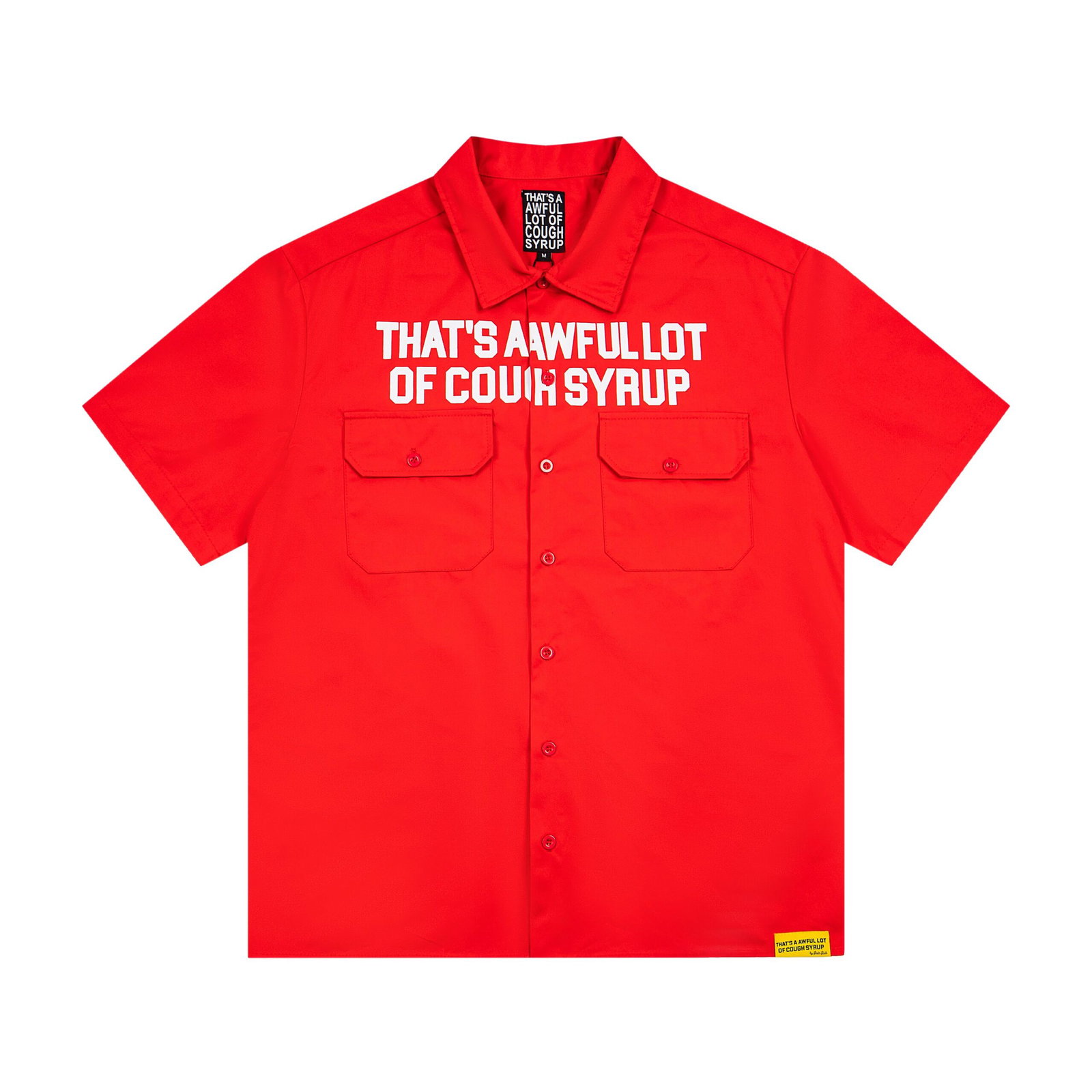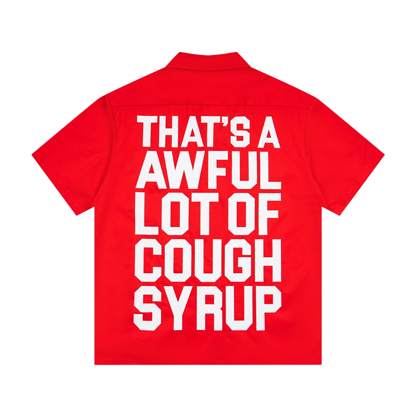 Thats A Awful Lot Of Cough Syrup Print Letter pattern loose short-sleeved shirt Red プリント モジ パターン ゆったり 半袖カジュアルシャツ レッド