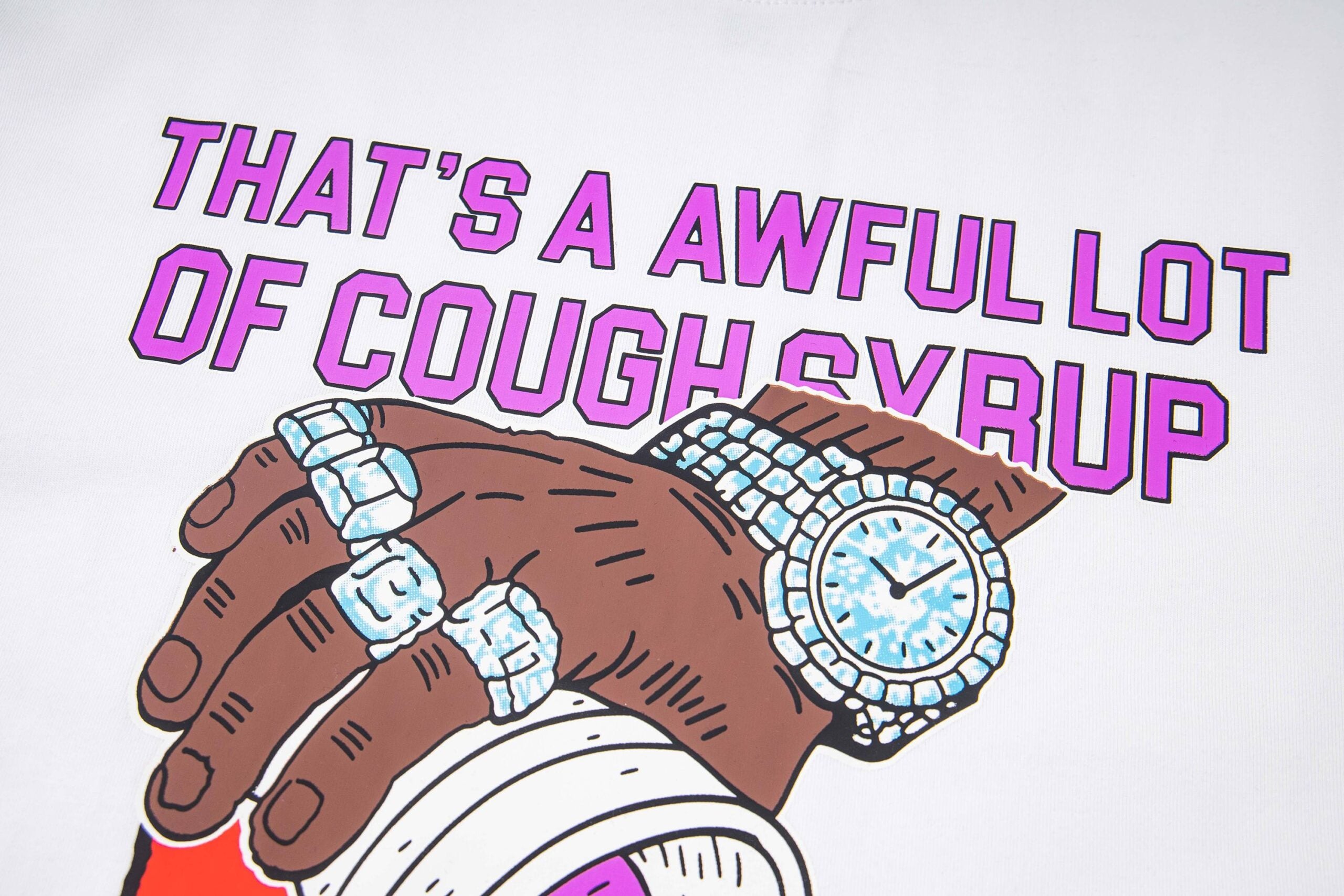 Thats A Awful Lot Of Cough Syrup Print pattern loose Round neck T-shirt White プリント パターン ゆったり クルーネック Tシャツ ホワイト