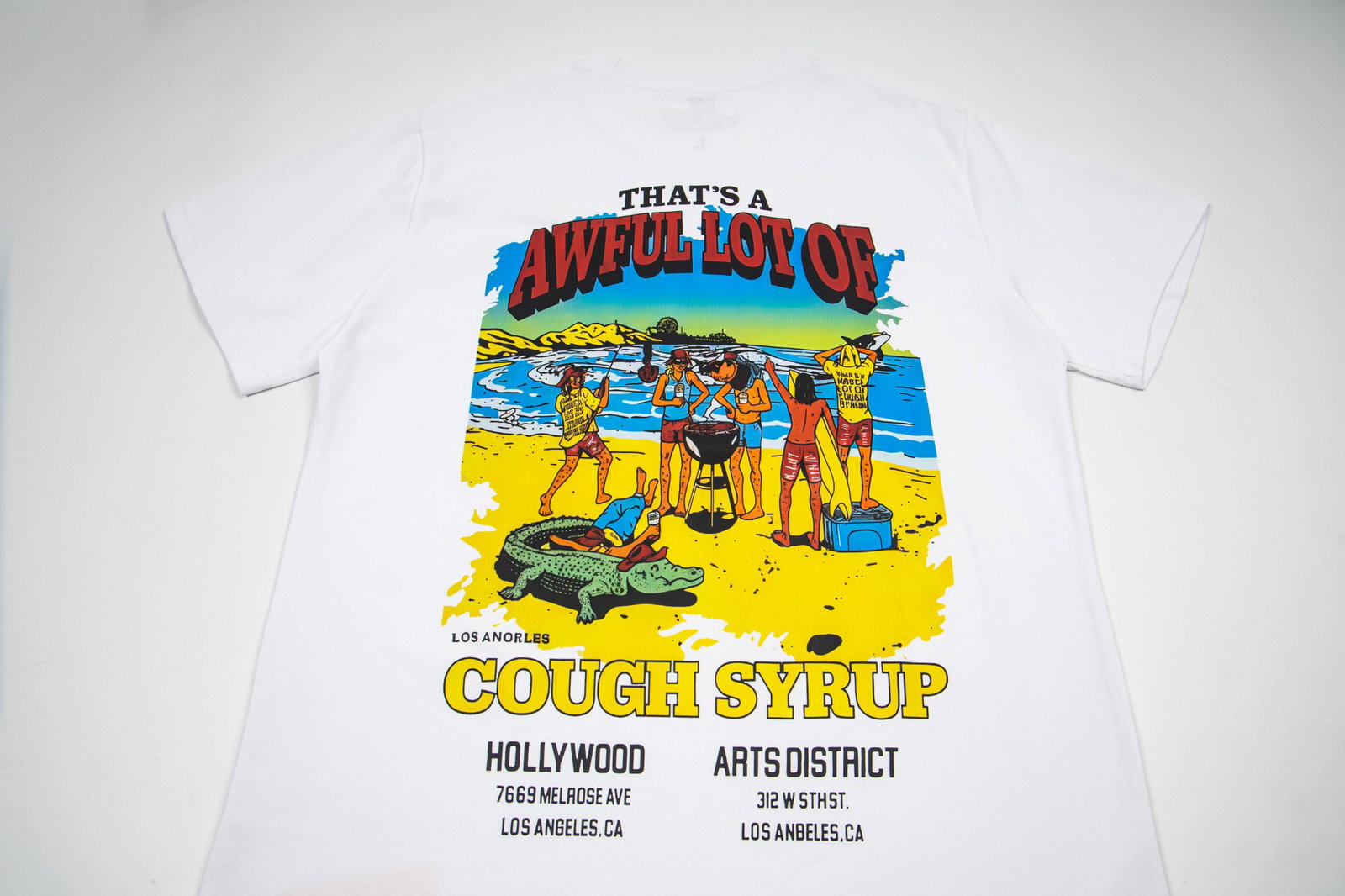 Thats A Awful Lot Of Cough Syrup Print pattern loose Round neck T-shirt White プリント パターン ゆったり クルーネック Tシャツ ホワイト