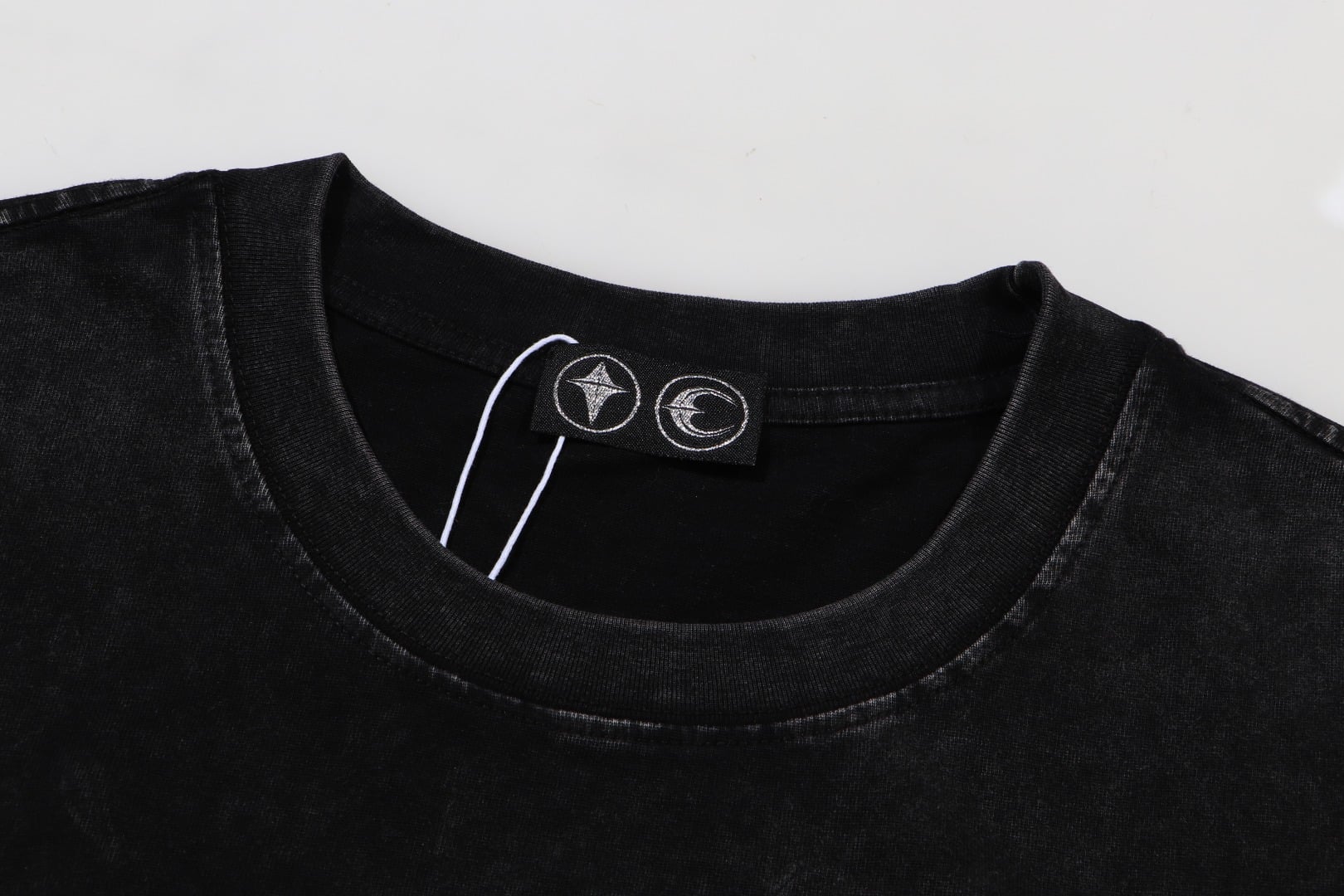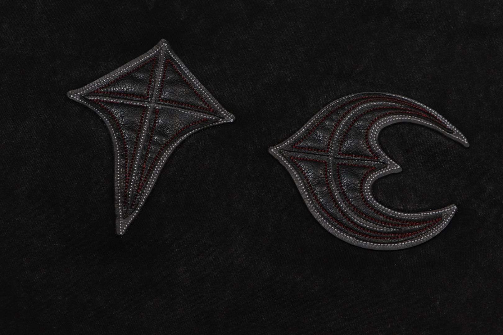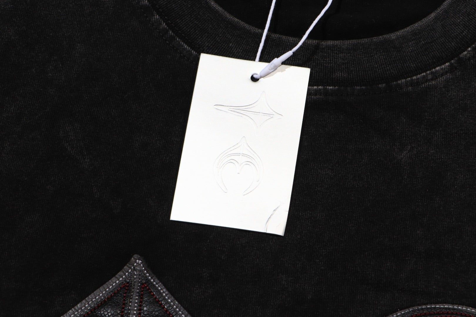 THUG CLUB Embroidery Leather pattern Round neck loose T-shirt washed black サグクラブ 刺繍 レザー パターン クルーネック ゆったり Tシャツ ウォッシュドブラック