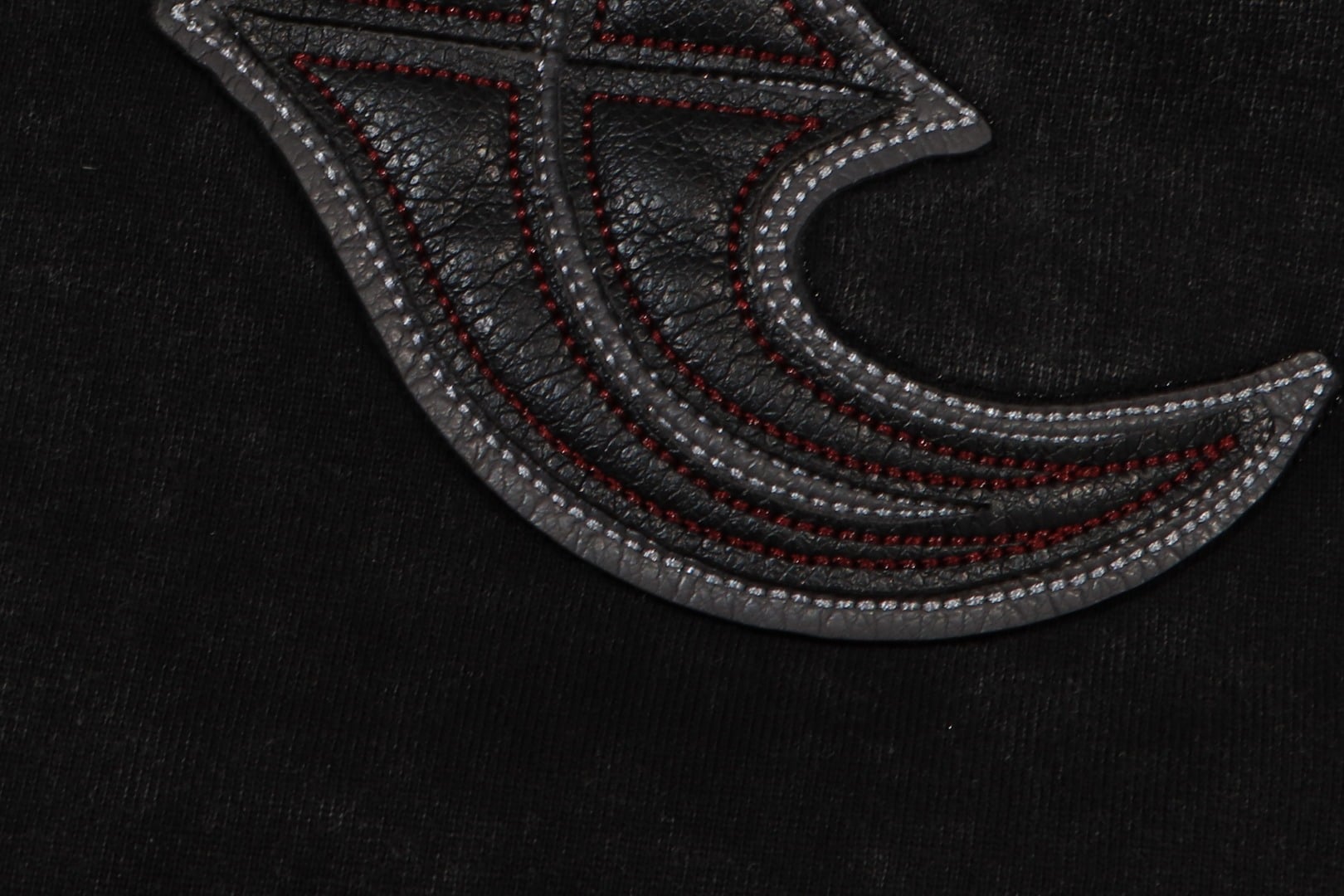 THUG CLUB Embroidery Red Leather pattern Round neck loose T-shirt washed Black サグクラブ 刺繍 レッド レザー パターン クルーネック ゆったり Tシャツ ブラック