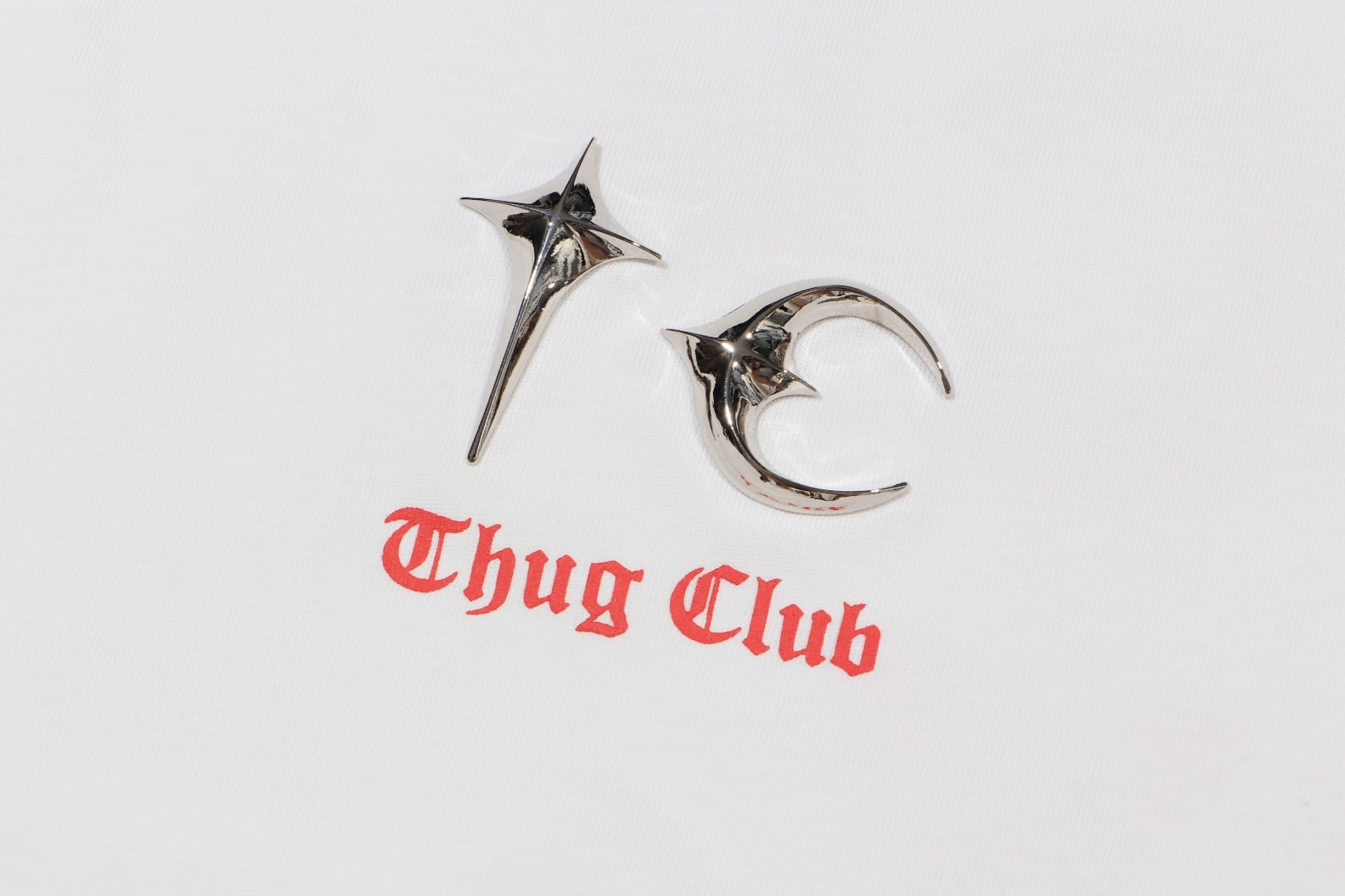 THUG CLUB hardware letter logo Print Round neck loose T-shirt White サグクラブ ハードウェアレター logo プリントクルーネック ゆったり Tシャツ ホワイト