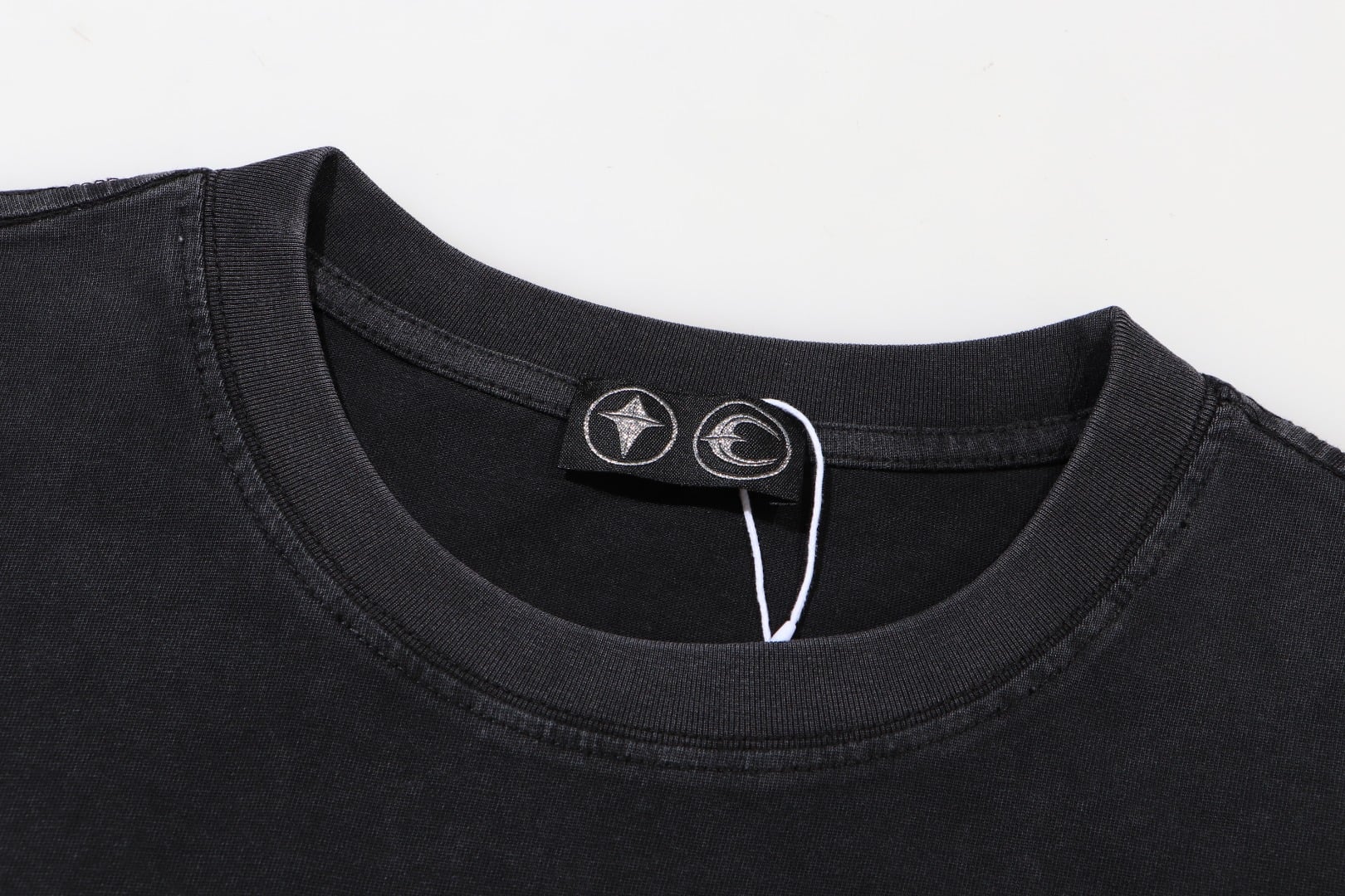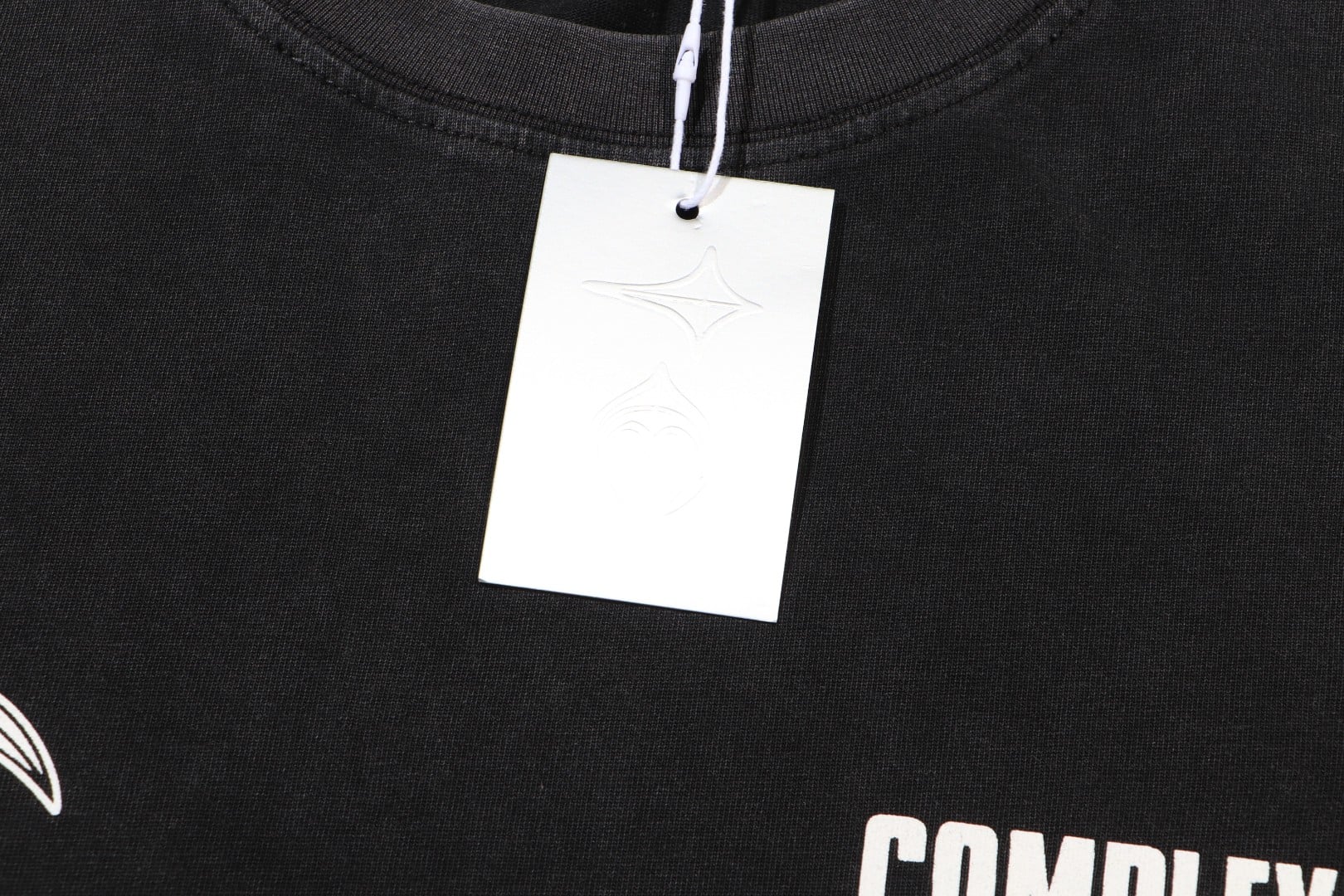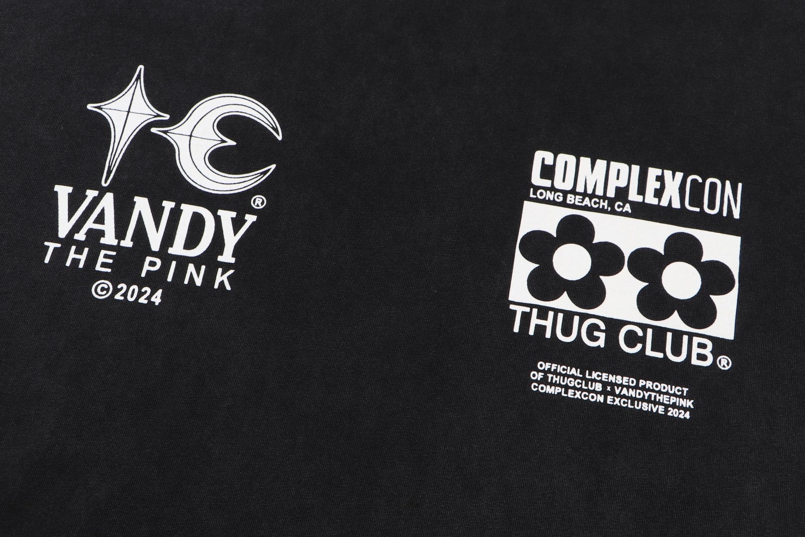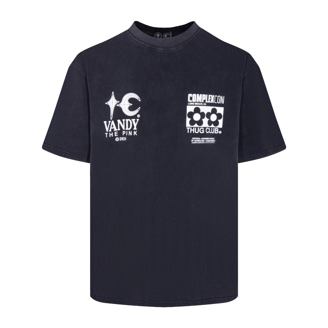 THUG CLUB Print pattern Round neck loose T-shirt washed black サグクラブ プリント パターン クルーネック ゆったり Tシャツ ウォッシュドブラック