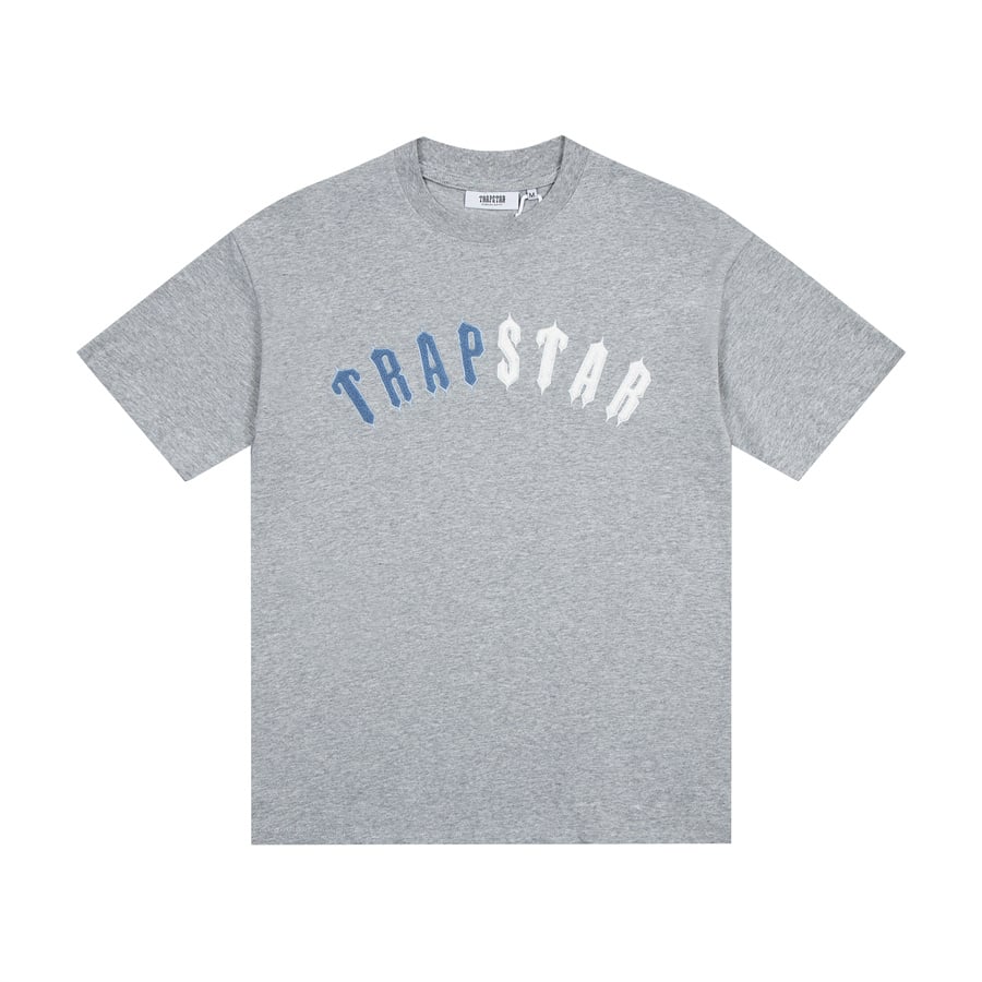 TRAPSTAR Embroidery Letter logo loose Round neck T-shirt Gray トラップスター 刺繍 モジ logo ゆったり クルーネック Tシャツ グレー