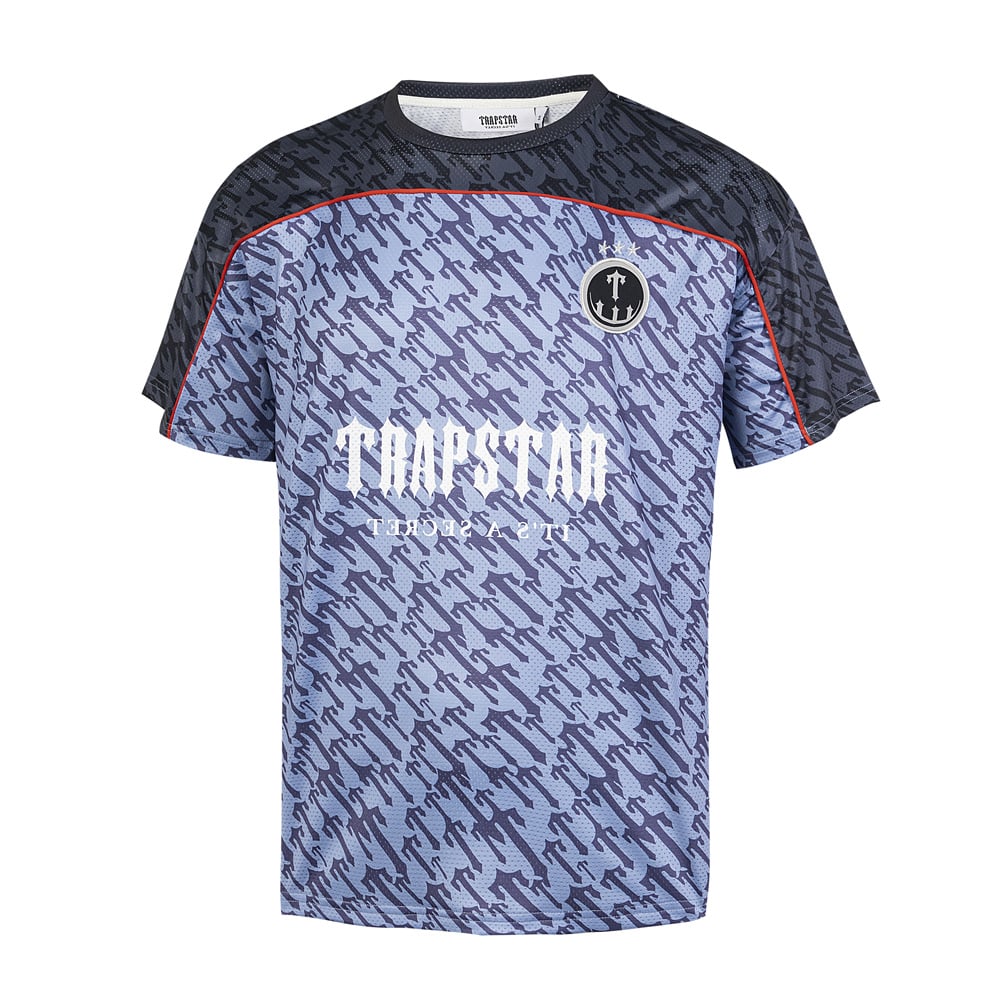 TRAPSTAR Patchwork Print Letter number logo loose Mesh T-shirt Blue トラップスター パッチワーク プリント モジ ナンバー logo ゆったり メッシュ Tシャツ ブルー