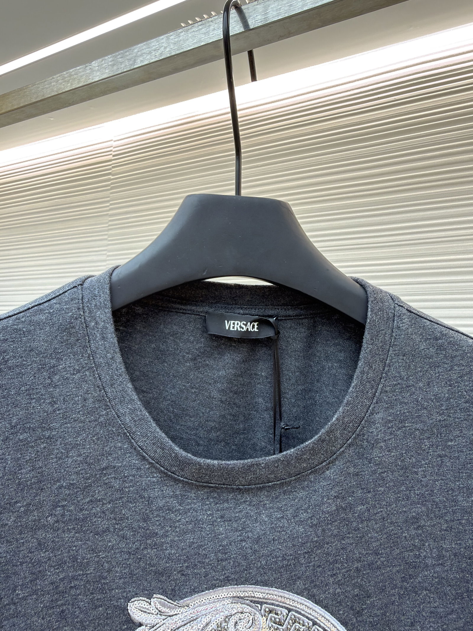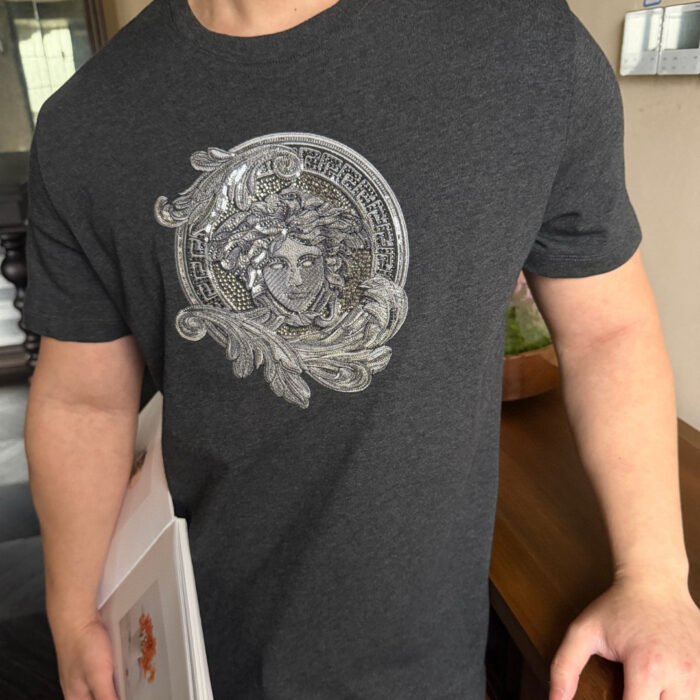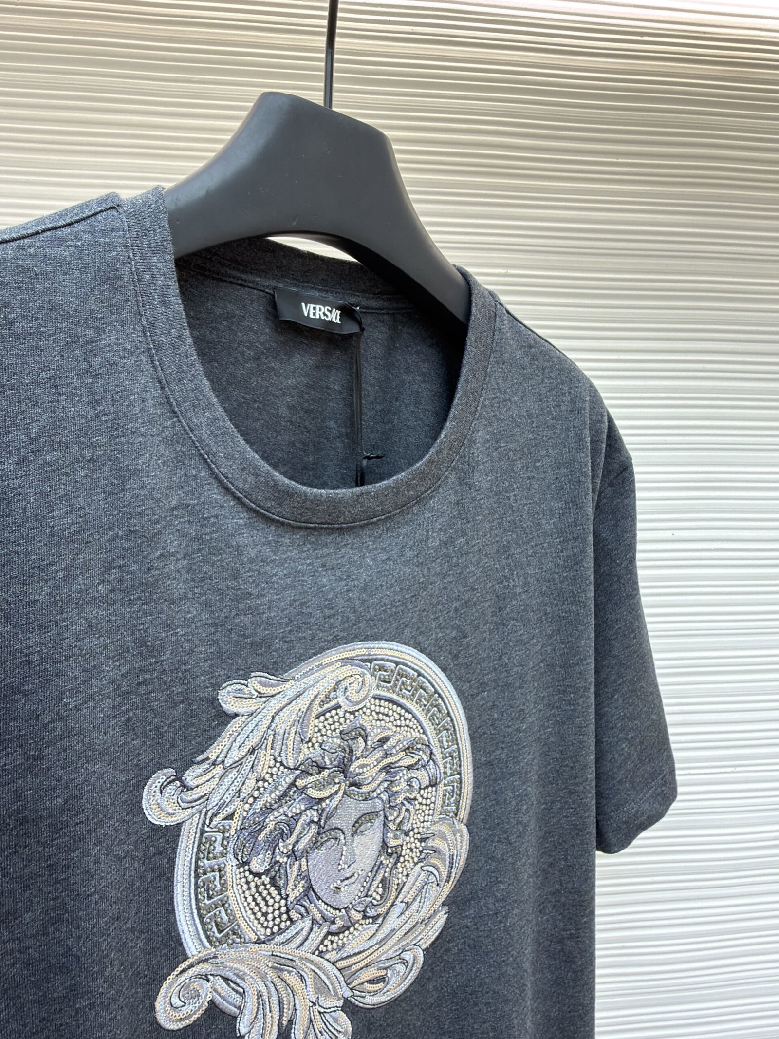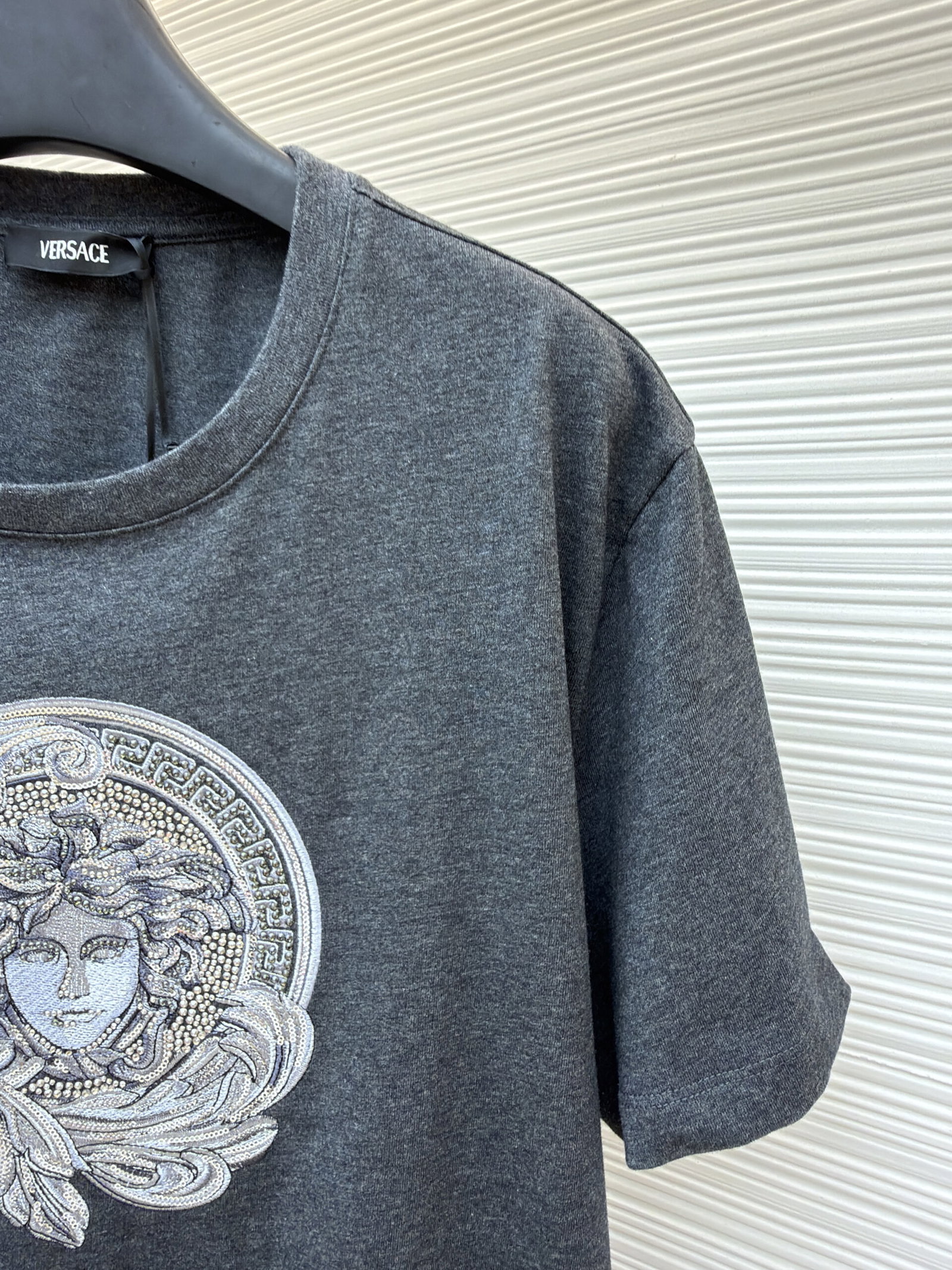 Versace Embroidery pattern loose Round neck T-SHIRT Gray ヴェルサーチェ 刺繍 ターン ゆったり クルーネック Tシャツ グレー