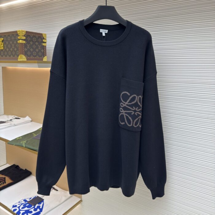 LOEWE ロエベ セーター ニット アナグラム 胸ポケット クルーネック ブラック