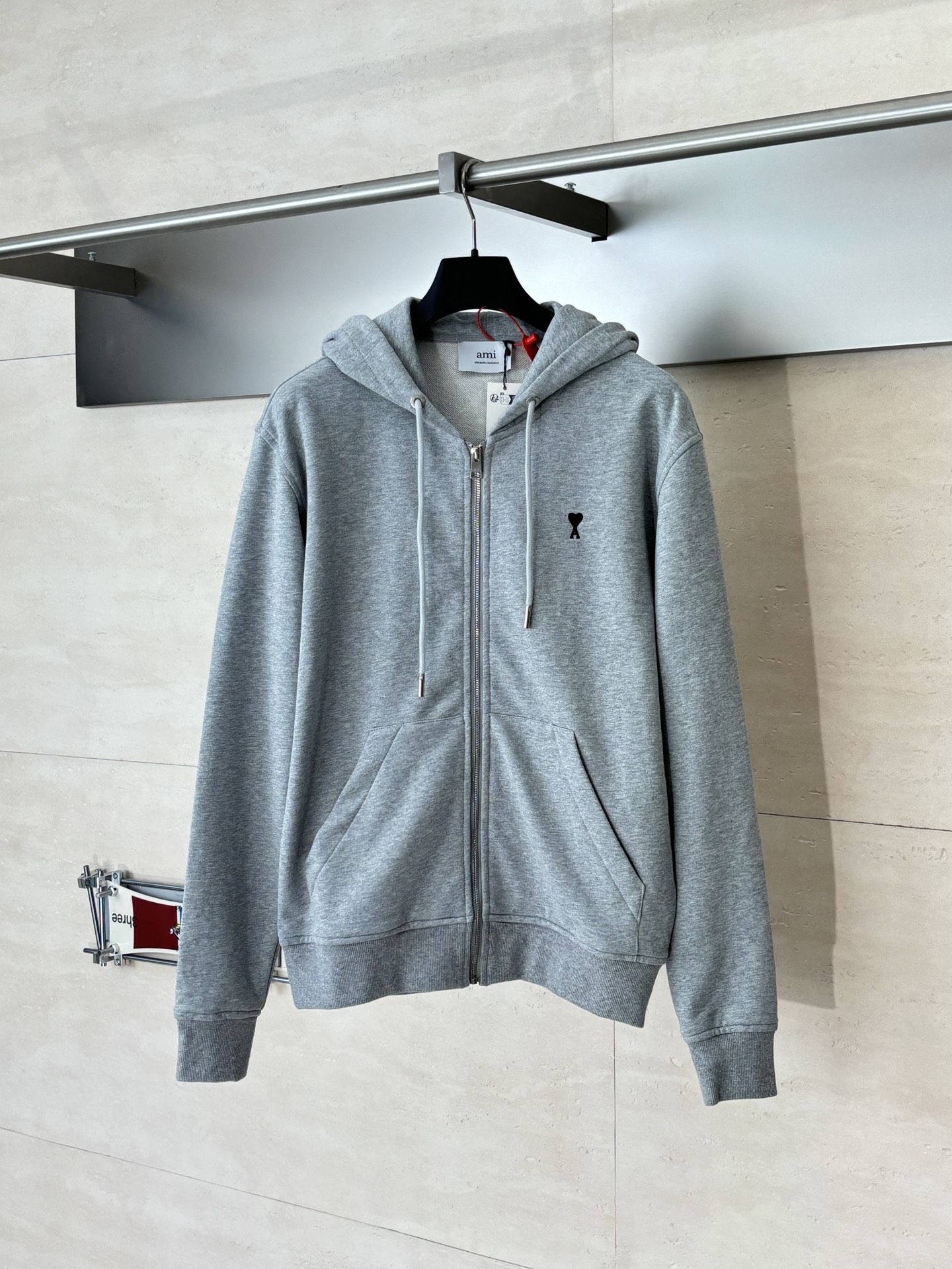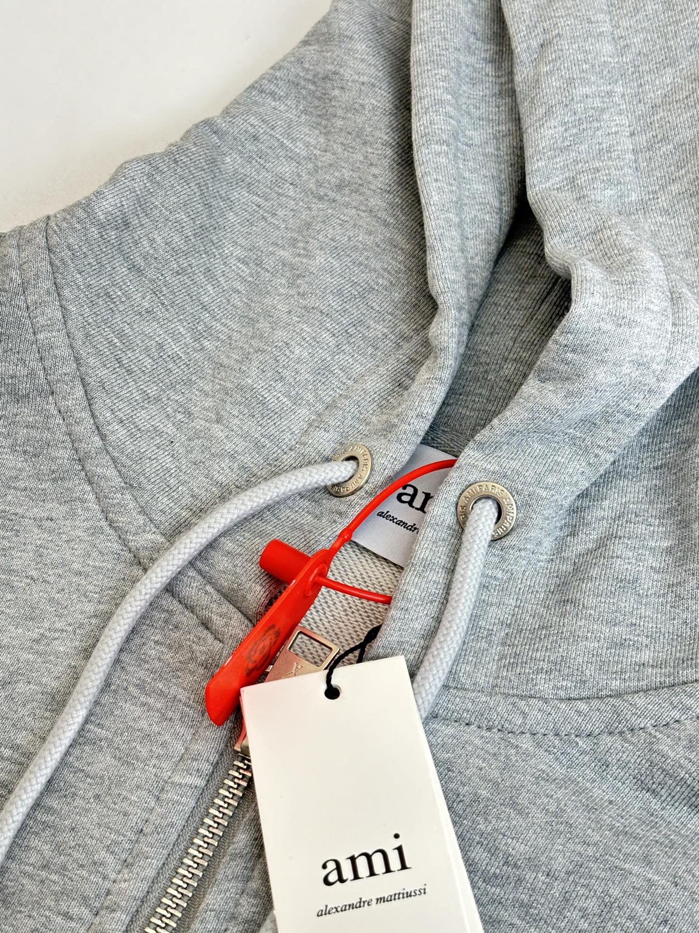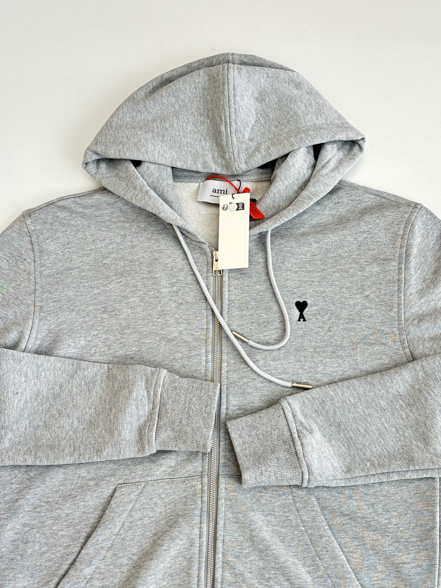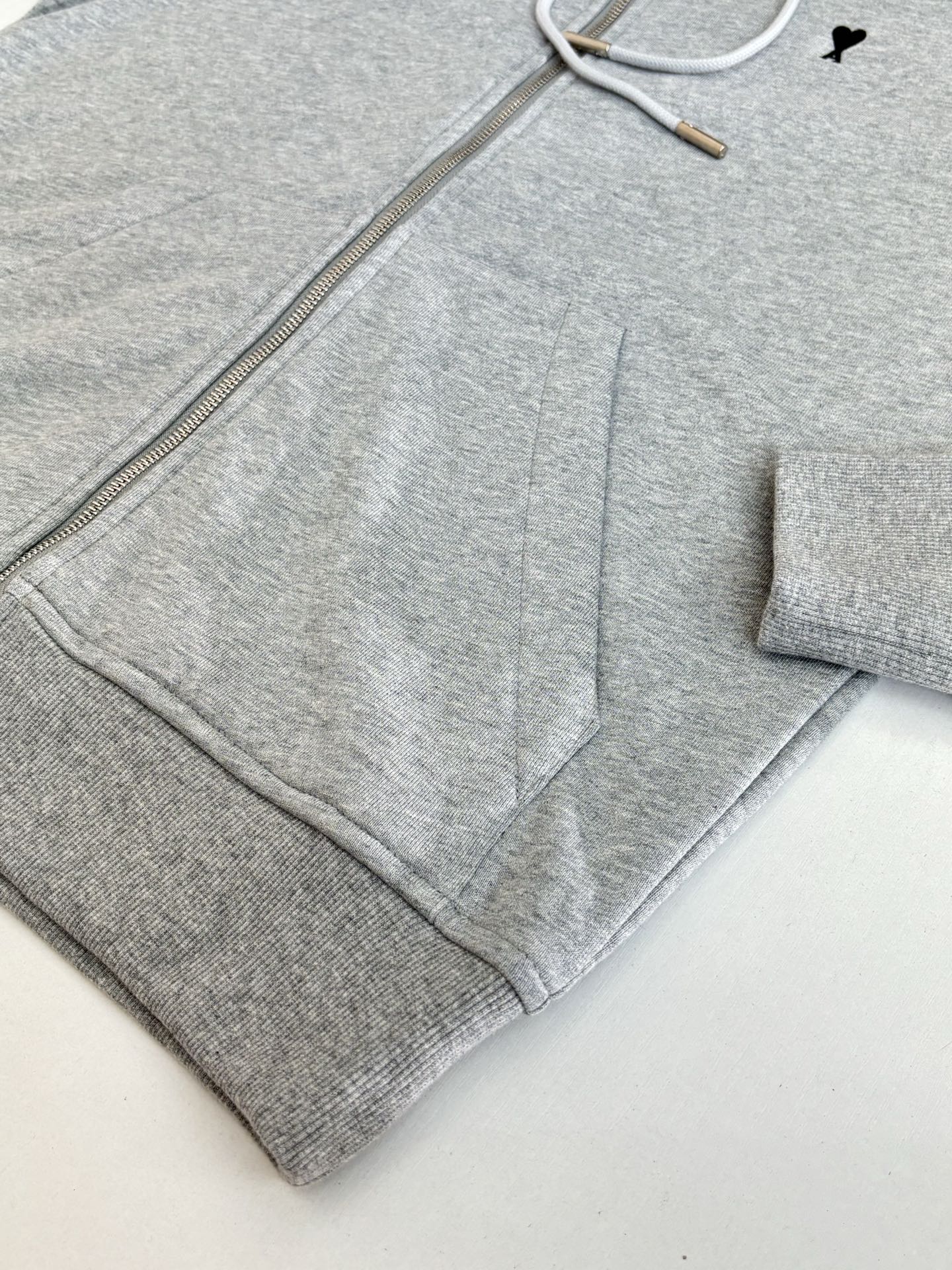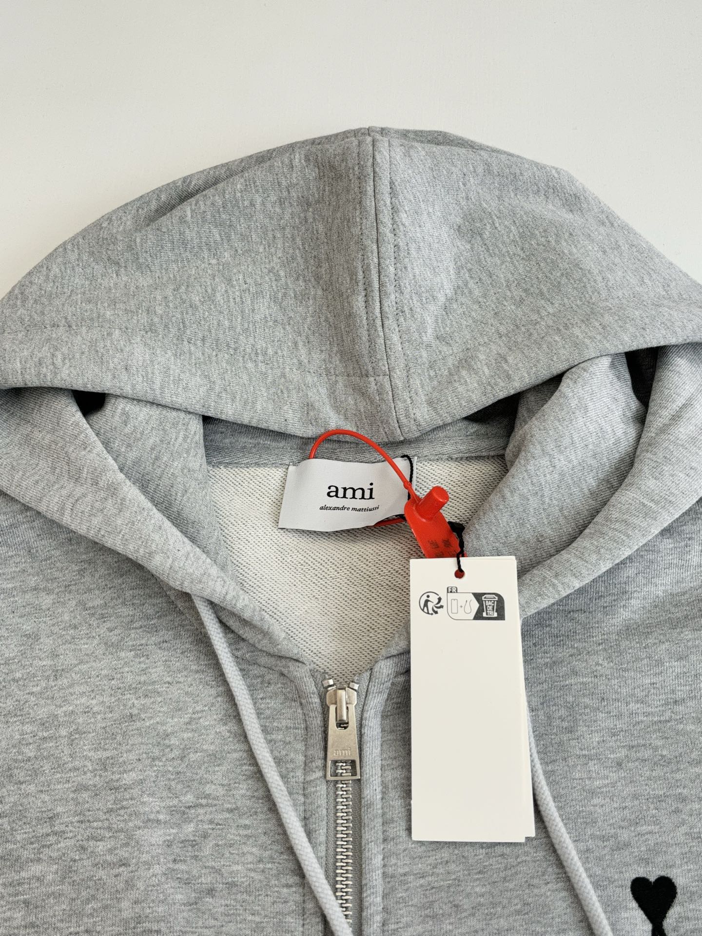 AMI PARIS Embroidery Black LOGO ZIP-UP HOODIE jacket Gray アミパリス 刺繍 ブラック LOGO ジップアップパーカー ジャケットグレー