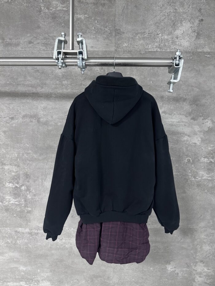 BURBERRY バーバリー チェックトリム コットン フーディー スリムフィット ブラック