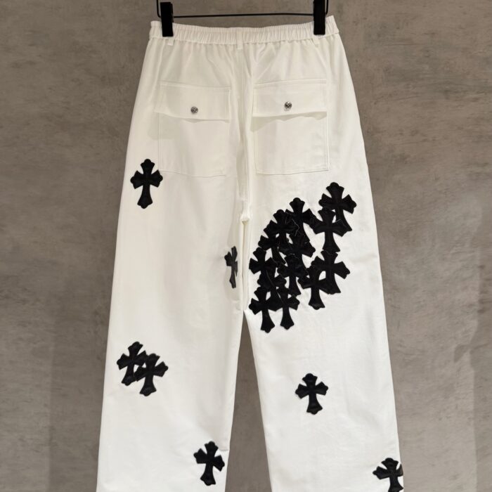 Chrome Hearts クロムハーツ WHITE クロス レザー 刺繍 ホワイト レトロ カジュアルパンツ