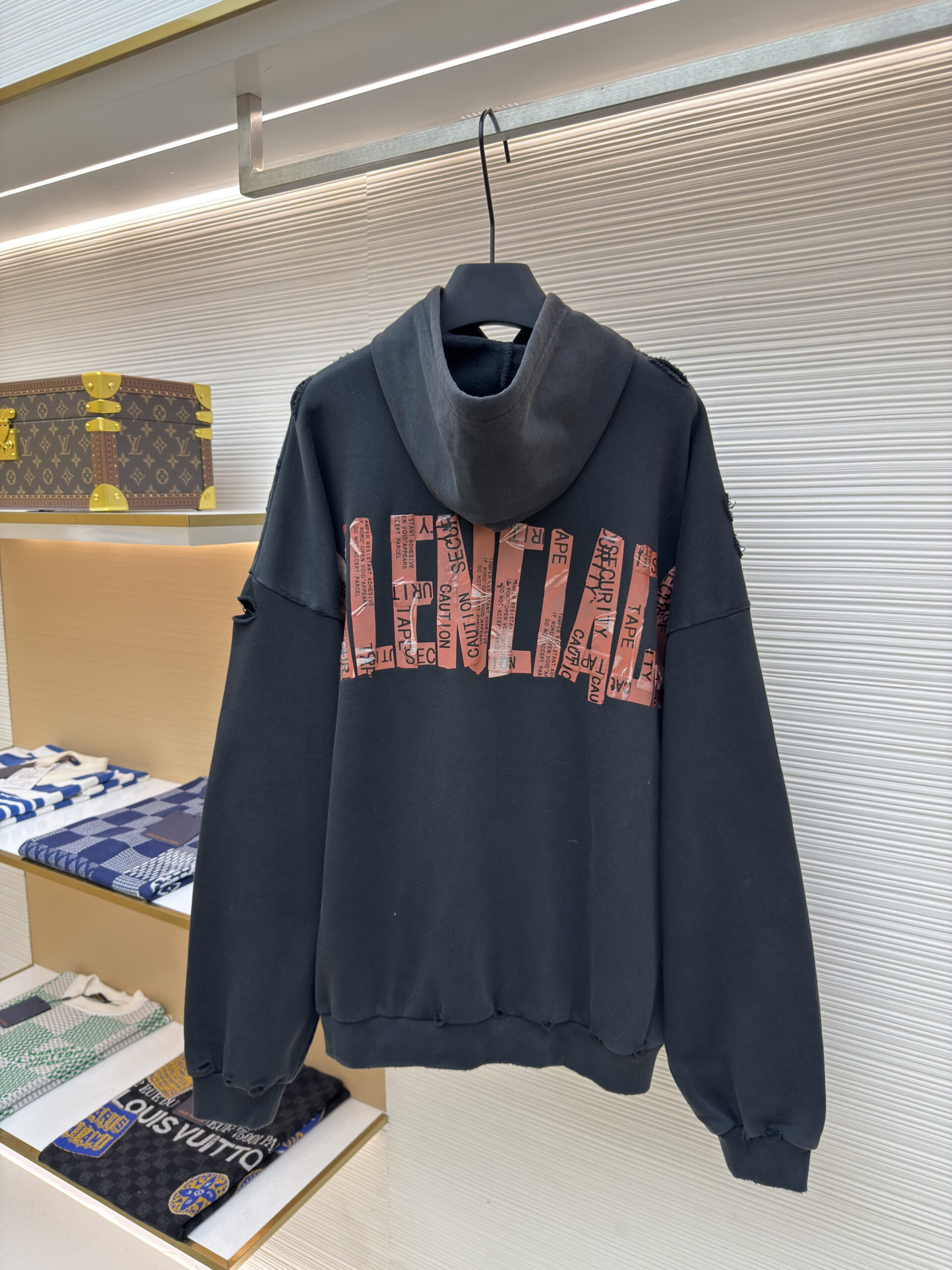 Balenciaga Embroidery Print loose Hoodie Sweatshirt Black バレンシアガ 刺繍 プリント ゆったり パーカー スウェット ブラック